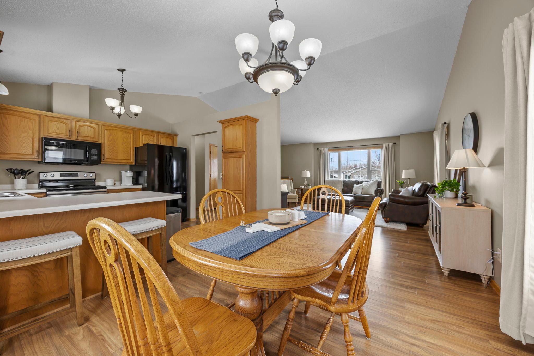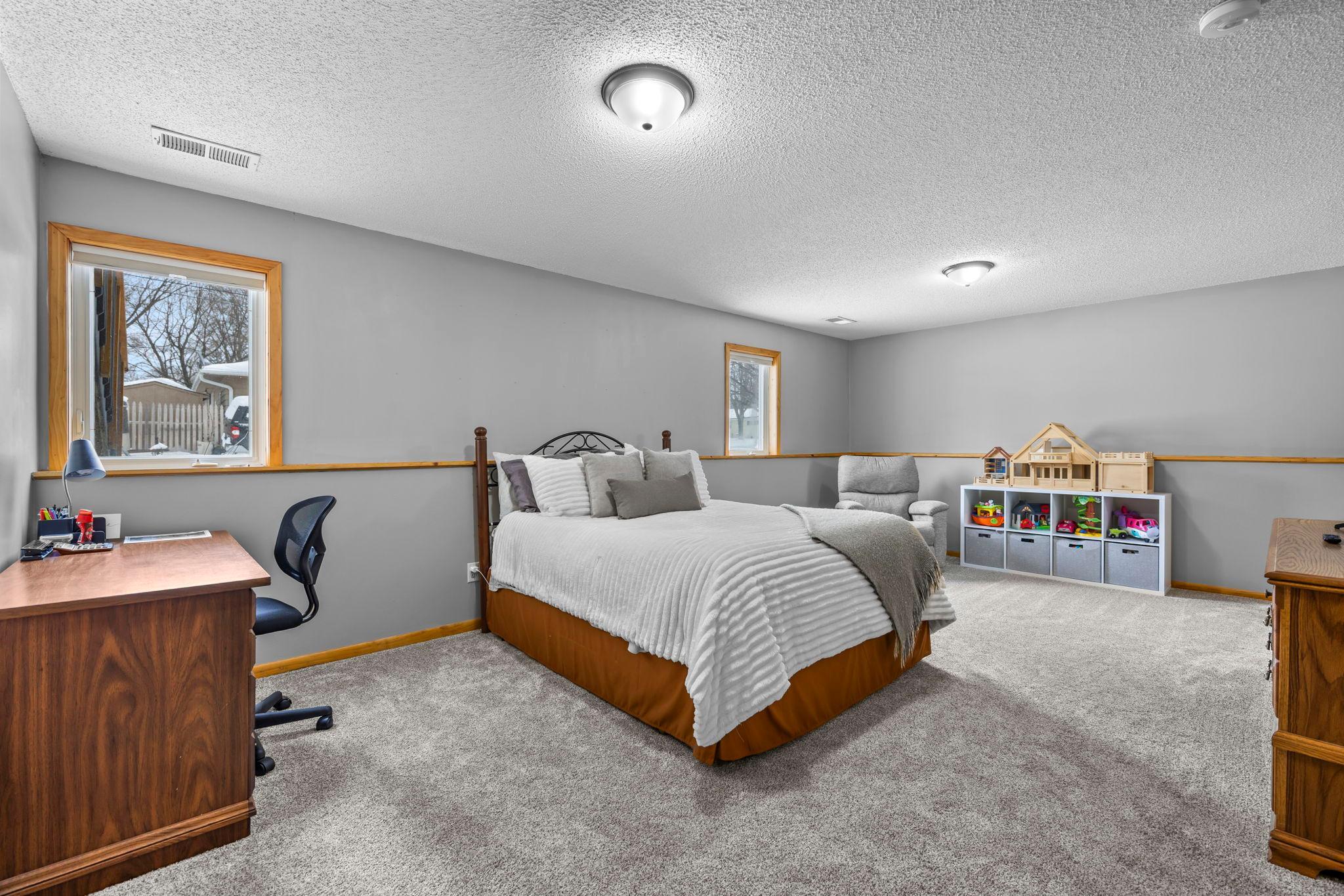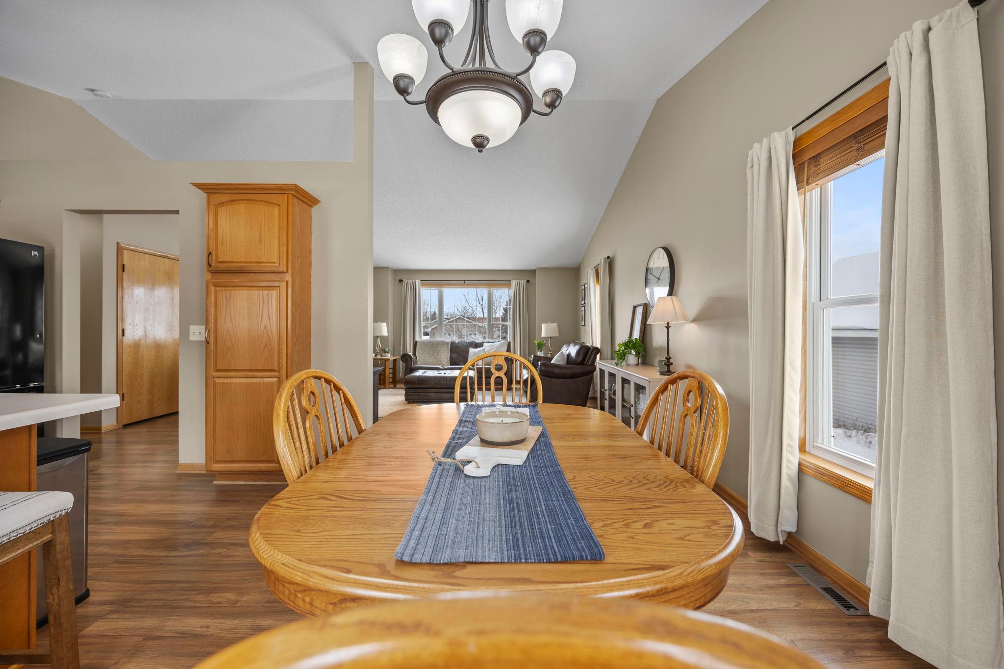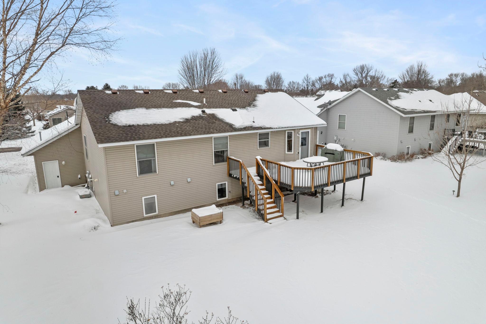 Welcome to this beautifully maintained 4 bedroom, 2 bathroom home offering a bright, open feel and thoughtful design throughout. The vaulted ceilings and abundance of natural light create an inviting main living space that feels both spacious and comfortable.The main level features three bedrooms on one level, along with a generously sized walk-through bathroom complete with double sinks, a separate tub, and showerperfect for everyday convenience. Youll appreciate the newer neutral paint and tasteful flooring selections that provide a modern, move-in ready appeal.The lower level is designed for entertaining, featuring a large family room with a cozy gas-burning fireplace, a dry bar, and plenty of room to gather. The spacious fourth bedroom includes a walk-in closet and attached bathroom, making it ideal for guests or a private suite.Step outside to enjoy the maintenance-free exterior and a newer wood deckperfect for relaxing or hosting. Situated on a .25-acre lot in town, this home offers both space and convenience.A must-see property thats truly move-in readyschedule your showing today!