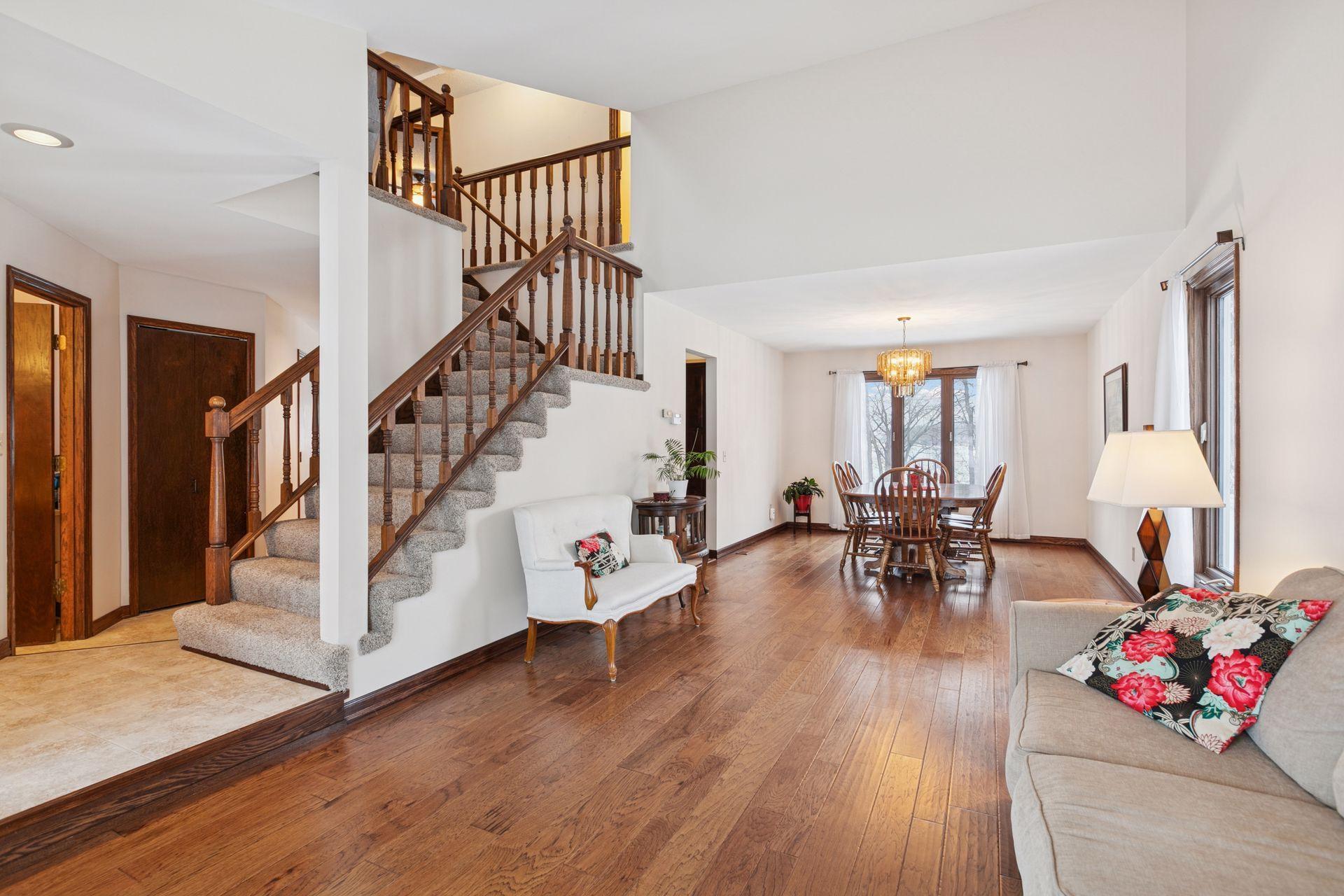 Main floor offers newer windows and doors, newer flooring, 1/2 bathroom, dedicated formal living room & formal dining room, large family room with deck access and loads of natural light coming in via expansive windows overlooking Rice Lake. The spacious kitchen features ample storage, quartz countertops, large center island w/gas cooktop & informal dining leading to the large family room.Open concept upper level features large primary bedroom w/recently remodeled full primary bathroom, 2nd and 3rd bedrooms share an additional full bathroom. The upper loft offers a quiet space, and a new laundry area completes the level. The lower level offers an additional laundry room and a chance to increase equity via an unfinished, open canvas. A bathroom rough-in is included with the ability to add an additional 800+ finished sq ft. Bring your expansion ideas, or leave it as your personal indoor play area!Your 1/4 acre+ property features gorgeous landscaping, maintenance free deck, brick patio, brick front entry, brick walking paths & flowerbed, plus the perfect backyard for play/games/pets or just relaxing while enjoying views over Rice Lake.This property is surrounded by the Rice Lake walking/biking trails, located 3 minutes from the Maple Grove Arboretum, 4 minutes to I-94 access and 7 minutes from endless shopping/dining/entertainment options in downtown Maple Grove. Don't miss your opportunity to make this your forever home!