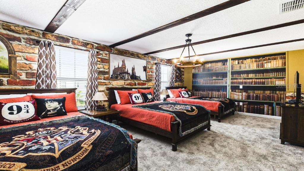 Welcome to this stunning fully furnished home boasting 8 bedrooms and 5 full bathrooms, situated within the gated resort, The Retreat at Champions Gate! Featuring 2 bedrooms downstairs and an additional 7 bedrooms upstairs, there's abundant space for relaxation. The fully equipped modern kitchen boasts stainless steel appliances. The garage has been transformed into a game room, providing extra entertainment for your family. Step into the screened-in backyard patio, perfect for enjoying outdoor moments in privacy. This incredible resort community offers an impressive array of amenities, including a sprawling 10,000 sqft clubhouse, fitness center, pools, lazy river, waterslide, theater, game room, restaurant, tiki bar, cabanas, tennis courts, volleyball, and much more. Located just minutes away from shopping and dining, it provides convenient access to Disney World, Universal Studios, Sea World, and Premium Outlets. **Rent includes internet and cable, pool maintenance, lawn care, and daily trash services!** No USPS postal service for this house.