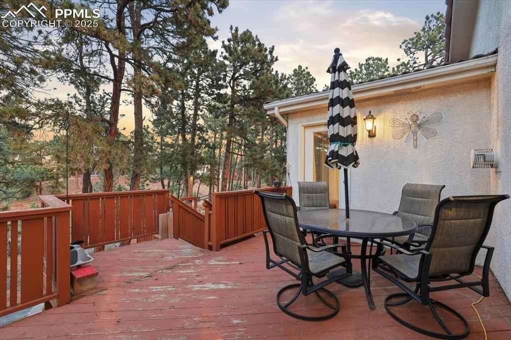 Tucked under the pines of Fox Run, this two-story home is your 90s mini-mansion makeover dream come true. The bones are all here: First there's the location, just steps from Fox Run Regional Park, our favorite place to get away and get lost on the forest trails with nothing but the sounds of the wind in the trees. D-38 schools and the areas best shopping, restaurants and the most important traffic corridors just a few minutes away. xD;xA;Secondly, this home has serious main-character energy. With great curb appeal and impressive architecture, the sweeping driveway makes a dramatic entrance for guests when they come to see you. It's definitely got the WOW factor. xD;xA;The forested lot has a green house, fire pit, expansive deck, gardens and everything you need to foster those gardening dreams at home. xD;xA;Inside, the wow factor continues. A grand entry and curved staircase impresses from the start. xD;xA;The kitchen is HUGE with expansive granite countertops, high-end appliances and tons of natural light. xD;xA;This home features formal and informal living areas, formal and informal dining, a main-floor master, a walk-out basement and everything you could want to kick off. your grand home makeover adventure. xD;xA;The elements you cannot replicate are all here. xD;xA;The deck does need some love and this home is aggressively priced to reflect some of the updating you'll want to take on to make this your perfect, forever home. It's move-in ready today with a few projects you can tackle later, when you're ready. What you cannot replicate is the location, the bones, the walk-out, the architecture, the vibe. This home has those pre-millennial elements you crave before everything got white, gray, square and boring. This home is all about the DETAILS.