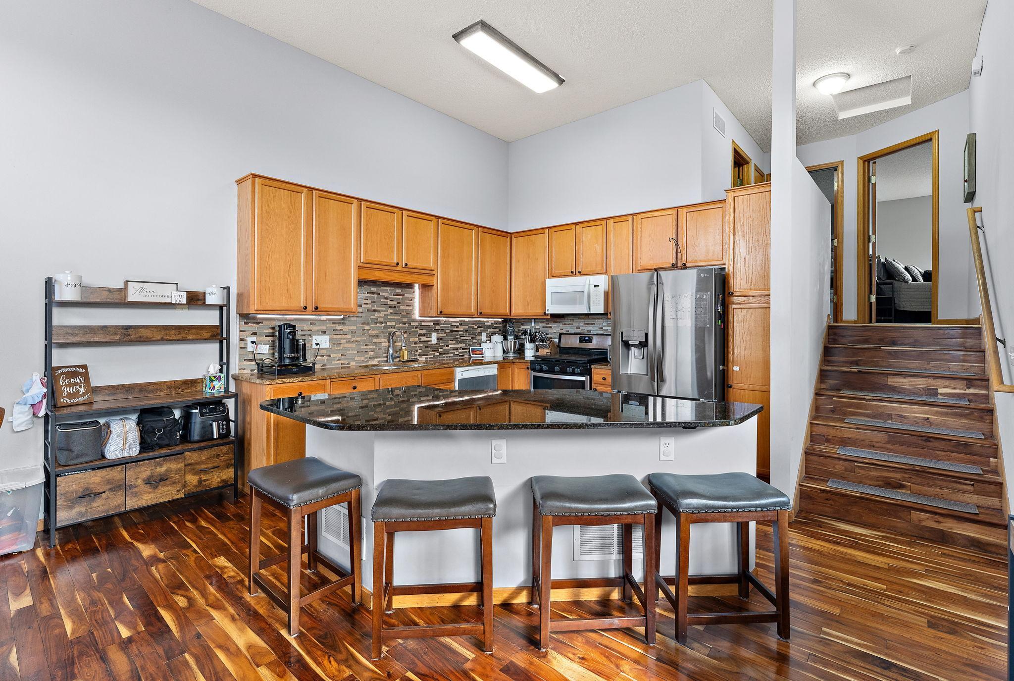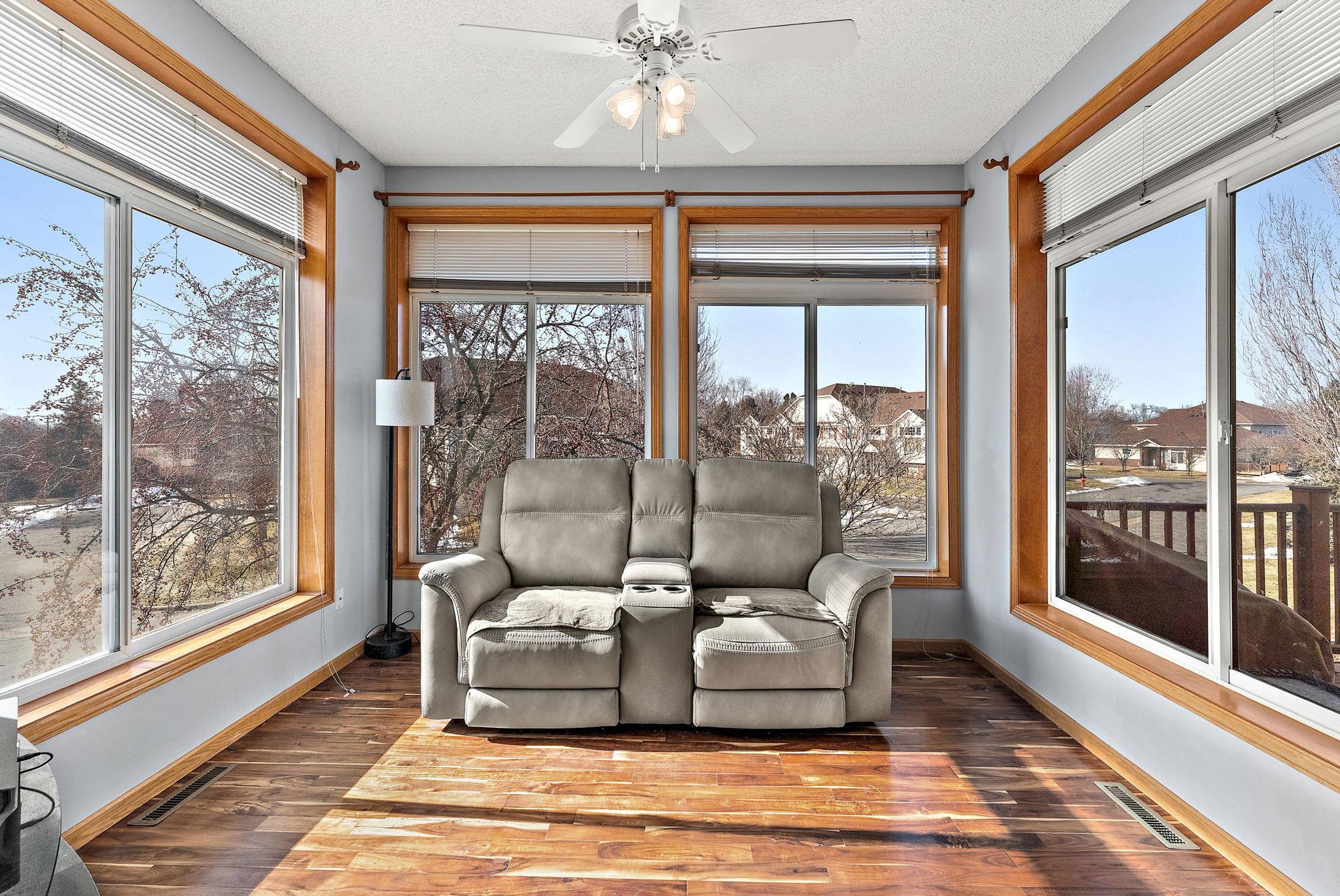 Welcome home to this beautifully maintained end-unit townhome in Rosemount offering the perfect blend of space, style, and comfort. Featuring three bedrooms and three full bathrooms, this pet friendly home provides a spacious and versatile layout designed for both everyday living and entertaining. The bright and open main living area flows seamlessly into a well appointed kitchen complete with granite countertops, ample cabinetry, a new refrigerator, a new kitchen backsplash and generous prep space-ideal for hosting or enjoying quiet evenings at home. Large windows throughout this end unit allow for abundant light, creating a warm and inviting atmosphere. One of the standout features is the four-season porch, perfect for year-round relaxation, morning coffee, or additional entertainment space. Step outside to the private deck, offering even more room to unwind or grill with friends. With three full bathrooms, there is plenty of convenience and privacy for family members and guests alike. The thoughtful layout offers flexibility for a home office, guest suite, or multi-generational living. The water heater is only one year old and the HVAC system is 7 years old with yearly maintenance done as well as the driveway was redone two years ago. Located in a desirable community with pet-friendly amenities, this townhome combines low-maintenance living with the space and features you've been searching for.Don't miss the opportunity to make this exceptional property your next home!