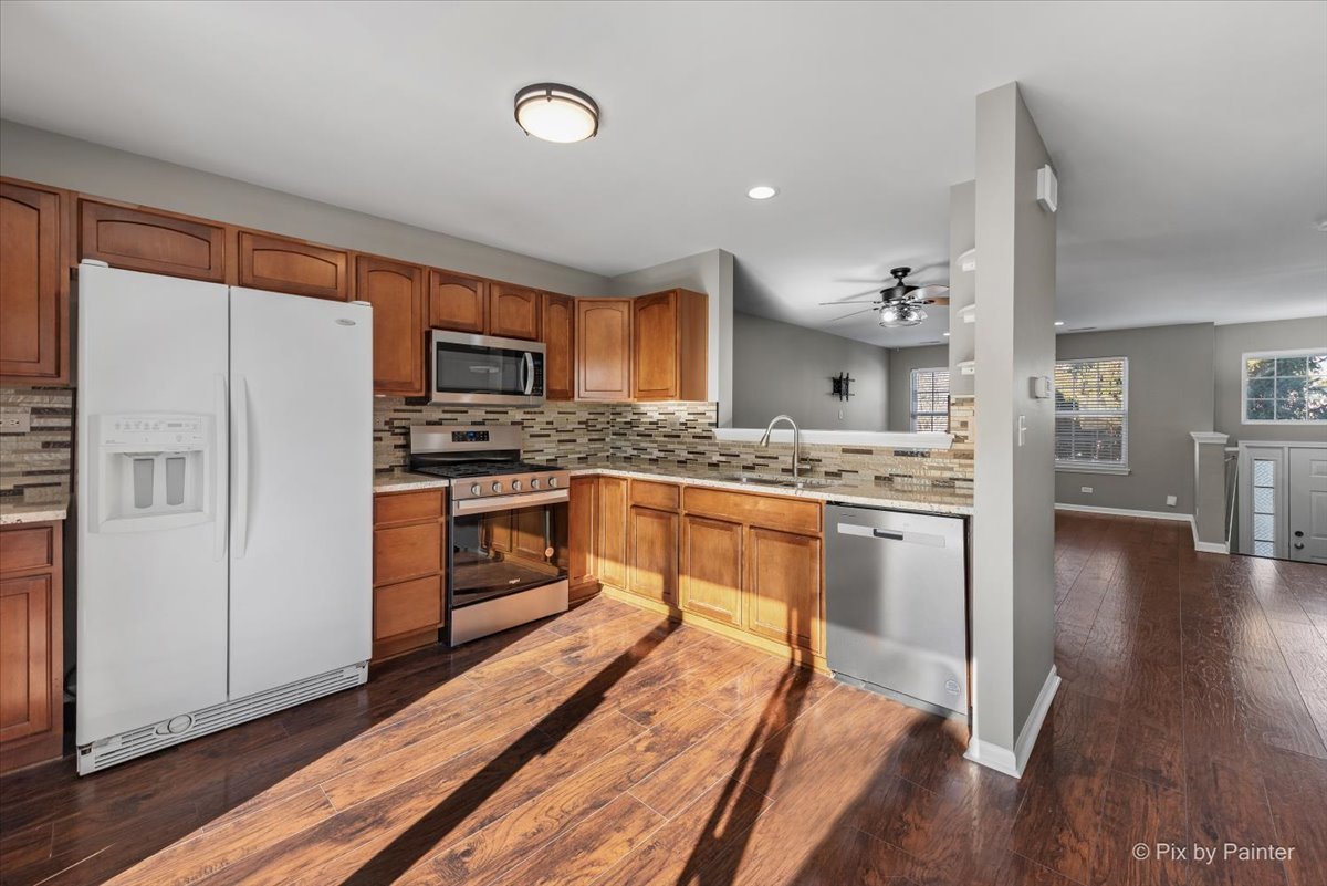 Welcome to this beautiful two-story townhouse located in the highly desirable Cambridge Lakes community. Available for move-in February 2026 (flexible). Home is very well-maintained, there are three levels of living space. There's a finished lower level that would make a great home office or kids space. 2-car garage with openers. Main level offers kitchen, living room, dining space, laundry and a half bathroom. Upstairs offers 2 bedrooms, a loft, and a full bathroom. The unit offers a spacious two-car garage. The kitchen has been recently updated with a stunning countertop and stylish backsplash, creating a modern and inviting space. Residents enjoy full access to the Cambridge Lakes association amenities, including a clubhouse, outdoor swimming pool, fitness center, and on-site parks. Rent includes all amenity access. Schedule your showing today-this townhouse won't last long! Subject to credit, background, and criminal check. Income should be at least 3x the amount of monthly rental amount. Proof of employment will be required, no recent evictions allowed.