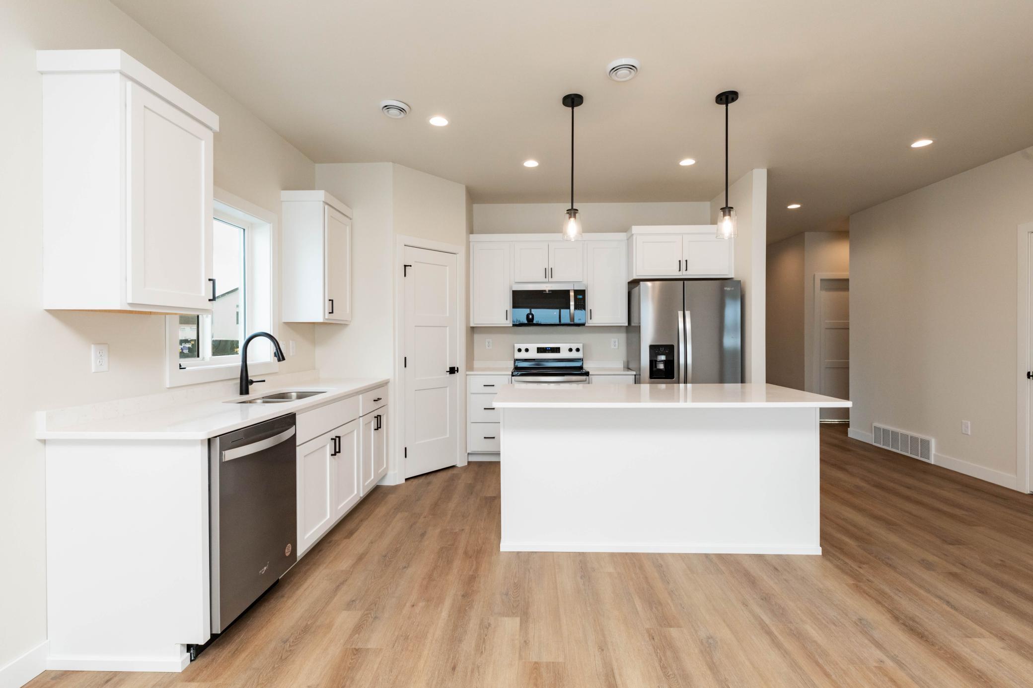 *Just completed!* Stunning New Construction Home with Modern Features & Pond Views. This beautifully crafted new construction home offers the perfect blend of style, comfort, and efficiency. Step inside to soaring 9' ceilings and an inviting open-concept kitchen, complete with quartz countertops, a spacious corner pantry, and sleek modern finishesperfect for both everyday living and entertaining. Enjoy abundant natural light through high-efficiency aluminum-framed windows, while taking in the serene views of the pond lot right in your backyard. The primary suite is a true retreat, featuring a dual vanity, step-in shower, and plenty of space to unwind. This home includes a fully insulated 3-stall garage with a floor drain, perfect for keeping your vehicles and storage space protected year-round. Air exchanger included. Agent/owner
