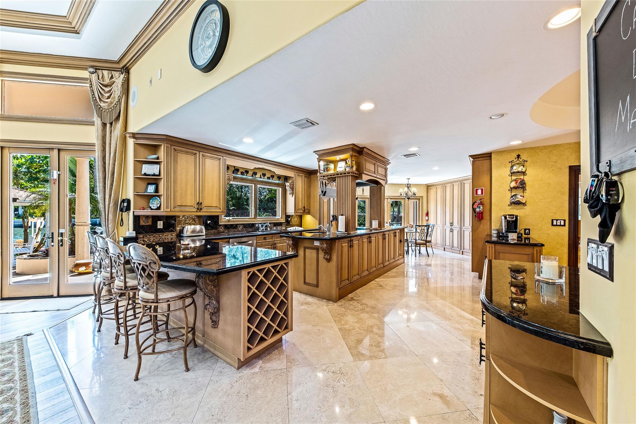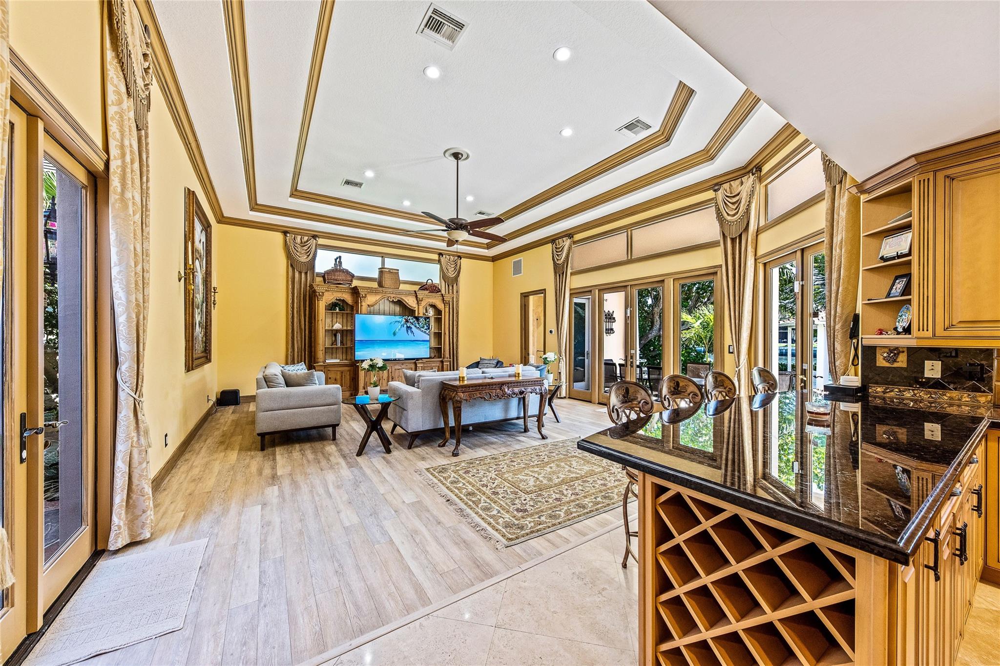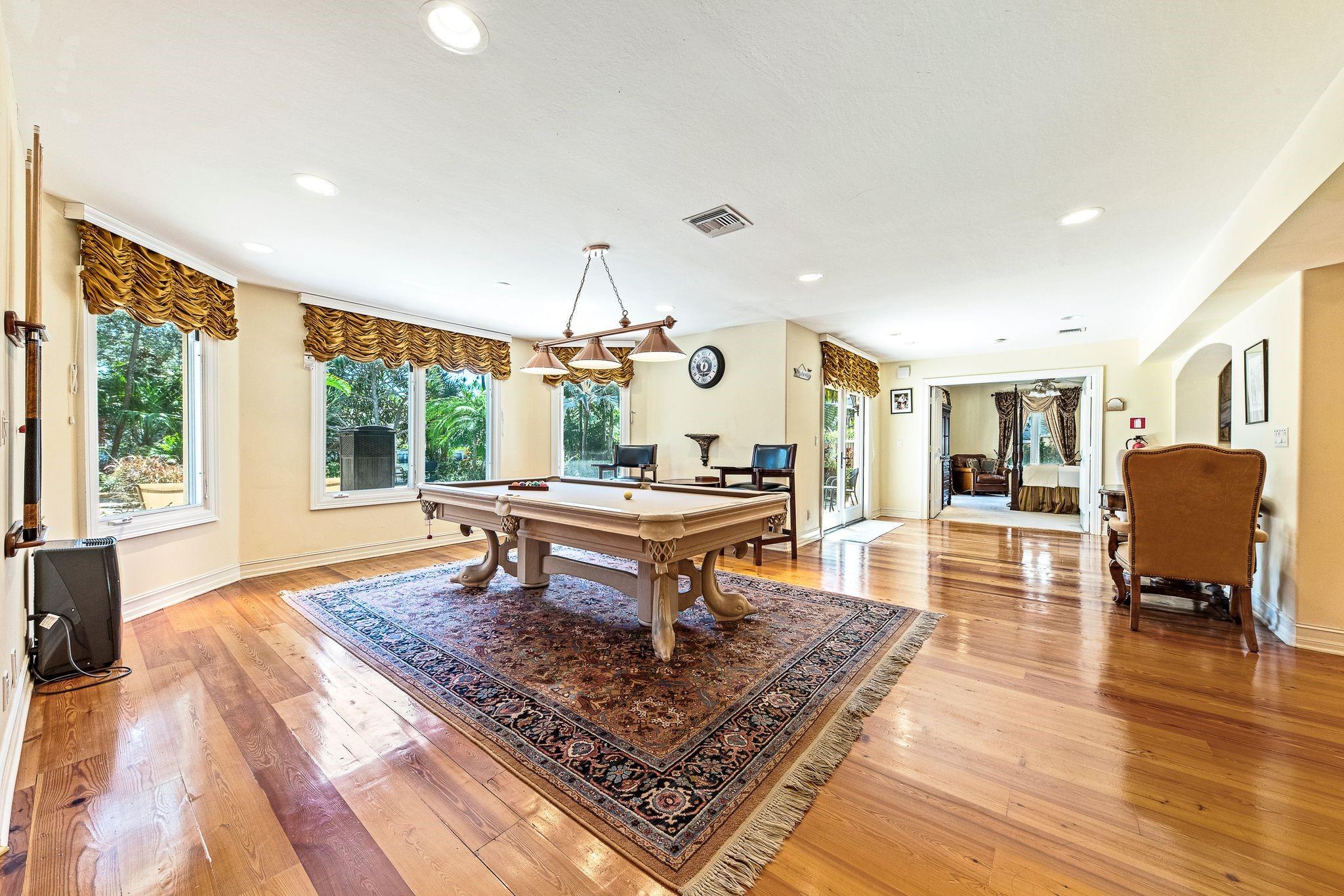 Welcome to a Private Estate with 130' fronting Lake Mayan, in the exclusive Harbor Beach neighborhood in Fort Lauderdale. Formerly owned by icon singer David Cassidy. 7,000 SF+ living area on a 19,000+ SF lot. 6 bedrooms, 6.5 Baths. All bedroom large suites. Custom chef's kitchen. Formal Dining room, spacious Family room. Nice, Living room & game-room, Open floorplan with beautiful Pinewood & Marble flooring. Volume Coffered ceilings, fireplace, water views from everywhere. Exceptionally beautiful & private outdoor area with many unique features. Large, heated pool and spa, Gazebo, Private dock with lounge area, summer kitchen. Electric gate, 2 car garage, Large Driveway. easy Ocean access, great for small boats, kayaking and jet ski. Walk to beach. Serene & Private