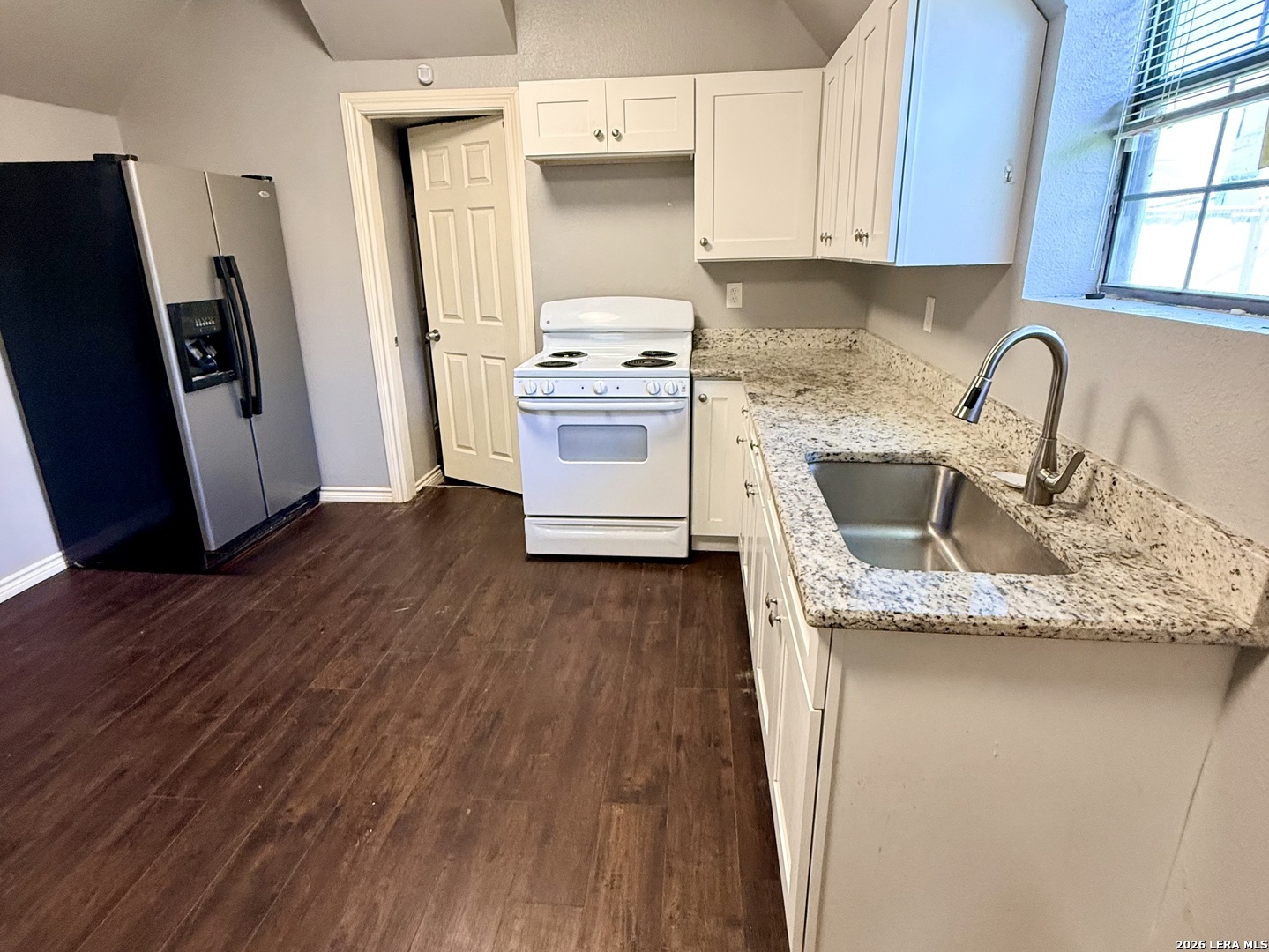 This charming 2-bedroom, 1-bath townhouse offers a spacious and inviting open-concept design, perfect for comfortable living and easy entertaining. The large living area flows seamlessly into the kitchen, creating a bright and connected space filled with natural light. The kitchen is a standout feature, complete with sleek granite countertops, ample cabinet storage, and plenty of prep space-ideal for both everyday meals and hosting gatherings. Both bedrooms provide a peaceful retreat on the second level with comfortable layouts and generous closet space, while the shared bathroom is thoughtfully finished with matching granite countertops, adding a touch of elegance and consistency in design. With its open layout, modern finishes, and warm, welcoming feel, this townhouse is the perfect blend of style and uniqueness.