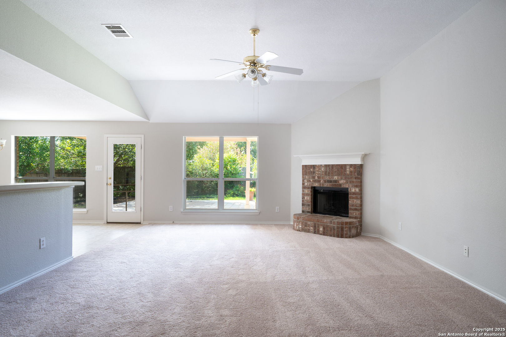 Beautifully maintained home in the desirable Meadows at Clearfork neighborhood, located on the west edge of Lockhart with convenient access to SH 130. This property offers 3 bedrooms, 2 full bathrooms, a 2-car garage, and a privacy fenced backyard. Enjoy outdoor living with a spacious covered back porch, an open patio, and attractive landscaping on this generous 75 wide lot. The open floor plan features a large kitchen with an island, breakfast bar, and dining area, flowing seamlessly into the living room highlighted by a wood-burning fireplace and high ceilings. Recent updates include fresh interior and exterior paint and carpets replaced in 2025. Originally built in 2004, this home offers approximately 1,703 sq. ft. (per CAD) of comfortable living space. Schedule your private showing today!