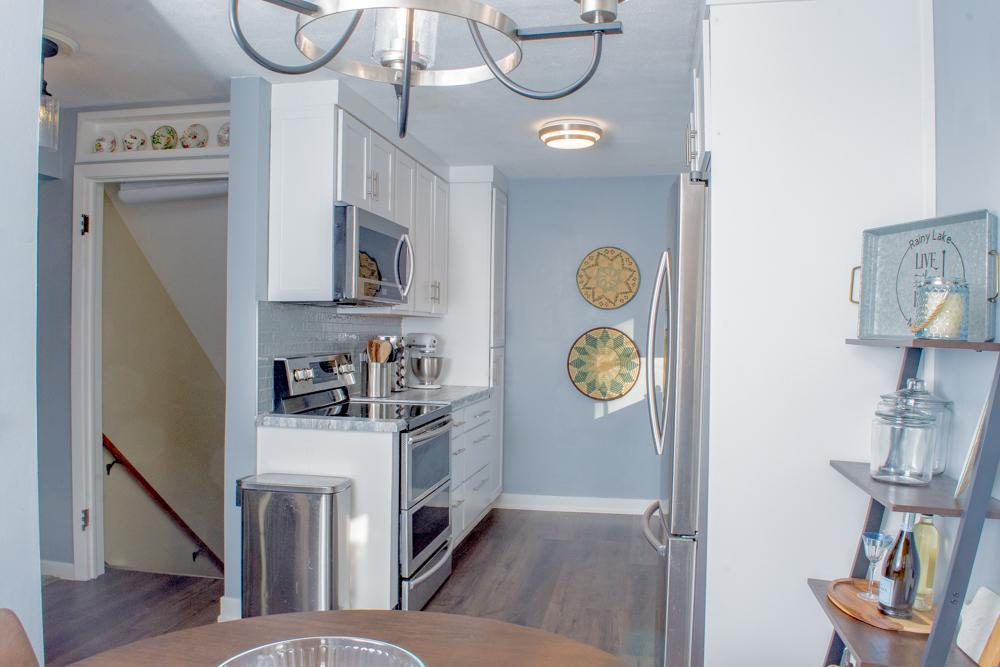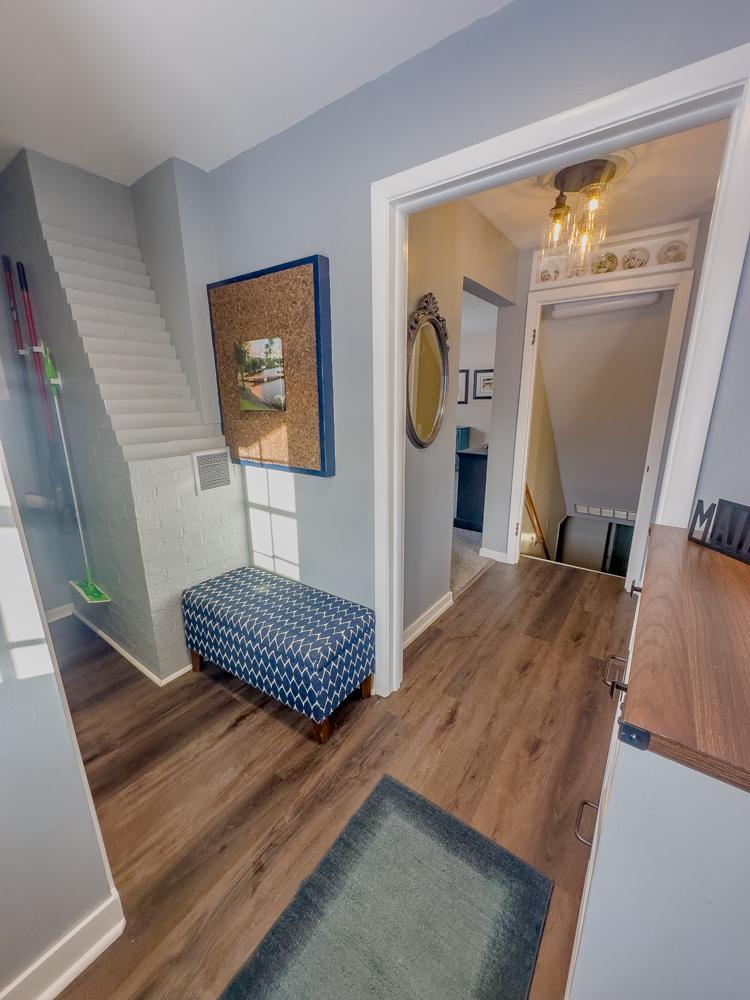 Well-maintained home offering a functional layout with multiple living spaces and thoughtful updates throughout. The main level features a comfortable living room with fireplace, updated kitchen with white cabinetry, solid-surface countertops, stainless steel appliances, and adjacent dining area, 2 Bedrooms and updated Full Bathroom. Durable flooring and neutral finishes create a cohesive flow across the main living areas.The upper level includes 2 bedrooms with sloped ceilings, built-in storage, Additional living space is found in the finished lower level, featuring a family room with fireplace, laundry area, bathroom, and utility room with lots of extra storage.Exterior highlights include a rear deck, open yard with garden space, mature trees, and a detached garage with a long driveway for off-street parking. Convenient rear entry and mudroom add everyday functionality. A well-rounded property with indoor and outdoor space, located on a residential street.