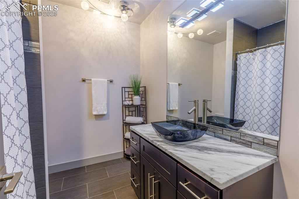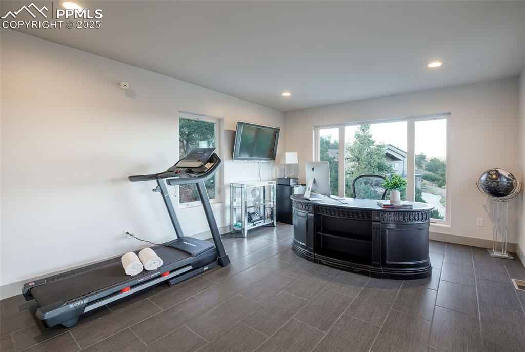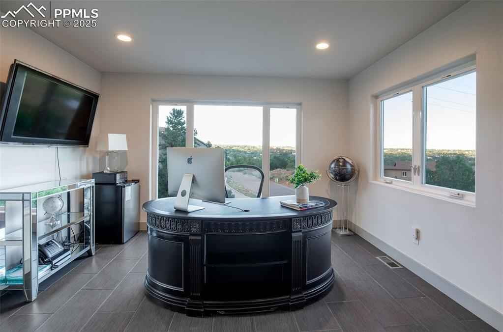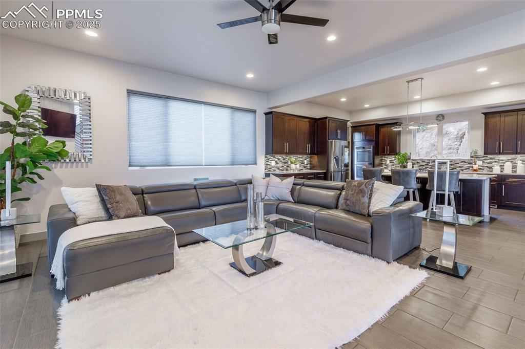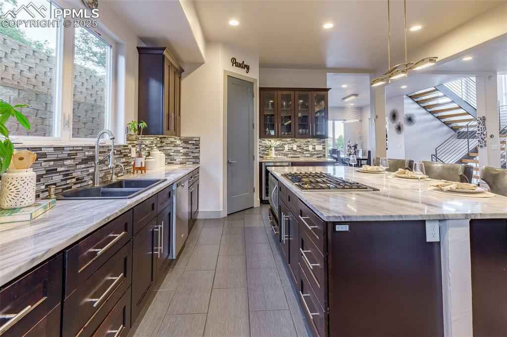 Welcome to an exquisite contemporary residence nestled in an exclusive enclave, where the natural beauty of Red Rocks Open Space unfolds right outside your door. This custom-built masterpiece boasts high-end finishes and elegant details throughout. The main level, designed with a seamless open-concept layout, features a sophisticated living room with a gas fireplace and 12-foot sliding glass doors that invite you to step onto the view deck. The chefx2019;s kitchen is exceptional, offering every luxury you could desire. Imagine hosting lavish gatherings around the kitchen island, while savoring the breathtaking views from the walkout deck. Ascend the stairs or glide up in your private elevator to your personal sanctuary. Here, the primary suite awaits, a tranquil haven with a gas fireplace, another 12-foot sliding door leading to a private deck overlooking the open space, and a spa-like ensuite bathroom. Indulge in the jetted tub or multi-jet shower. The custom-designed walk-in closet ensures your wardrobe is impeccably organized, while the adjacent laundry room offers ultimate convenience. The upper level includes a versatile flex space with windows framing awe-inspiring views that can be used for a home office, library, or gym. The lower level offers two generous guest bedrooms and a full bath. A thoughtfully designed dog wash station, located just inside the oversized three-car garage, ensures your pets are pampered after exploring the nearby trails. The garage features an RV bay and an oversized two car garage. This prime location offers effortless access to Hwy 24, making Colorado mountain weekend trips a breeze, while being just minutes away from the dining and shopping experiences of historic Manitou Springs, Downtown Colorado Springs and Old Colorado City. Included with this exceptional home are architectural plans for a 2500 sf addition featuring a luxurious spa area, exercise room, outdoor kennel area and guest suite with view deck and private entrance.