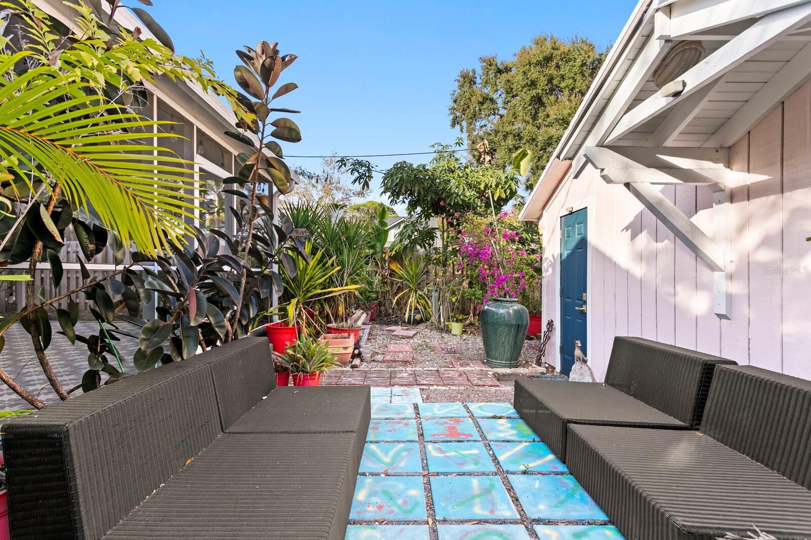 Welcome home to this charming residence nestled among the tree-lined streets of the Euclid St. Paul neighborhood. Classically restored and meticulously maintained, this home seamlessly blends period character with modern conveniences. Situated on a large corner lot with iconic, Florida-friendly landscaping, the property features an arched floral entry and a sidewalk leading to a covered, screened patio with designer tiles. Inside, you will find original hardwood flooring in beautiful condition and a light-filled interior with fresh paint. The bright living area leads into an updated kitchen equipped with Cambria quartz countertops, custom solid wood cabinetry, and updated appliances. Just off the kitchen, a second screened back patio offers a serene retreat overlooking the fenced-in backyard tropical oasis, which is filled with native plants and xeriscaped for minimal maintenance. This home features three bedrooms and two bathrooms, including a primary suite with an updated en-suite bath, dual closets, and direct access to the backyard and patio. Additional highlights include the Detached two-car garage with rear alley access. The Interior laundry is located in the hall closet. Custom built-ins throughout, classical period trim work, and arched plaster hallways entries. An updated electrical panel, wiring, and HVAC system. This bungalow is located in a HIGH & DRY, non-flood zone, very desirable neighborhood close to shopping, transportation, and so much more! Do not delayschedule your appointment to view this home today. This home is the total package, located just minutes from Downtown St Petersburg, Crescent Lake Park, Pickleball courts, dog-friendly parks, and minutes to our world-famous beaches.