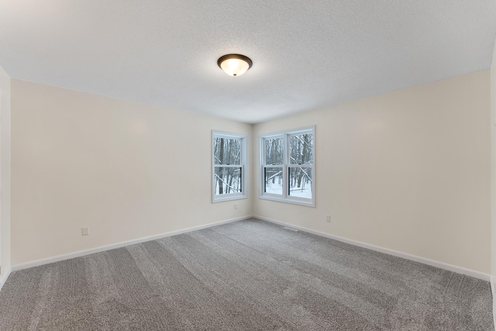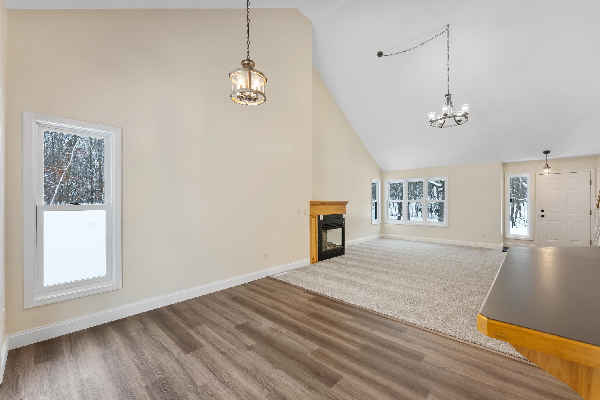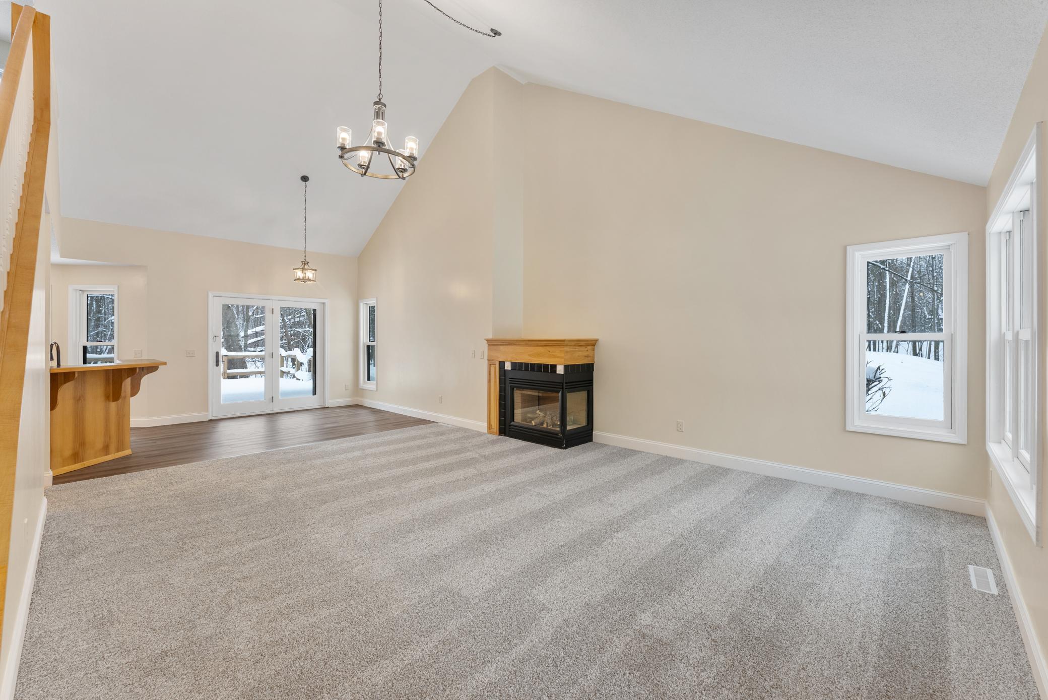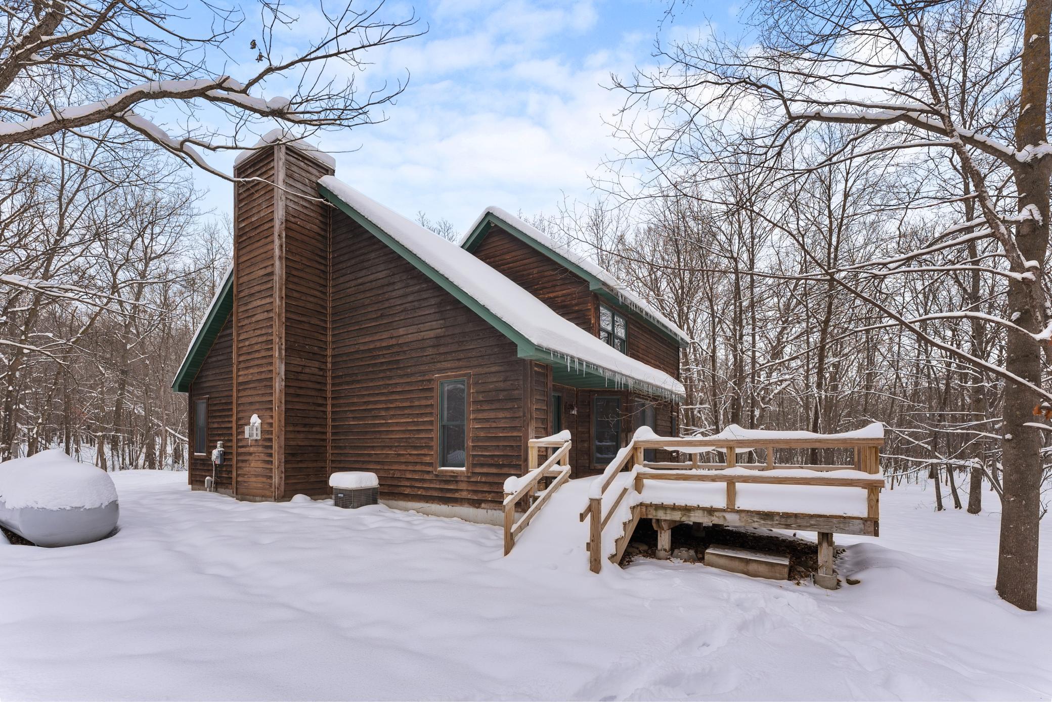 Wonderfully updated home on 5 private acres! Updates include new septic, paint, floor coverings, lights, appliances and more! 2 primary suites with huge walk-in closets! Gas fireplace in open concept main level, attached garage and an additional large detached garage. A must see!