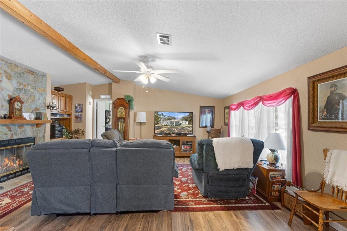Welcome to your new little slice of heaven located in gorgeous Dixie County , just around the corner from the Suwannee River. This home is immaculate , has been updated and maintained to the highest standard. An oversized 2000 DWMH 3 bedrooms/ 2 bathrooms with a bright open floor plan. Property has a nice private driveway leading you to the oversized 2 carport large enough for 4 cars, boat, ATV , bikes etc. Front entrance offers a peaceful covered porch gazing out to the peaceful yard. Entering the home you'll see the bright open floor plan with majority new laminate wood flooring, a wood burning fireplace and a great view to the dining room and kitchen. Kitchen is nice and open with loads on cabinetry and a great breakfast nook area. Each guest bedroom in immaculate condition as well as as bathroom, with all update plumbing , faucets and fixtures throughout the whole home. Master bathroom is over sized with a spacious master bathroom with stand up shower and dual vanities. Exiting the home out the back door you have a laundry /mud room and a covered porch leading you to the massive carport. The yard is like a state park, gorgeous oak trees speckled throughout , offering multiple spigots over the total 2.34 acres , a chicken coop/feed room, storage/workshop with window unit additional utility building and pump house. Amazing fiber internet offered for ease of all wifi items. AC, hot water heater and roof all new within 5-6 years. Immaculate vinyl siding all brand new skirting as well as new lending rule of permanent backing. A short drive to town for shopping and dining. Call today for YOUR tour!