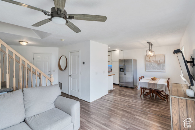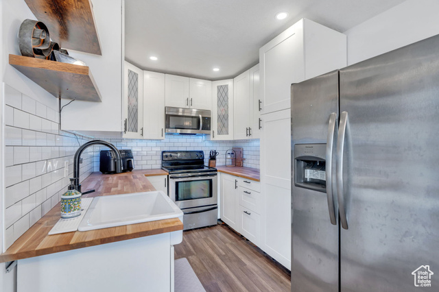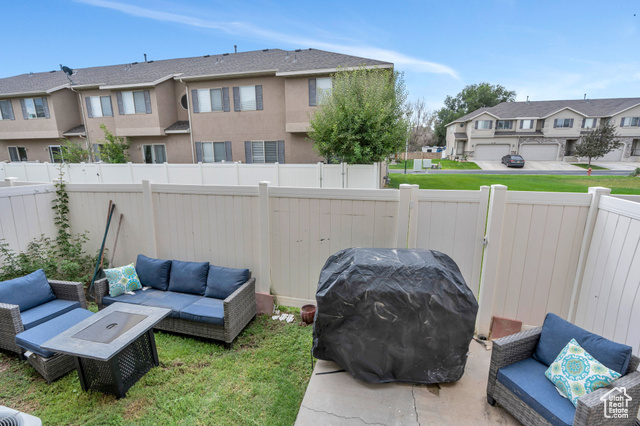 Step inside this inviting open-concept living space where style meets comfort. The main level boasts gorgeous wood-look flooring and a light, airy design that instantly feels welcoming. The spacious living room is perfect for relaxing, featuring a sleek ceiling fan, neutral tones, and a wall-mounted TV setup for modern convenience. Flowing seamlessly from the living room, the dining area shines under a chic light fixture and creates the perfect setting for family meals or entertaining friends. Just beyond, the kitchen is a true showstopper-crisp white cabinetry with stylish hardware and glass-front details pairs beautifully with a timeless subway tile backsplash. Warm butcher block counters add a touch of charm, while stainless steel appliances, including a smooth-top range and built-in microwave, make cooking both easy and elegant. Recessed lighting enhances the bright, open feel, completing this stunning space. Upstairs, retreat to the expansive primary suite where relaxation comes easy. The ensuite bath features a separate soaking tub and shower, along with a spacious vanity-your own private spa at home. A large walk-in closet provides plenty of storage. Two additional bedrooms, a full bathroom, and the convenience of upstairs laundry complete the upper level. The lower level opens to a generous family room, ideal for game nights, movie marathons, or hosting friends. Step outside to the private fenced backyard, a cozy spot for unwinding, grilling, or letting small pets play. This community offers more than just a home-it provides a lifestyle. Enjoy access to a large green space perfect for neighborhood gatherings, while being within a mile of the local elementary school. Outdoor enthusiasts will love the nearby Jordan Canal walking trail, and with shopping, dining, and everyday conveniences just minutes away, everything you need is right at your fingertips. Ask us how you can receive a 1% credit toward your closing costs when purchasing with our preferred lender! . **This property has an assumable mortgage at 3% call me for details**