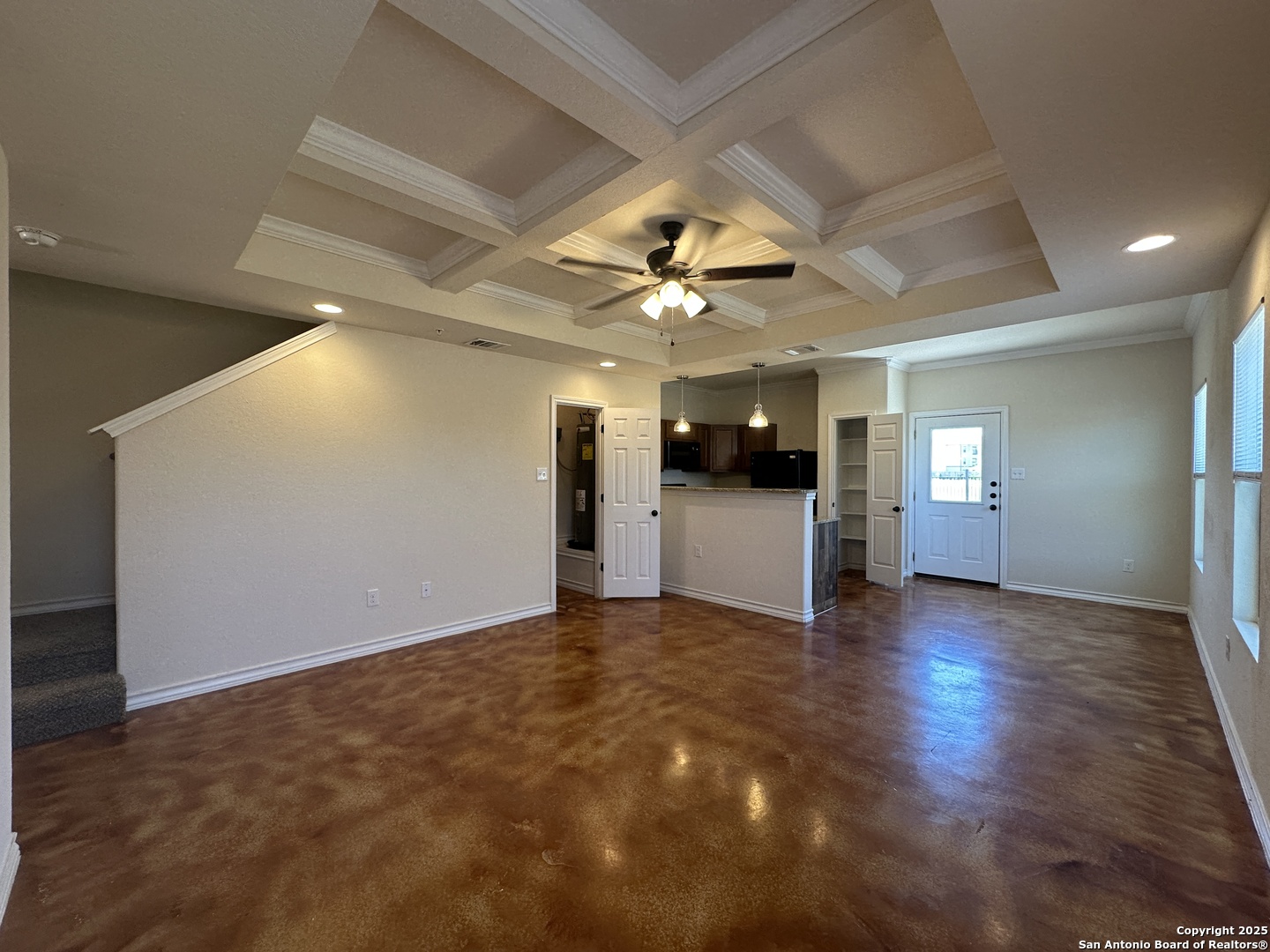 END UNIT! Townhome located in the Northeast area near 1604 and I-35. Near the Forum, Randolph Air force base, shops and restaurants. Place include private fenced in yard, 1 car garage, driveway. Interior: granite counter tops, stained concrete floor, accent ceiling, ceiling fans, electric oven, built in microwave, dishwasher, refrigerator, washer and dryer hook ups in garage. $25 extra will be added to the rent for an HVAC filter delivery program which is mandatory with properties we manage.