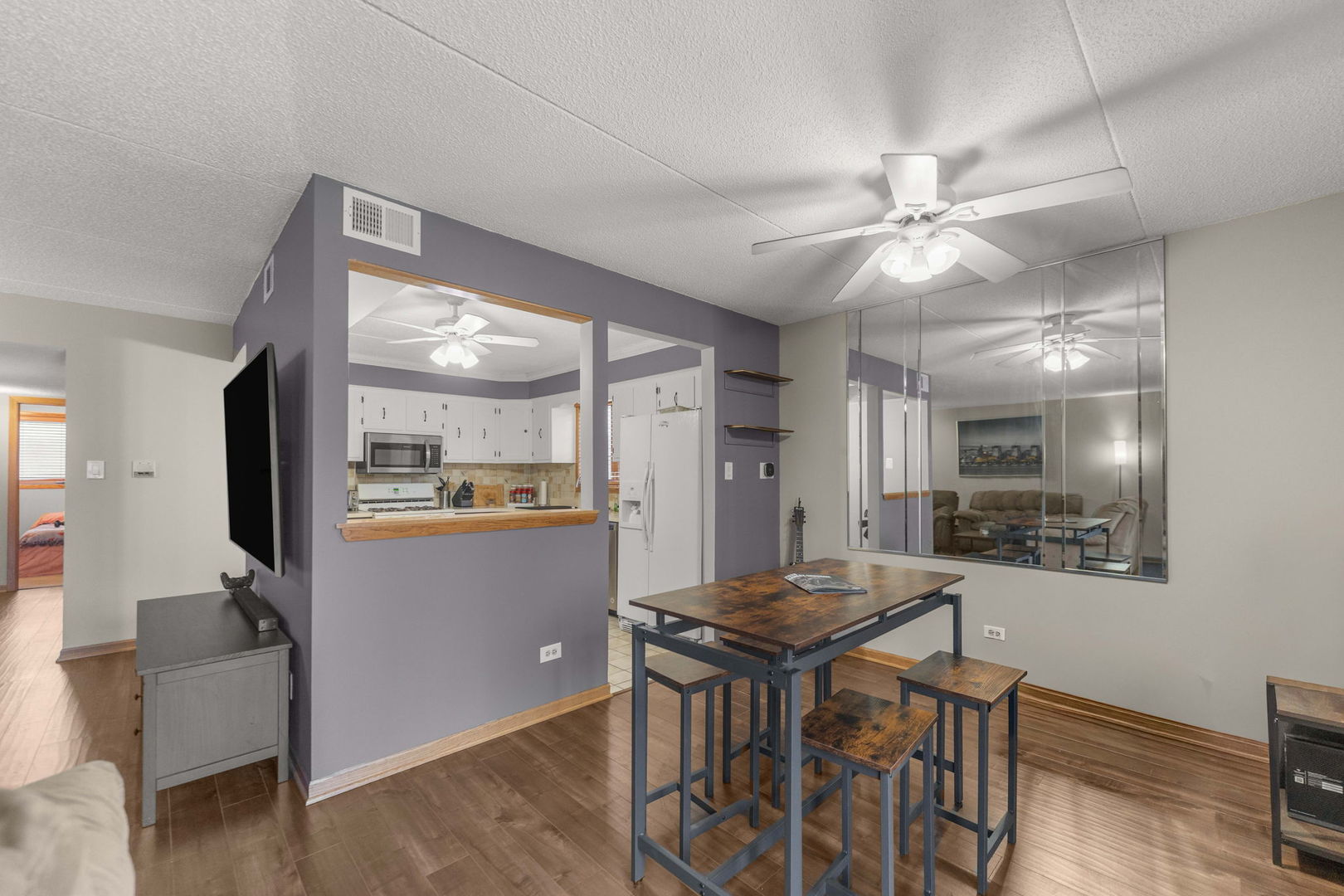 Well-maintained rare first-floor condo offering comfort and convenience! The spacious living room features wood laminate flooring and a cozy fireplace, perfect for relaxing or entertaining. The kitchen offers ample cabinet and counter space, with refinished cabinets and fresh paint throughout the unit. Enjoy outdoor space on the private patio. Additional highlights include a 1-car detached garage. Well maintained building with a new roof, Rentals are not allowed.