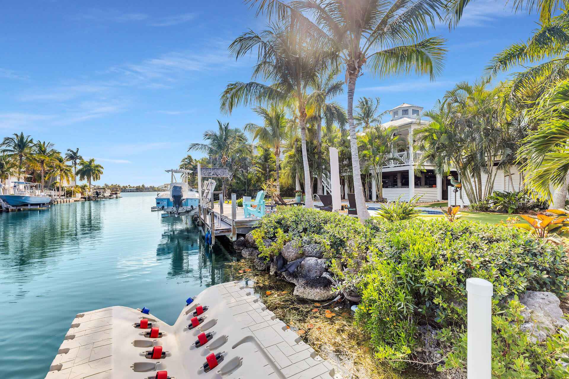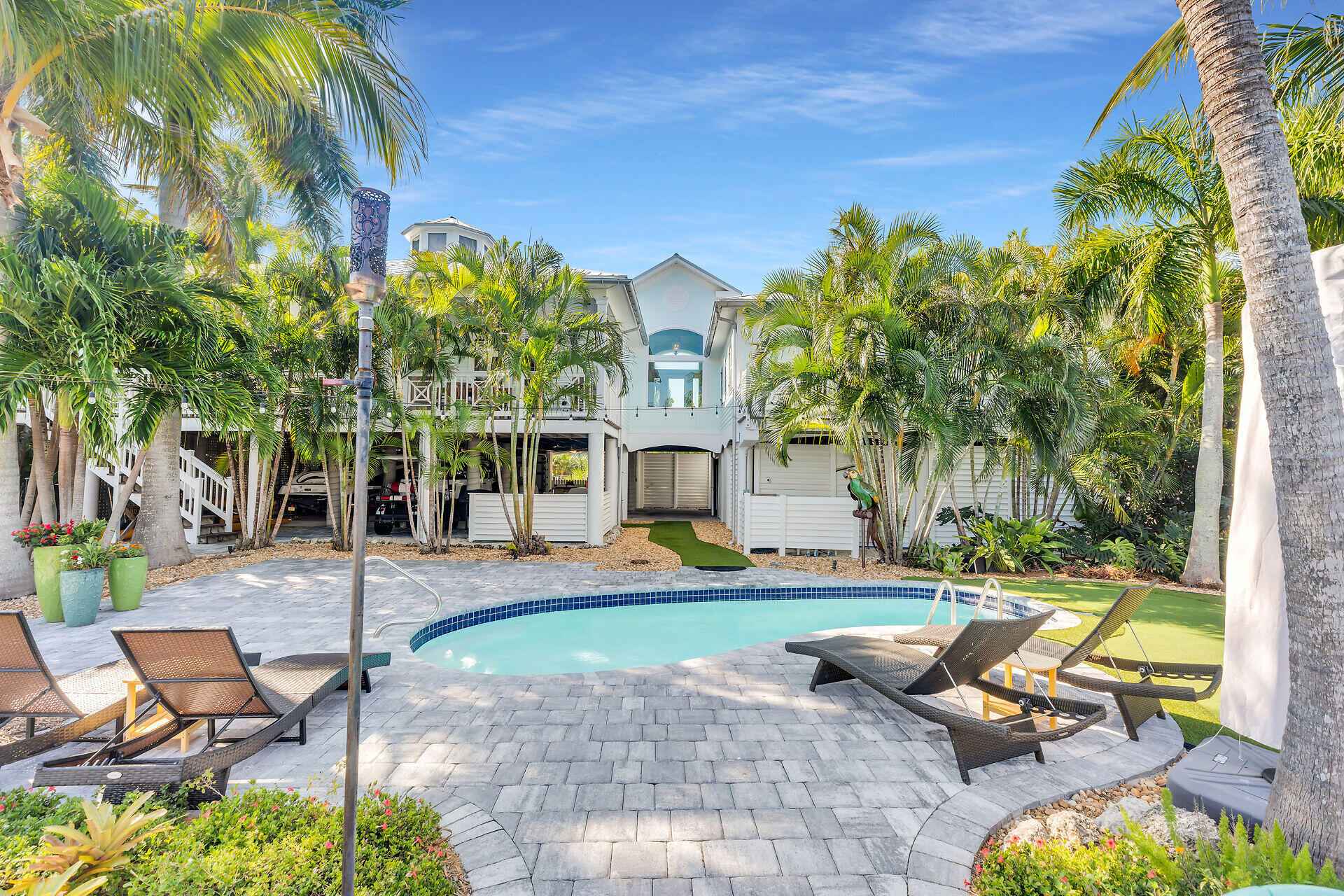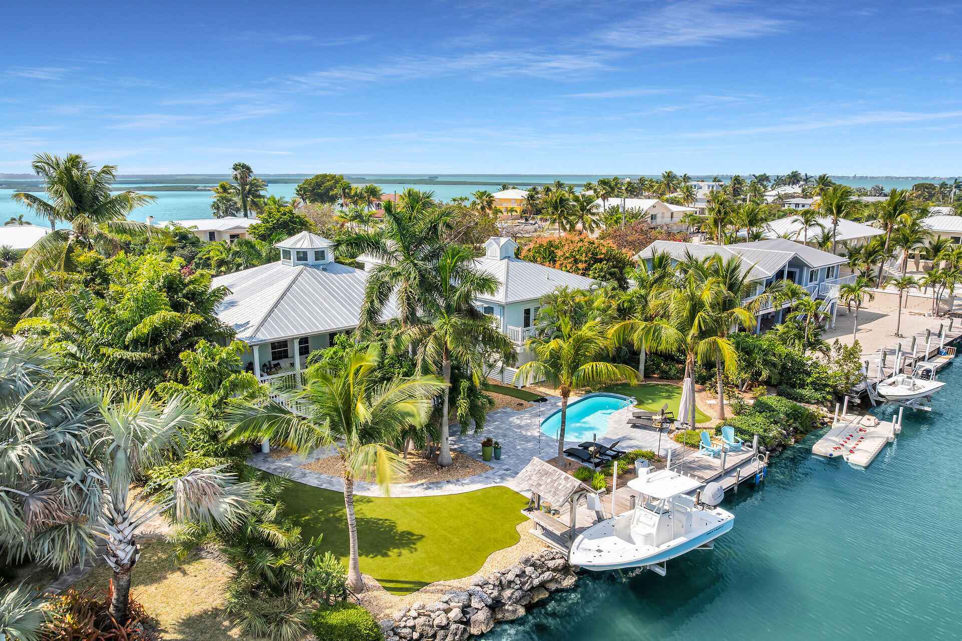 Welcome to your private waterfront retreat in the highly sought-after Southpoint neighborhood of Sugarloaf Key - where space, privacy and effortless access to the open water redefine the Lower Keys Lifestyle.Positioned along a crystal clear canal just moments from the Bay, this elevated residence offers over 2200 sq.ft of thoughtfully designed living space, featuring three spacious bedrooms and two beautifully renovated bathrooms. Clean lines, natural light and an easy indoor/outdoor flow create that relaxed atmosphere that you expect in a Modern Florida Keys Home.At the heart of the Home, the gourmet kitchen is designed for both everyday living and entertaining, complete with premium finishes, abundant cabinetry, a walk-in pantry and an adjacent oversized laundry room for added convenience.Step outside to experience what truly sets this property apart from its competition. Situated on a generous 12,500 Sq Ft lot, the grounds have been recently meticulously landscaped to create a magnificent garden, with stunning palms and tropical foliage at every turn.The rear elevated deck is the ideal spot for an evening cocktail while the pool offers a refreshing escape after a day on the water.For boating and fishing enthusiasts, the private dock and boat lift provide immediate access to the open water, placing world class fishing, snorkeling and island hopping just minutes from your backyard.The ground level is designed for relaxed island living and entertaining featuring a covered outdoor living area with grill, sink, icemaker and refrigerator. Brick Paver walkways, easy to maintain artificial turf and manicured landscaping. Additional features include covered parking for multiple vehicles, boat trailer storage and a dedicated workshop for tools, gear and all your water toys.Located in one of the Lower Keys' most desirable neighborhoods, this stunning home delivers space & privacy that is increasingly hard to find.