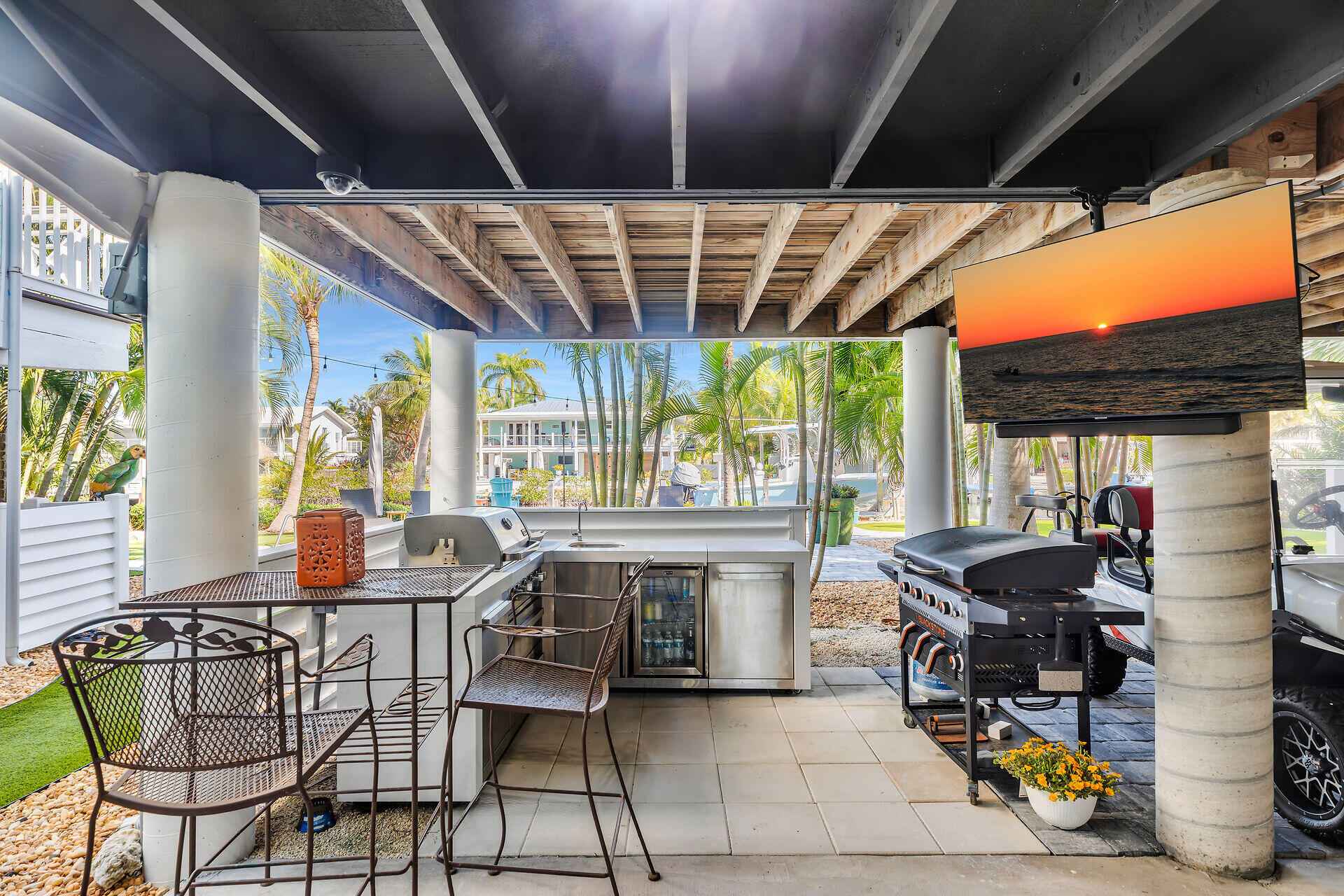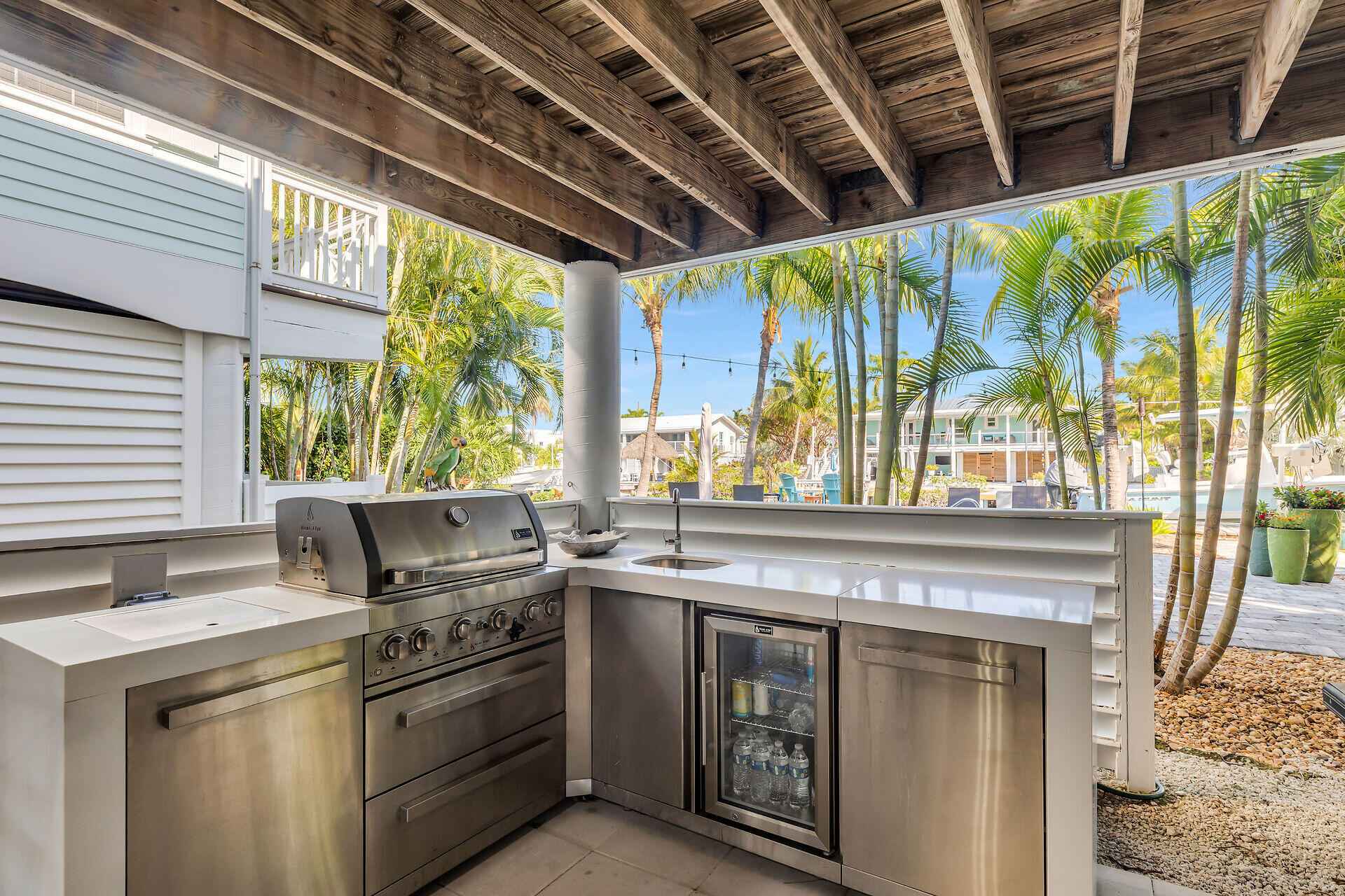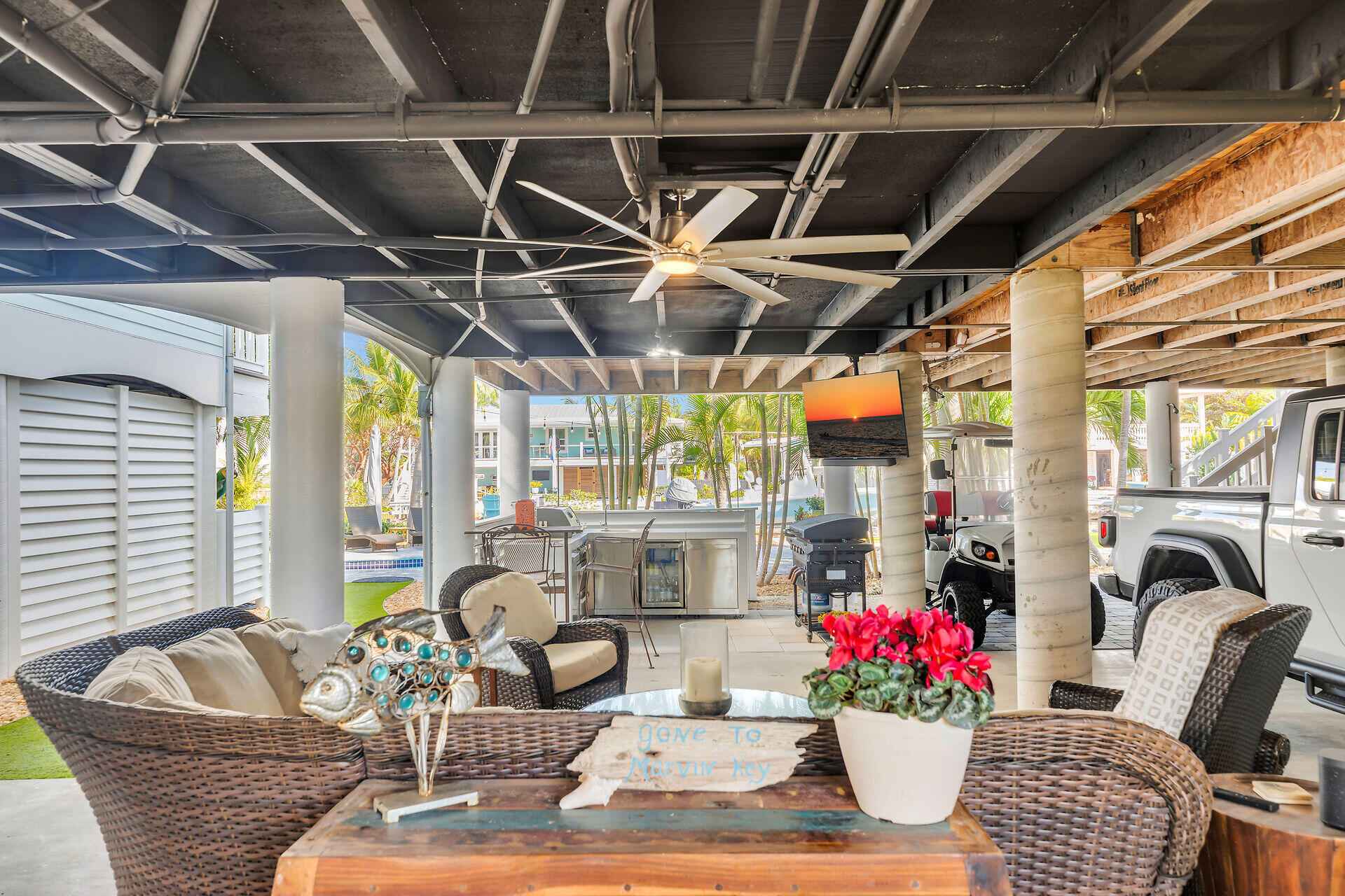 Welcome to your private waterfront retreat in the highly sought-after Southpoint neighborhood of Sugarloaf Key - where space, privacy and effortless access to the open water redefine the Lower Keys Lifestyle.Positioned along a crystal clear canal just moments from the Bay, this elevated residence offers over 2200 sq.ft of thoughtfully designed living space, featuring three spacious bedrooms and two beautifully renovated bathrooms. Clean lines, natural light and an easy indoor/outdoor flow create that relaxed atmosphere that you expect in a Modern Florida Keys Home.At the heart of the Home, the gourmet kitchen is designed for both everyday living and entertaining, complete with premium finishes, abundant cabinetry, a walk-in pantry and an adjacent oversized laundry room for added convenience.Step outside to experience what truly sets this property apart from its competition. Situated on a generous 12,500 Sq Ft lot, the grounds have been recently meticulously landscaped to create a magnificent garden, with stunning palms and tropical foliage at every turn.The rear elevated deck is the ideal spot for an evening cocktail while the pool offers a refreshing escape after a day on the water.For boating and fishing enthusiasts, the private dock and boat lift provide immediate access to the open water, placing world class fishing, snorkeling and island hopping just minutes from your backyard.The ground level is designed for relaxed island living and entertaining featuring a covered outdoor living area with grill, sink, icemaker and refrigerator. Brick Paver walkways, easy to maintain artificial turf and manicured landscaping. Additional features include covered parking for multiple vehicles, boat trailer storage and a dedicated workshop for tools, gear and all your water toys.Located in one of the Lower Keys' most desirable neighborhoods, this stunning home delivers space & privacy that is increasingly hard to find.