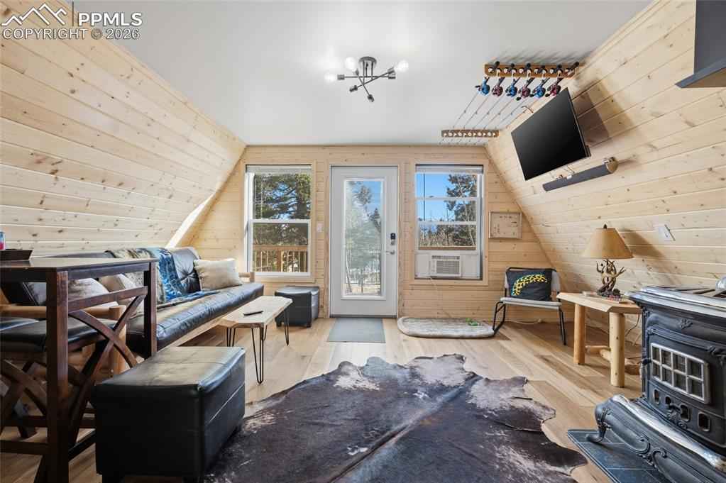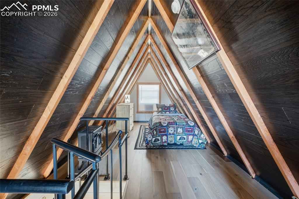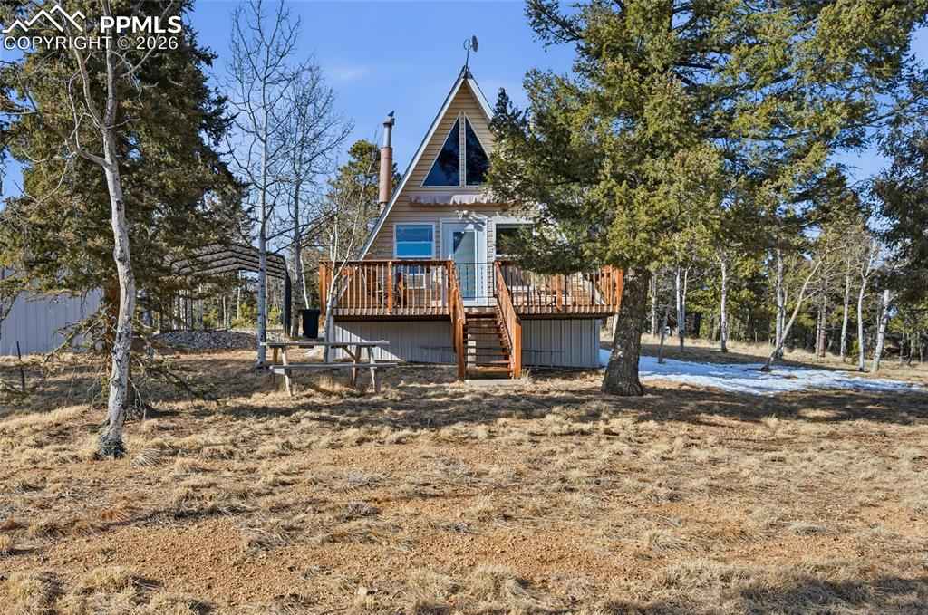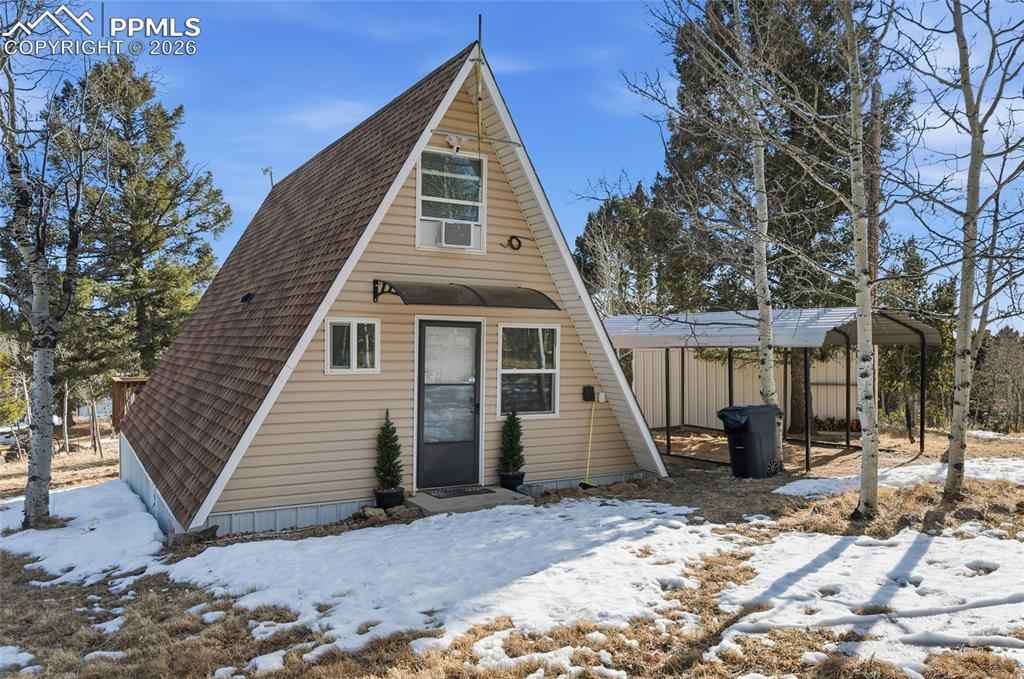 Fantastic Pikes Peak views set the stage for this beautifully remodeled A-frame mountain retreat! With southern exposure and surrounded by towering aspens on a private half-acre lot, this modern cabin offers the perfect blend of rustic charm and contemporary updates and makes a perfect Airbnb or vacation cabin rental Completely remodeled just six months ago, the home features new flooring, insulation, windows, roof, siding, doors, plumbing, skirting, kitchen cabinets, bathroom vanity, bathroom cabinetry, and pressure tankx2014;giving you peace of mind and move-in-ready comfort. Inside, warm wood plank walls and built-in finish poles along the ceiling highlight the classic A-frame character, while the cozy wood-burning stove creates the perfect mountain ambiance and keeps the home warm all winter long. The charming, updated kitchen blends modern style with cabin appeal, and the main-level bedroom with attached bath offers convenient single-level living. A spiral staircase leads to the upper loft area with two beds and a delightful window seatx2014;ideal for soaking in breathtaking Pikes Peak views by day and stargazing at night. Additional highlights include a tankless/on-demand water heater, high-efficiency systems, a carport, and a workshop for all your mountain projects and gear. Whether youx2019;re looking for a peaceful full-time residence, weekend escape, or vacation rental opportunity, this property delivers. Located just 6 miles from downtown Woodland Park and 20 miles to Colorado Springs, youx2019;ll enjoy the perfect balance of seclusion and accessibility in this stunning mountain getaway.