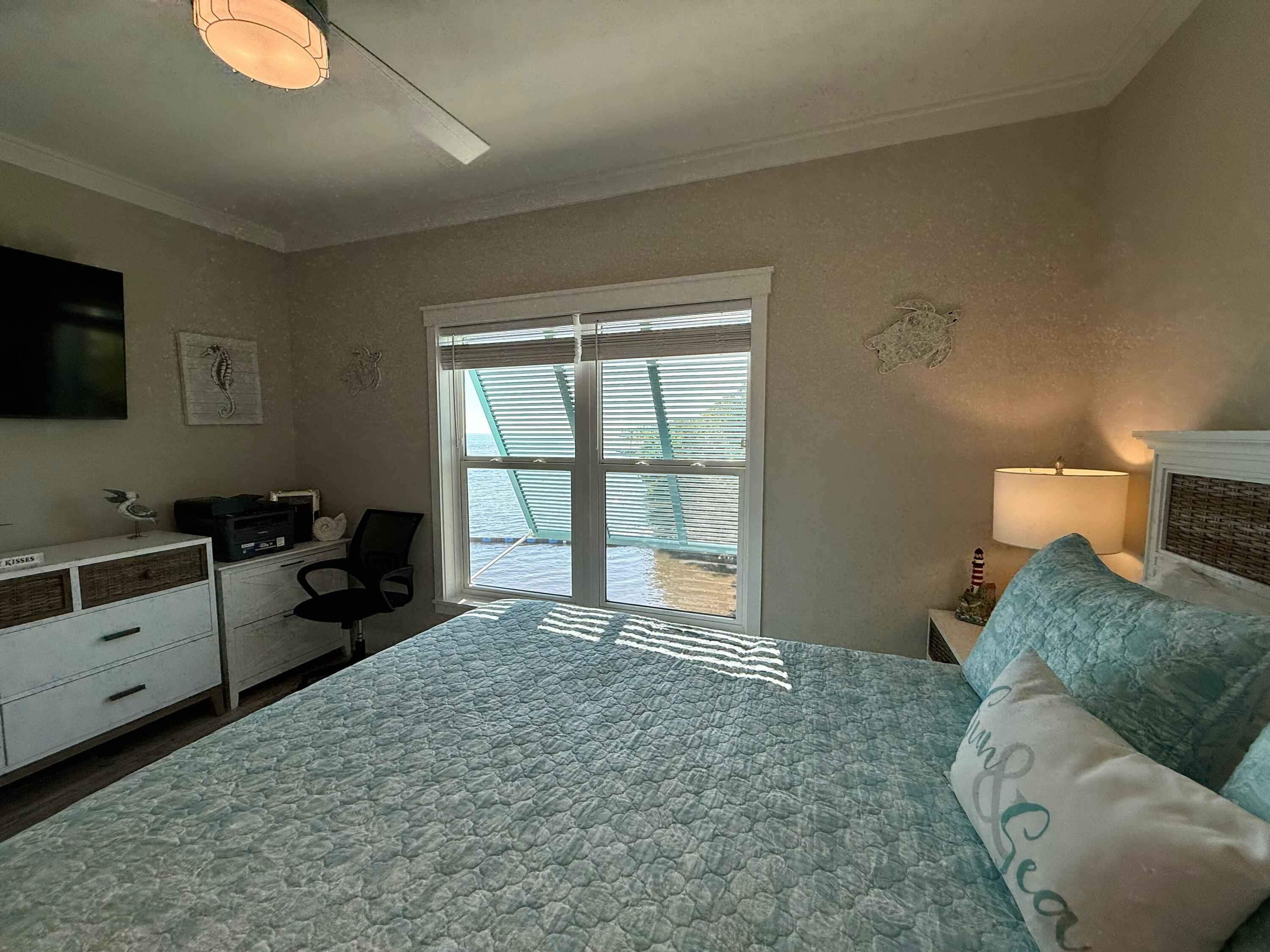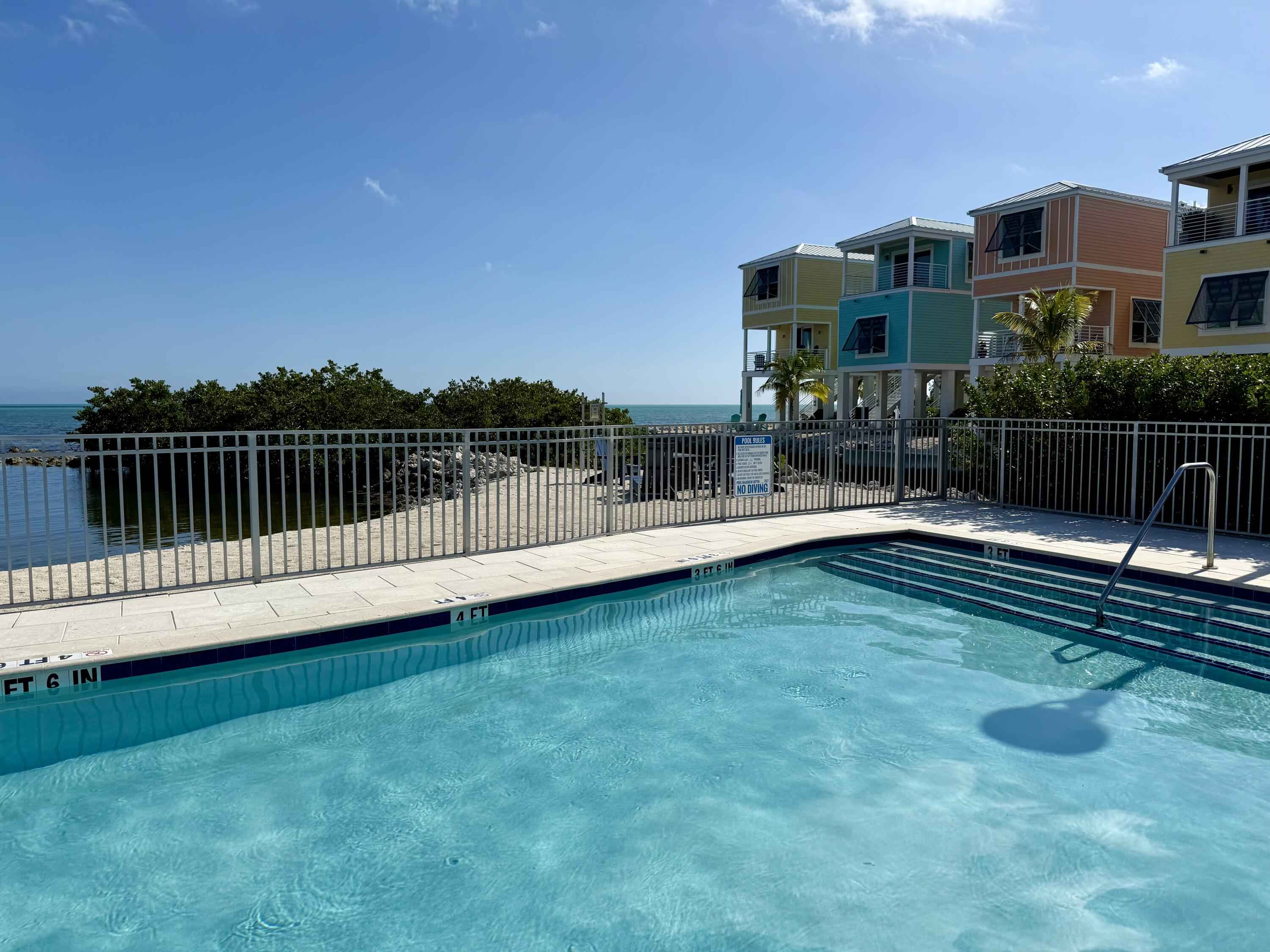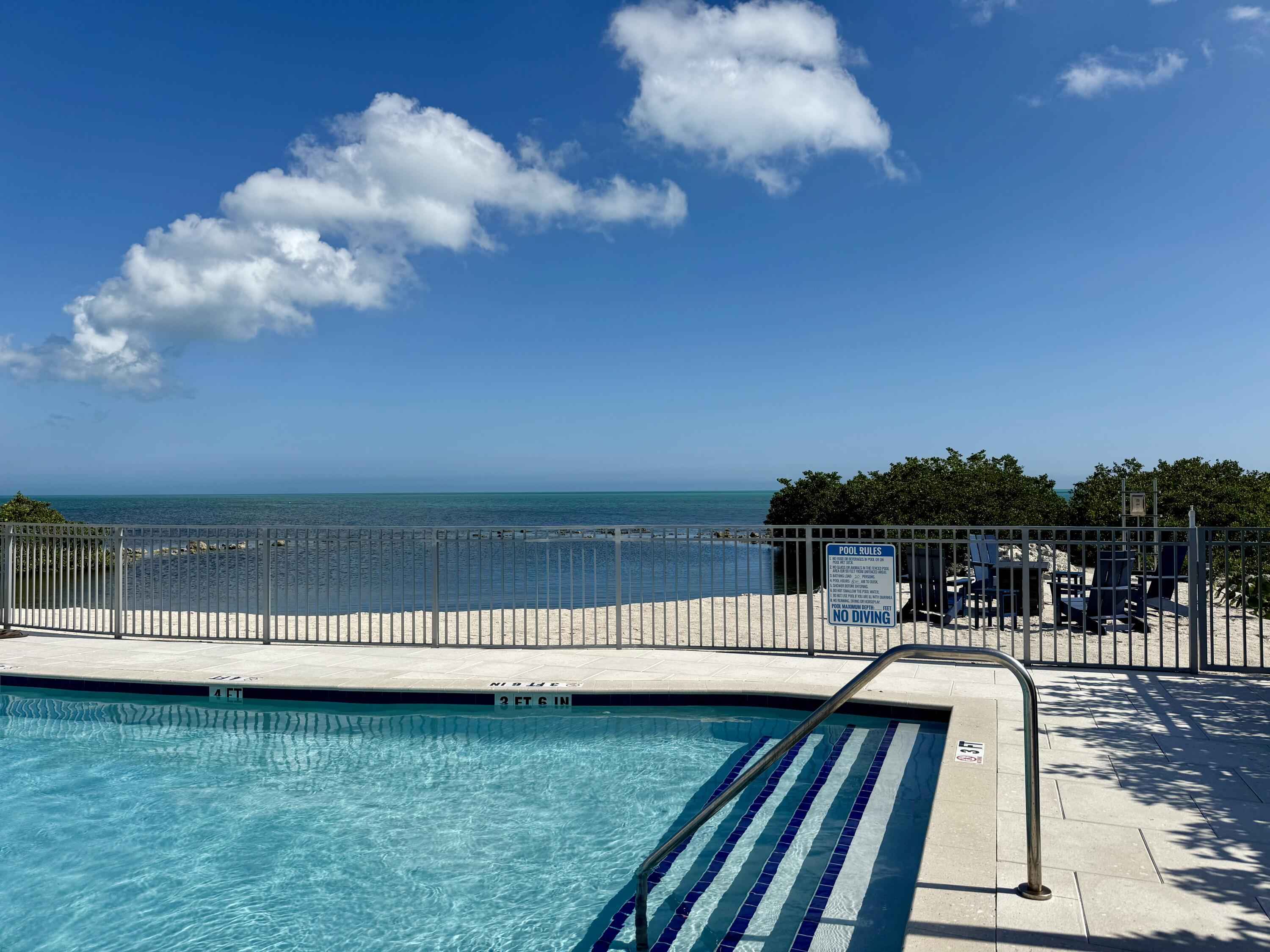 Live your vacation year-round in this ocean-front townhome offering resort-style living. This recently constructed and furnished home features two-bedrooms and two-bathrooms. The first living level includes a guest bedroom and bathroom and an open-concept kitchen and living area, while the second level is dedicated to a private primary suite with a coffee and wet bar, ideal for a morning cup of coffee or an evening glass of wine before stepping onto the ocean-front porch to enjoy the sunrise or sunset. The home features ocean views from nearly every window.The home is located within the Sun Outdoors community on Plantation Key. Owners-only amenities include a gated private drive, a private pool with seating area and TV, a rooftop tanning deck with loungers and seating, an ocean-front fire pit, and a private marina with a fishing cleaning station and ice machine. Dockage is available for an additional fee. Additional community amenities include paddle boards and kayaks, a fitness center, cornhole boards, an additional pool with cabanas and a tiki hut, and more. The community frequently hosts local food trucks and weekly entertainment at the community center.Covered parking is located under the home for up to two vehicles, along with a private storage shed. Well-behaved pets will be considered. Water and electric are included, with a usage cap.