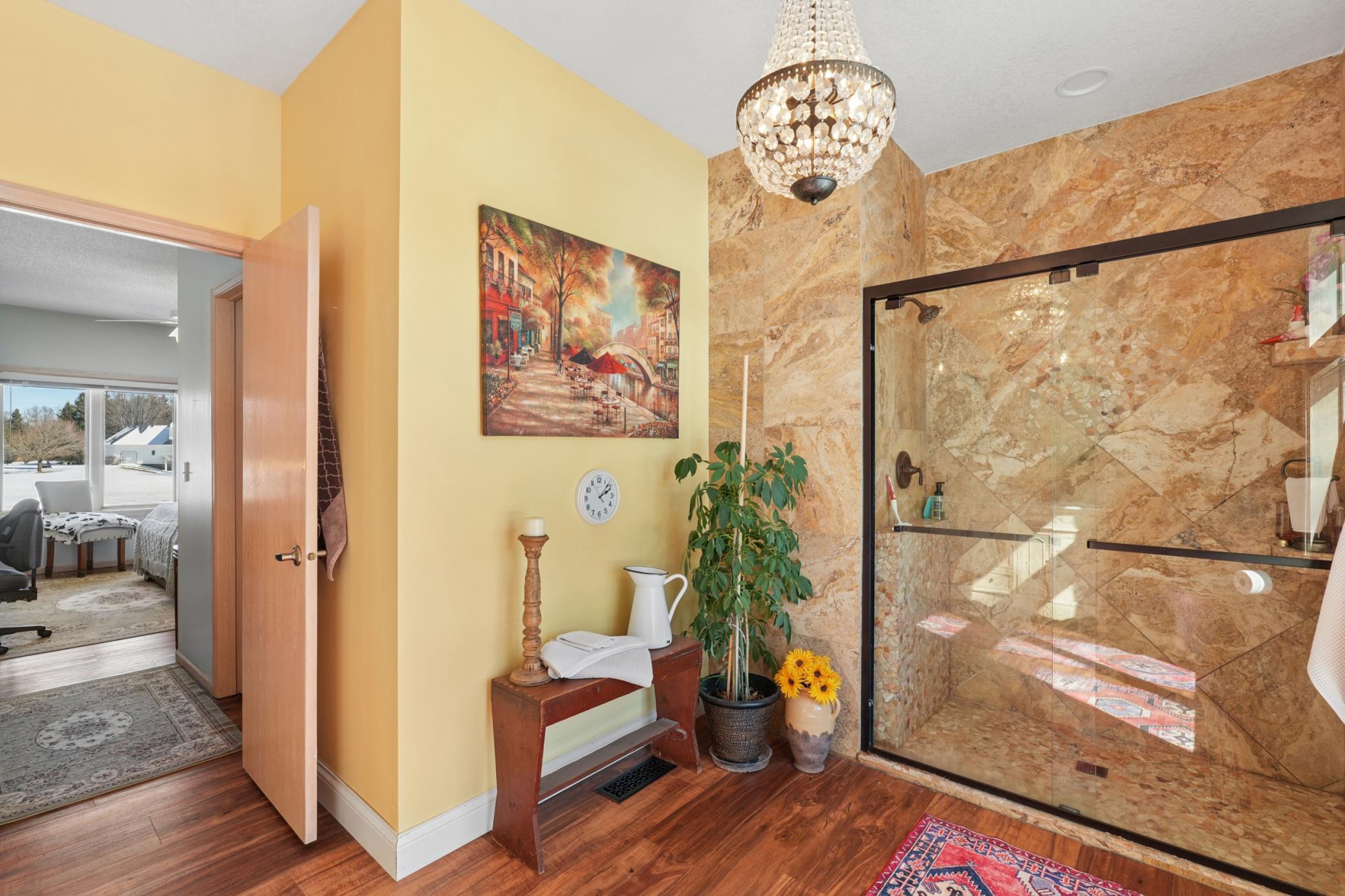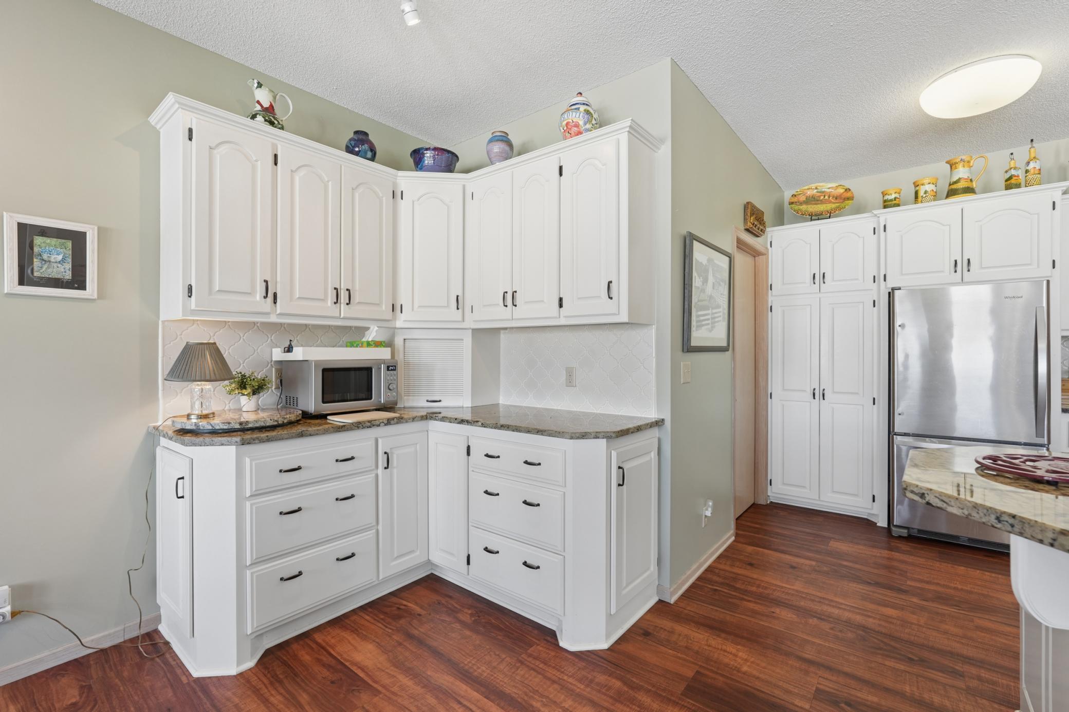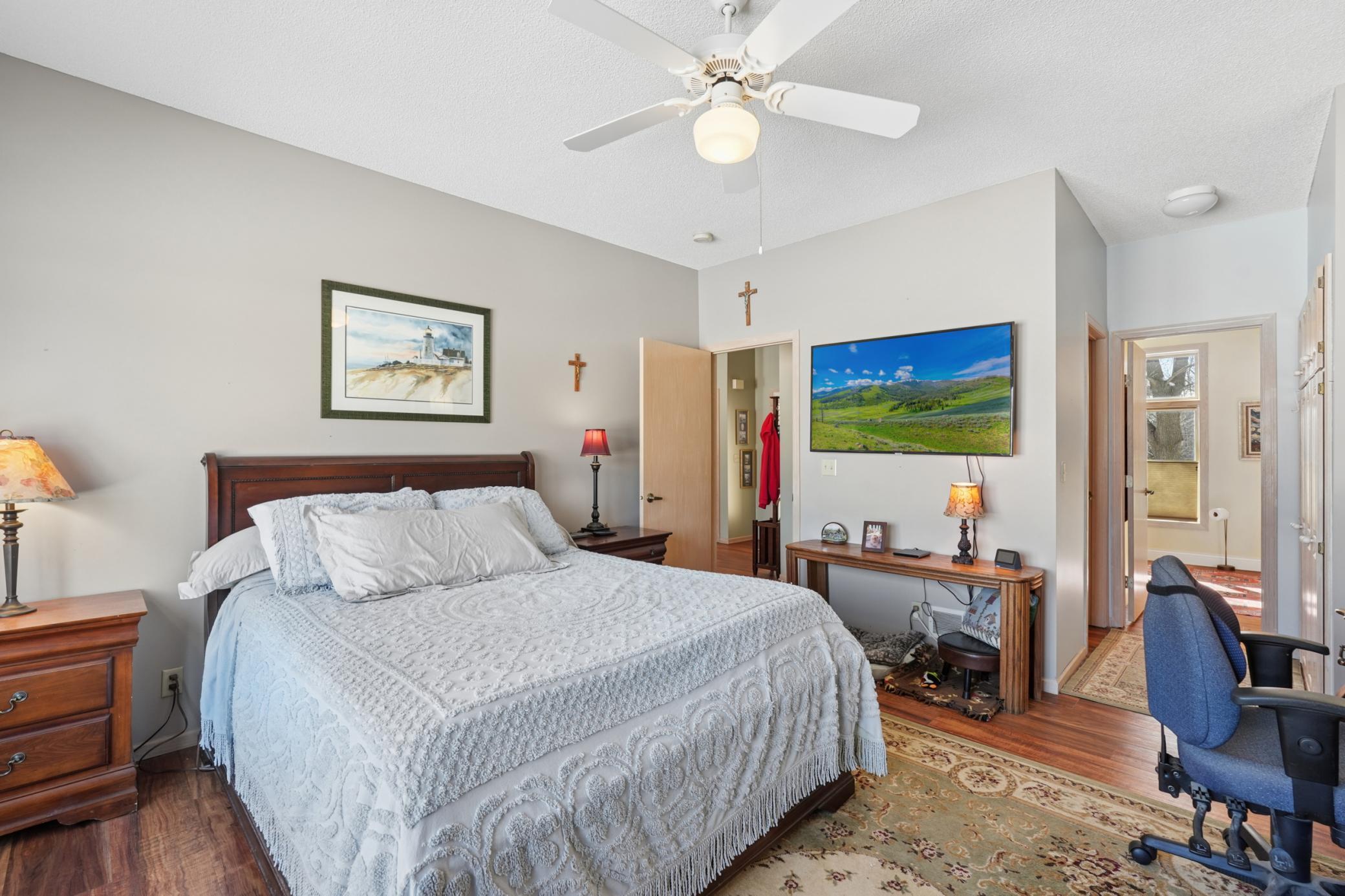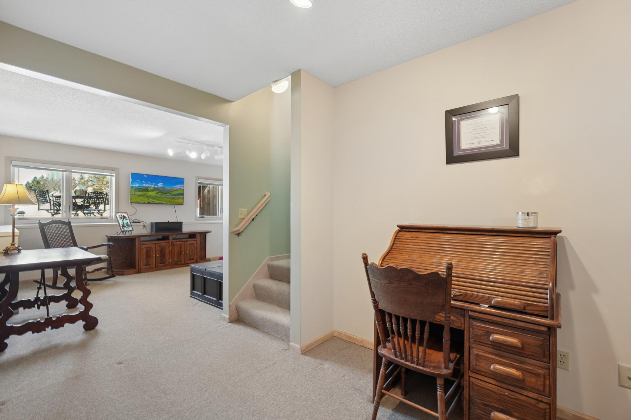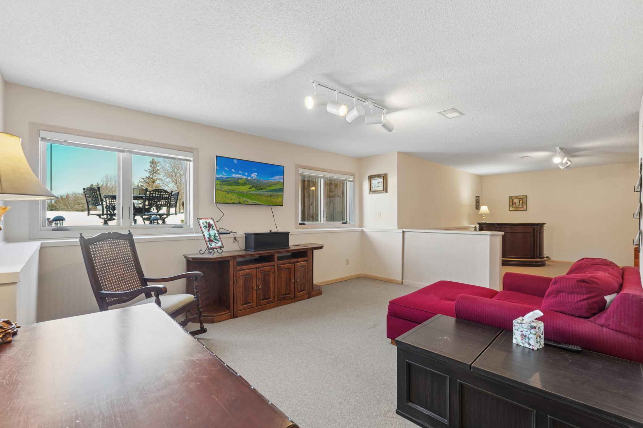 Rarely available in the highly desirable Rum River Hills golf course community, this executive Gorham-built townhome sits beautifully along the 12th green, offering scenic views and a peaceful setting! The inviting front entry leads into a vaulted living room filled with natural light from a striking wall of windows and anchored by a warm gas fireplace, creating a welcoming and comfortable gathering space. The remodeled kitchen and dining area (2021) feature stainless appliances from Warners Stellian, ample cabinet and counter space, and a comfortable informal dining area! Designed for convenient one-level living, the main floor includes a generous primary suite with a walk-in closet, custom built-ins, and a beautifully updated private bath featuring a dual sink vanity and floor-to-ceiling travertine tile shower. Enjoy main level laundry and an updated 1/4 bath, great for guests (both main level bathrooms remodeled in (2022)! The bright and spacious lower level offers a comfortable family room, an additional bedroom, and another updated bath with tile shower (2021)! This home has over $134,000 in upgrades, including a new furnace (2024), water softener (2021), water heater (2021), HRV air exchanger (2023), washer and dryer (2021), and kitchen appliances (2018)! Step outside to the large maintenance free deck, newly built in 2023, complete with stairs leading to the backyard patio, under-deck storage and a golf cart garage, perfect for enjoying the golf course lifestyle!