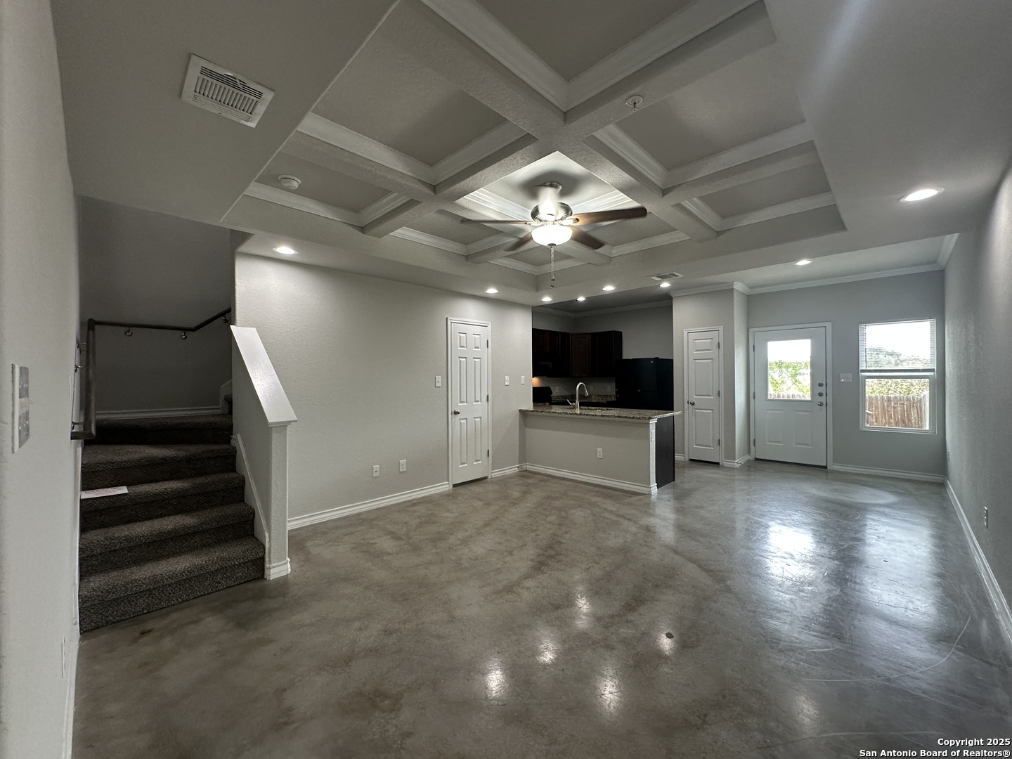 CORNER LOT Townhome located in the Northeast area near 1604 and I-35. Near the Forum, Randolph Air force base, shops and restaurants. Property includes privately fenced in yard, 1 car garage, DOUBLE wide driveway. Interior: granite kitchen island, stained concrete floor, accent ceiling, ceiling fans, electric oven, built in microwave, dishwasher, refrigerator, and washer and dryer hook ups in the garage. $25 extra will be added to the rent for an HVAC filter delivery program which is mandatory with properties we manage.