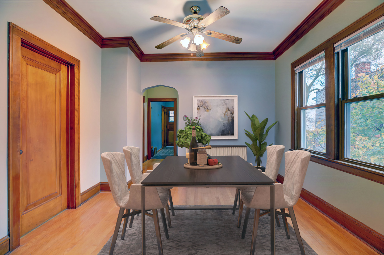 Beautiful 2nd floor with 2 bedrooms and a huge 3rd floor loft bedroom or maybe a home office or just a huge space for what ever you need it to be! Freshly painted. Updated Kitchen with separate breakfast room which could also be an office or huge walk in pantry. Newer full bath. Formal dining room & living rm w/fireplace. Huge fully fenced in yard, Grill & Patio usage available. All utilities except electric (based on square footage) are billed monthly directly from landlord to cover gas water & scavenger based on 1 year average $200.00@ month. Rent also includes on site FREE Laundry & 1 garage parking space!!!! Showings will start 3/13