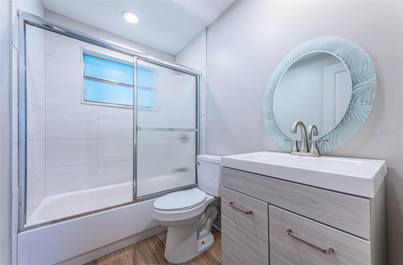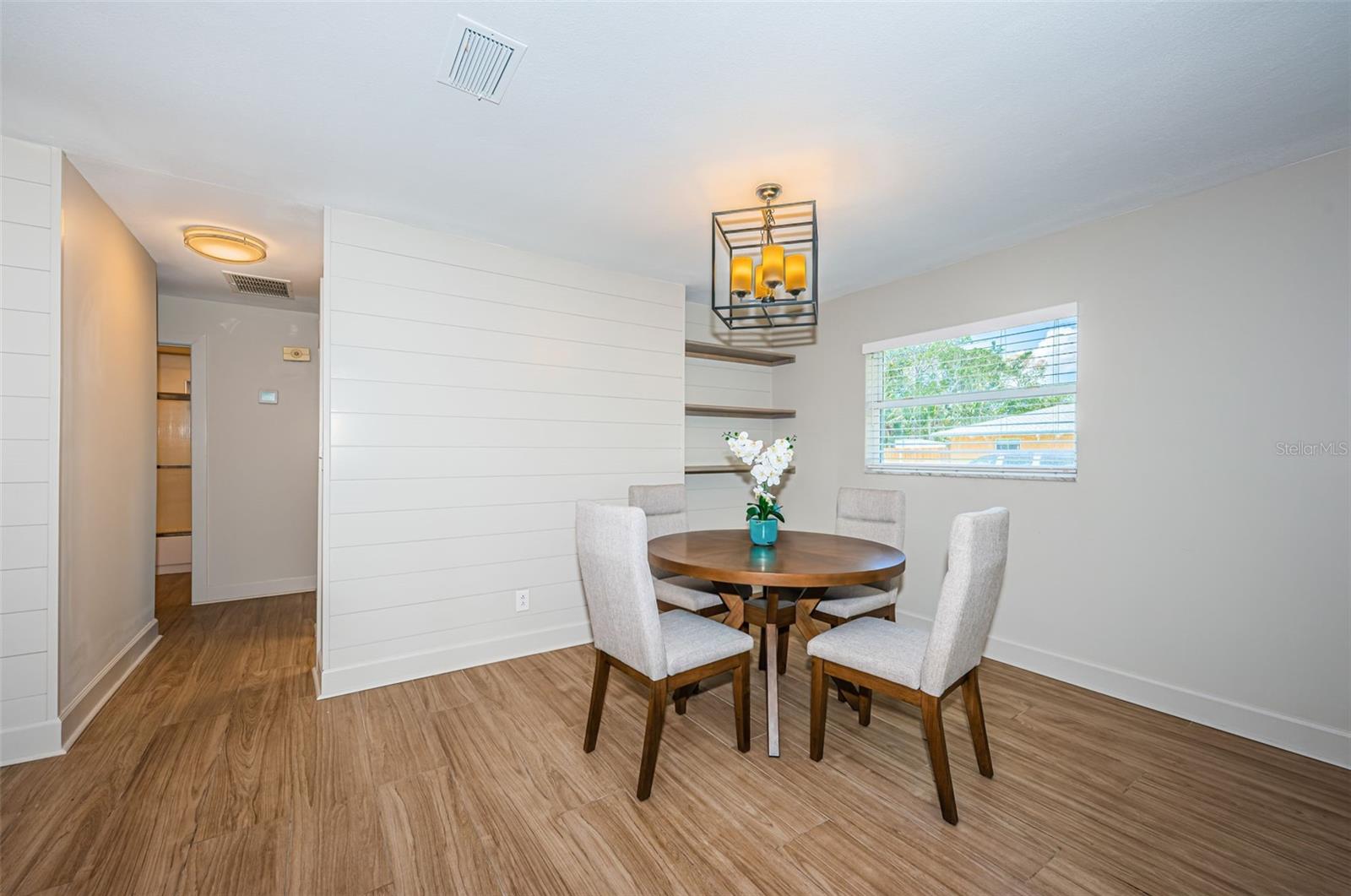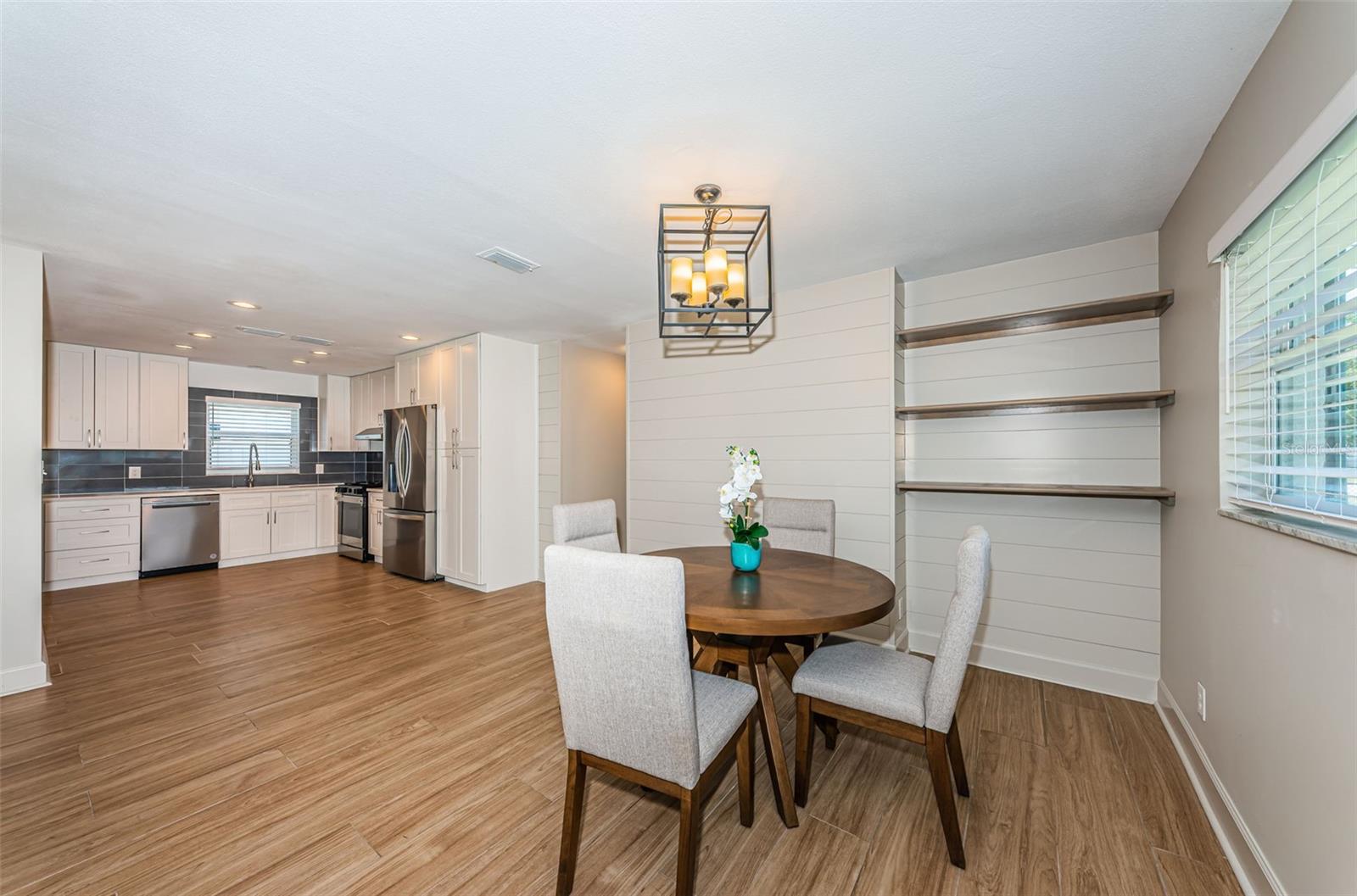 Situated on a desirable corner lot in Shore Acres, this 2 Bedroom 2 Bathroom home has been beautifully renovated and is ready for its next owner. As you step inside, tile flooring runs throughout the entire open concept home. The kitchen features a modern tile backsplash, quartz counter tops and shaker style cabinetry and flows effortlessly into the living & dining area's with custom shiplap wall features & built in wooden shelving. For added space, a bright sunroom with its own wall unit is ideal for a home office, hobby room, or workshop! The attached 1-car garage is perfect for additional storage or parking and the fully fenced yard provides added privacy for family and pets! Other updates include a new garage door (2024), HVAC (2023) and Roof (2016). Located minutes to the newly rebuilt shore acres community center and pool, and within minutes to I-275, Whole Foods, Starbucks, Trader Joes, local eateries, retail, Crisp Park boat launch and the waterfront of thriving downtown St. Petersburg!