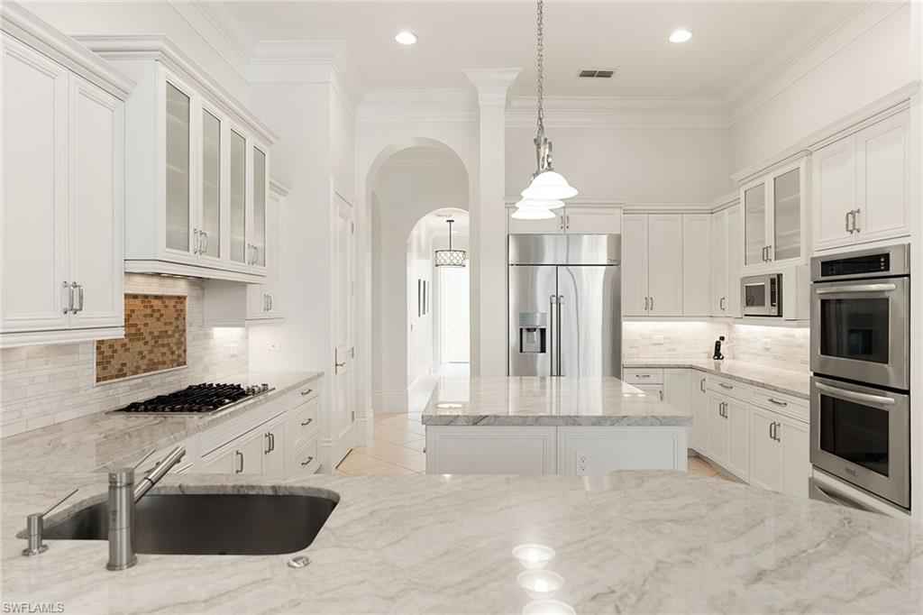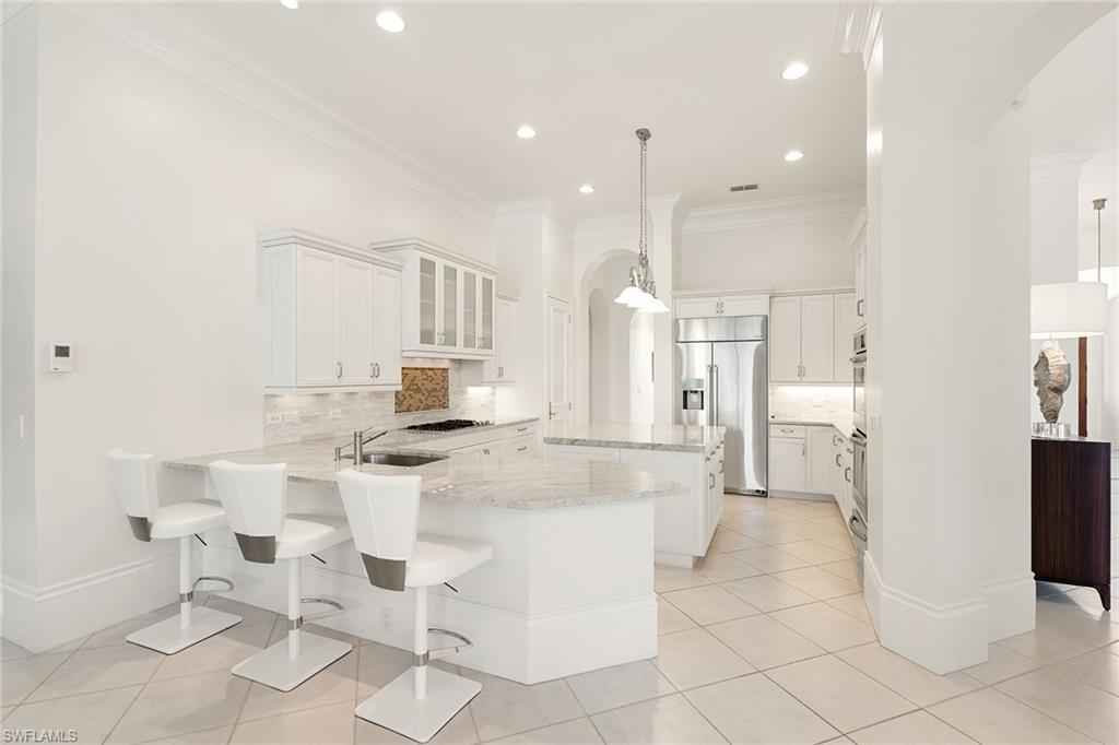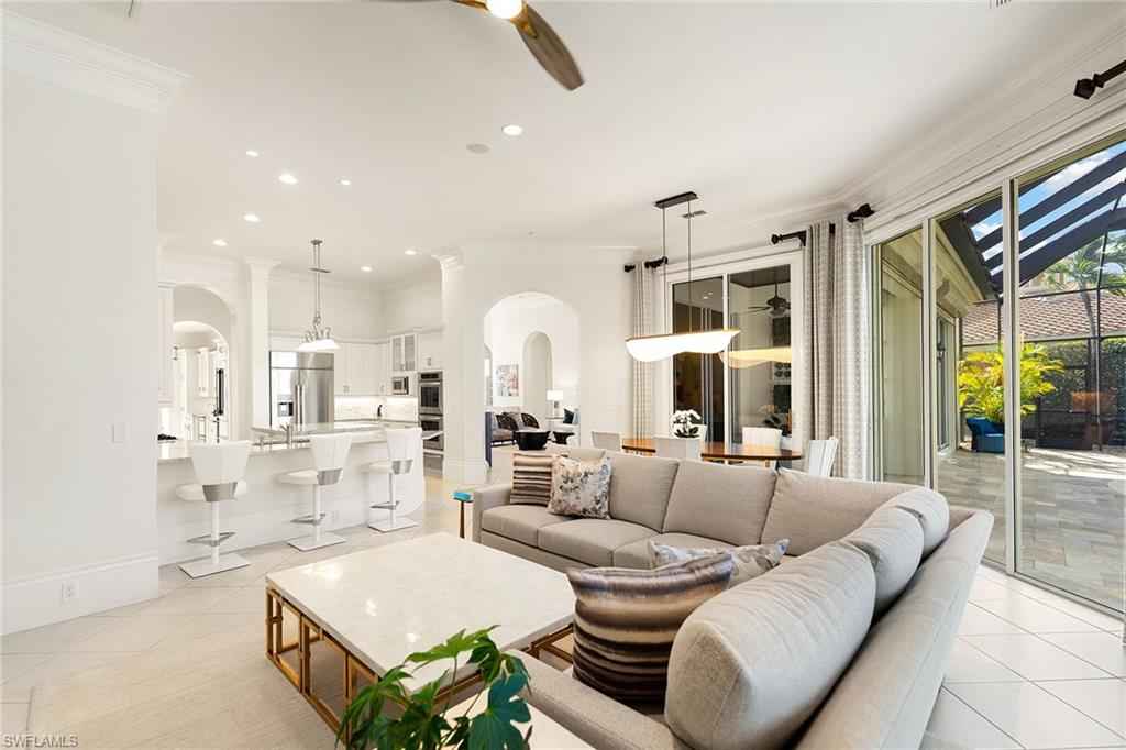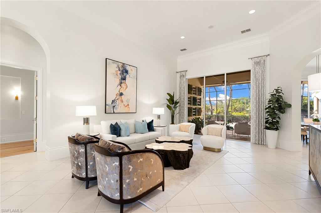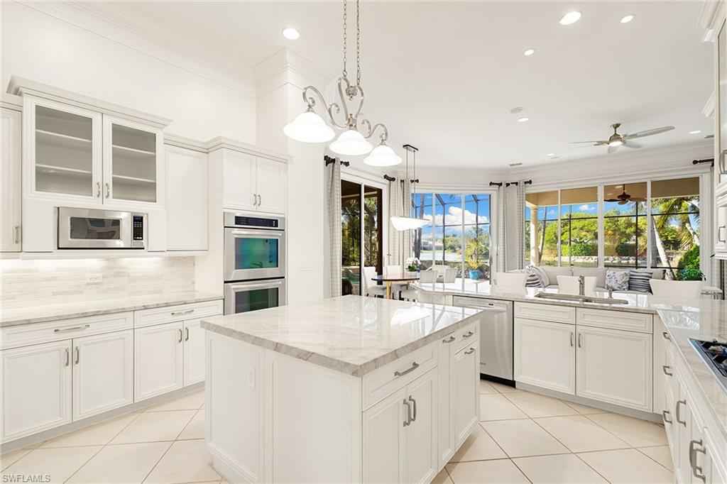 Set in the prestigious gates of Grey Oaks Country Club, this elegantly updated residence offers a rare blend of serenity, privacy, and timeless sophistication. Tranquil lake and botanical island views create a stunning backdrop, while the homex2019;s setting, free from neighboring residences to the north, south and east, ensures exceptional privacy. The thoughtfully expanded three-bedroom-plus-study floor plan reflects meticulous attention to detail, featuring an additional guest suite closet, a newly created utility room and a fully air-conditioned golf cart garage seamlessly integrated with the two-car garage. Entertaining is elevated by a beautifully reimagined butlerx2019;s pantry, offering generous storage and effortless flow. At the heart of the home, the kitchen showcases quartz countertops, refined backsplash, updated fixtures and premium appliances including refrigerator/freezer, dual dishwashers, double ovens, cooktop, warming drawer and Sub-Zero wine storage, opening gracefully to the family room. Outdoor living is equally compelling, with a screened travertine lanai enhanced by warm wood ceiling accents, ideal for entertaining or quiet reflection amid serene views. Additional features include a whole-house generator, electric storm shutters on the front entry and sliders, tankless water heater, new roof (2021), and fresh interior and exterior paint. Grey Oaks Country Club offers an unparalleled lifestyle with two clubhouses, 54 holes of championship golf, a 30,000-square-foot wellness center, a 450-seat Pool CafxE9;, and world-class tennis, pickleball and bocce facilities, all in a prime Naples location close to beaches, dining and shopping.