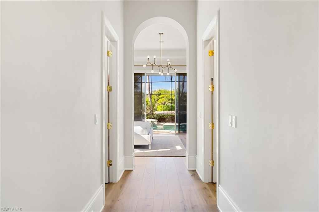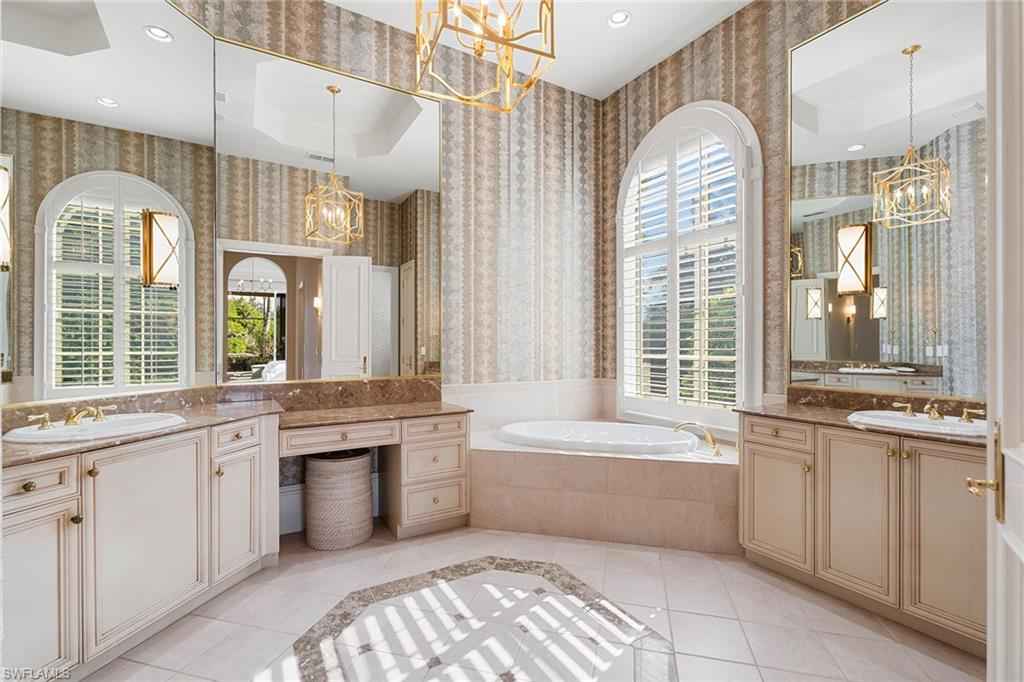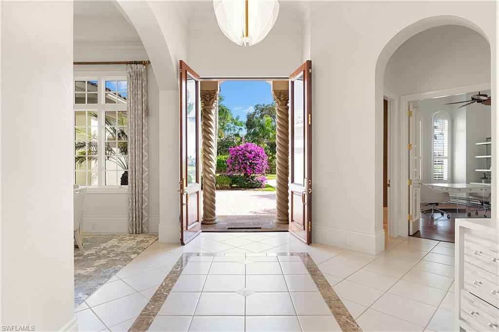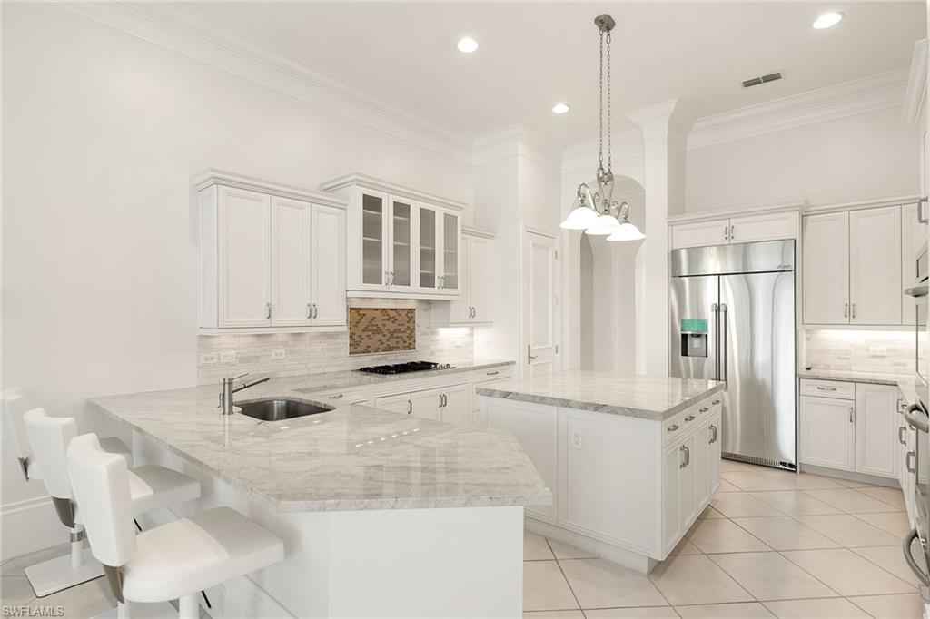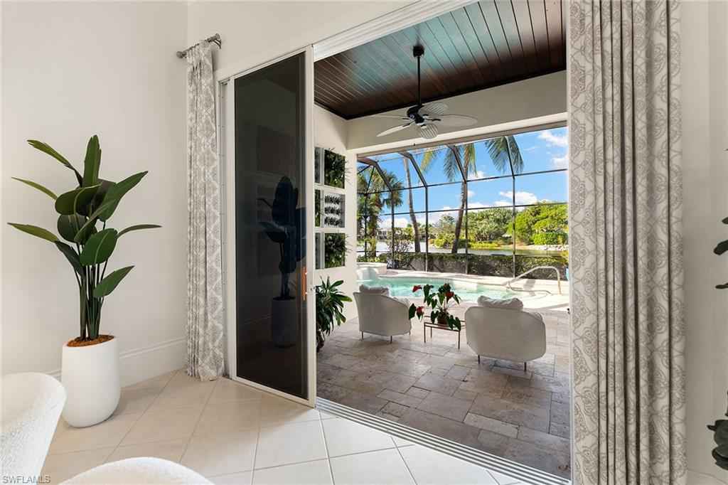 Set in the prestigious gates of Grey Oaks Country Club, this elegantly updated residence offers a rare blend of serenity, privacy, and timeless sophistication. Tranquil lake and botanical island views create a stunning backdrop, while the homex2019;s setting, free from neighboring residences to the north, south and east, ensures exceptional privacy. The thoughtfully expanded three-bedroom-plus-study floor plan reflects meticulous attention to detail, featuring an additional guest suite closet, a newly created utility room and a fully air-conditioned golf cart garage seamlessly integrated with the two-car garage. Entertaining is elevated by a beautifully reimagined butlerx2019;s pantry, offering generous storage and effortless flow. At the heart of the home, the kitchen showcases quartz countertops, refined backsplash, updated fixtures and premium appliances including refrigerator/freezer, dual dishwashers, double ovens, cooktop, warming drawer and Sub-Zero wine storage, opening gracefully to the family room. Outdoor living is equally compelling, with a screened travertine lanai enhanced by warm wood ceiling accents, ideal for entertaining or quiet reflection amid serene views. Additional features include a whole-house generator, electric storm shutters on the front entry and sliders, tankless water heater, new roof (2021), and fresh interior and exterior paint. Grey Oaks Country Club offers an unparalleled lifestyle with two clubhouses, 54 holes of championship golf, a 30,000-square-foot wellness center, a 450-seat Pool CafxE9;, and world-class tennis, pickleball and bocce facilities, all in a prime Naples location close to beaches, dining and shopping.