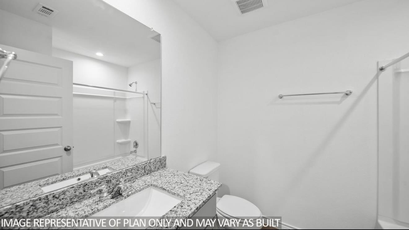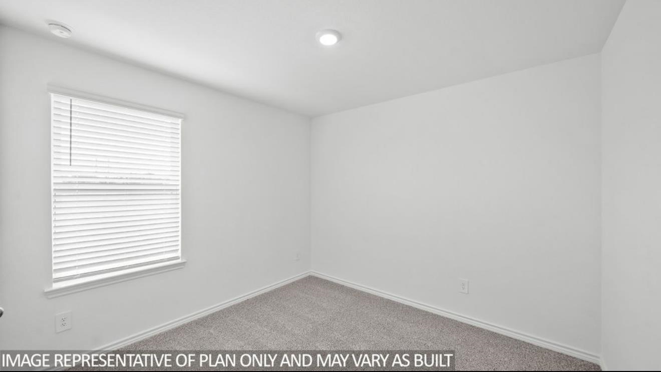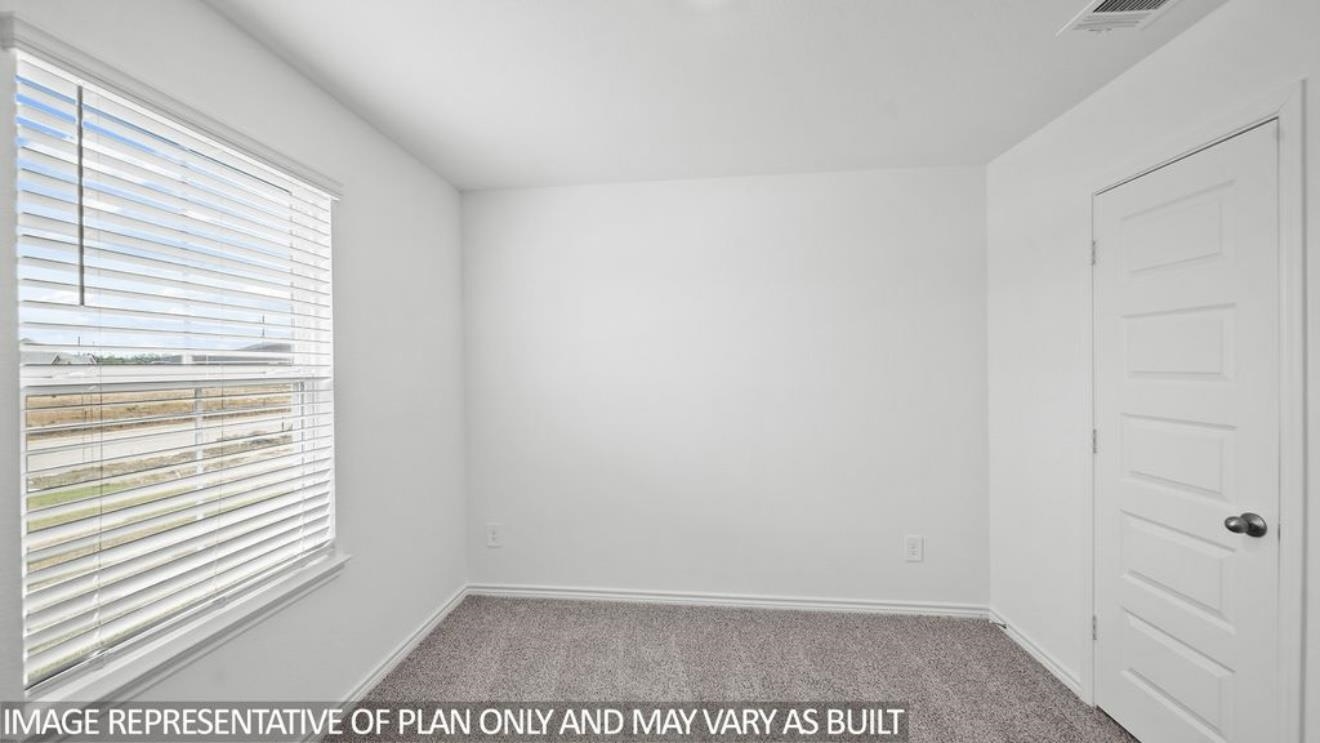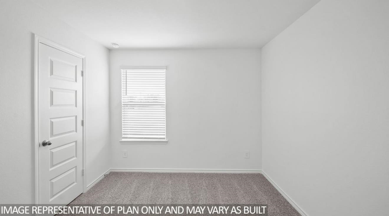 The Harris is a single-story home that offers 1,831 square feet of living space, a two-car garage, four bedrooms and 2.5 bathrooms. As you enter the long foyer you will pass two spare bedrooms, bedroom 3 and 4, and the second bathroom. As you continue down the hall, you will pass the final spare bedroom, bedroom 2, as well as the utility room, powder room and extra storage closet. The entry way will then open into the open dining, kitchen and living room area. the kitchen features a large kitchen island for entertaining, granite countertops, a large pantry and stainless steel appliances throughout. The family room provides plenty of natural lighting to the home, as it looks out to the covered patio. Just off the family room is the private master bedroom with a large walk in closet.