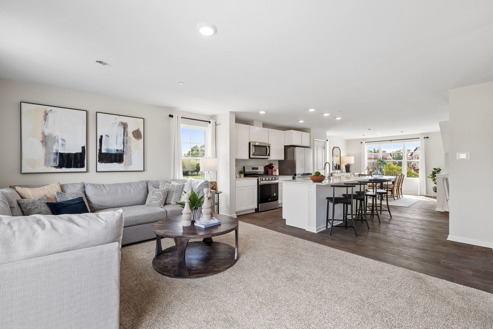 Welcome to Oak Ridge, Tinley Park's premier new construction community! This stunning end-unit townhome, freshly built in 2025 and available for rent for the very first time, combines modern style, everyday comfort, and an unbeatable location. Step inside to an airy open-concept main level, with hardwood throughout (note photos show carpet). The spacious living and dining areas seamlessly connect to a chef-inspired kitchen with designer cabinetry, quartz countertops, stainless steel appliances, oversized island, pantry, and access to your private balcony. Upstairs, you'll find three large bedrooms - the primary suite feels like a retreat, featuring a spa-like bath with a double vanity and a walk-in closet you'll love. A full-size side-by-side washer and dryer are conveniently located on the same level. The lower level offers a versatile flex space-ideal for a home office, media room, gym, or playroom. Attached 2-car garage with 2 additional exterior tandem parking spaces. Best of all, the home is fully equipped as a smart home, with integrated technology that allows you to control lighting, climate, and security right from your phone. Set within a top-rated school district and just minutes from highways, shopping, and dining, this home delivers the perfect balance of style, convenience, and community. Don't miss your chance to live in this light-filled, thoughtfully designed townhome in one of Tinley Park's most desirable neighborhoods! Rental requirements: Minimum 700 credit score, Gross monthly income 3x monthly rent, No evictions, No outstanding collections.