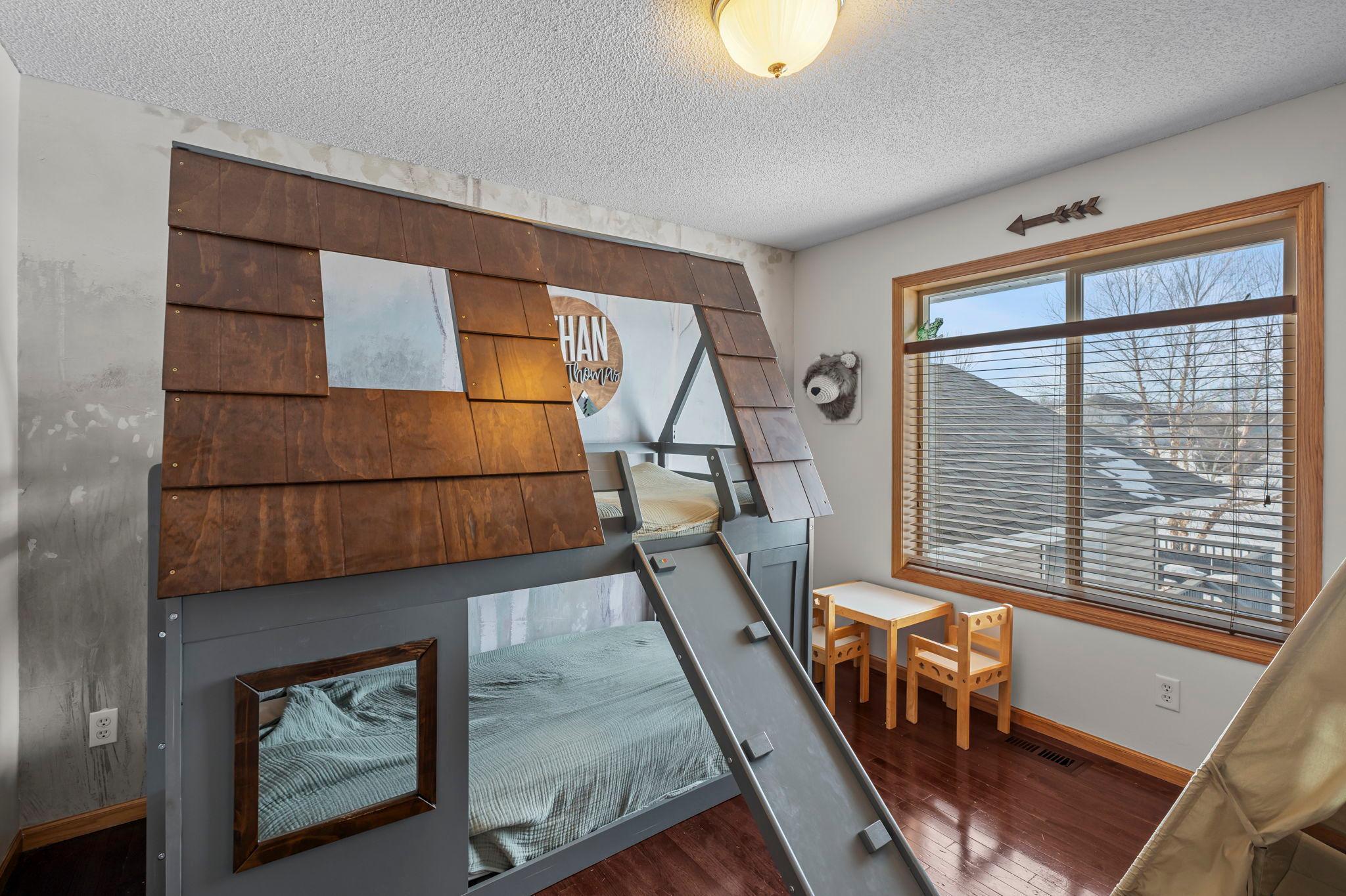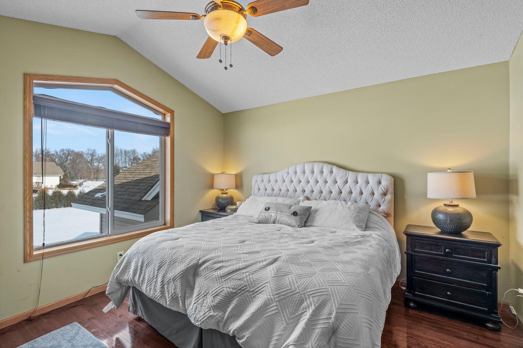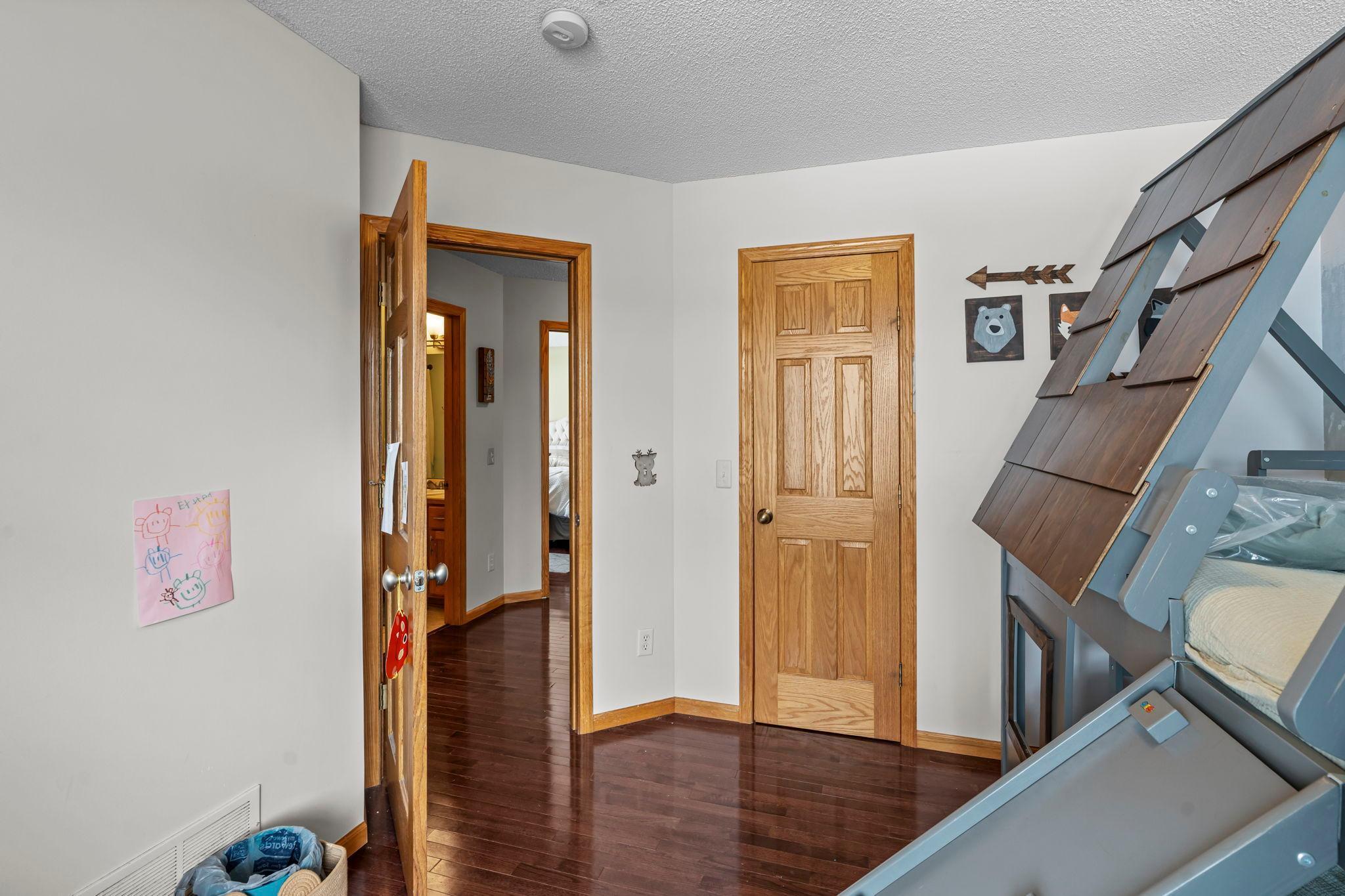 Welcome home to this spacious 5BR/3BA Ham Lake property set on a beautiful 1.12-acre lot with a 3-stall garage. Designed for both entertaining and everyday living, the main level offers a large family room plus a separate living room, complemented by vaulted ceilings and hardwood floors. The kitchen features ample cabinet space, a center island, stainless steel appliances, and a pass-through window to the family room. The adjacent dining room includes French doors that open to the family room and provide walkout access to the deckperfect for indoor-outdoor gatherings. A main-level laundry room and mudroom add everyday convenience. Upstairs, youll find three generously sized bedrooms, including a private primary suite with a walk-in closet and a beautifully updated bath with a walk-in shower. The lower level offers two additional bedrooms, a cozy playroom, and a large storage room. The basement also offers tons of storage space. The furnace and central air are approximately three years old, offering added peace of mind.