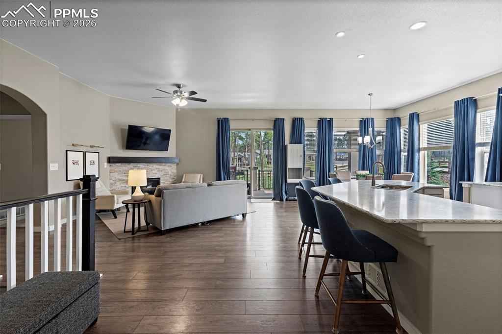What a Beauty! Nestled in one of the most desirable neighborhoods in the Monument area, this stunning ranch-style home with a finished basement offers comfort, space, and effortless living. Step inside to an inviting open floor plan where the kitchen seamlessly flows into the dining and living areasx2014;ideal for entertaining. The large island is perfect for preparing your favorite gourmet meals, and the spacious pantry provides ample storage for all your kitchen essentials. Enjoy cozy evenings by the fireplace in the living room, creating the perfect setting for relaxation. The primary bedroom features a luxurious en-suite with dual sinks, a walk-in shower, and a generous walk-in closet. For added convenience, the laundry room is located on the main level. Head downstairs to a spacious finished basement featuring a stylish bar area and a large open space perfect for hosting game days or movie nights. The lower level includes three additional bedrooms, a full bathroom, and plenty of storage space. Outside, enjoy Coloradox2019;s beautiful weather from your private deckx2014;perfect for morning coffee or evening gatherings. Don't miss your chance to call this gem homex2014;schedule your showing today! This one wonx2019;t last long!