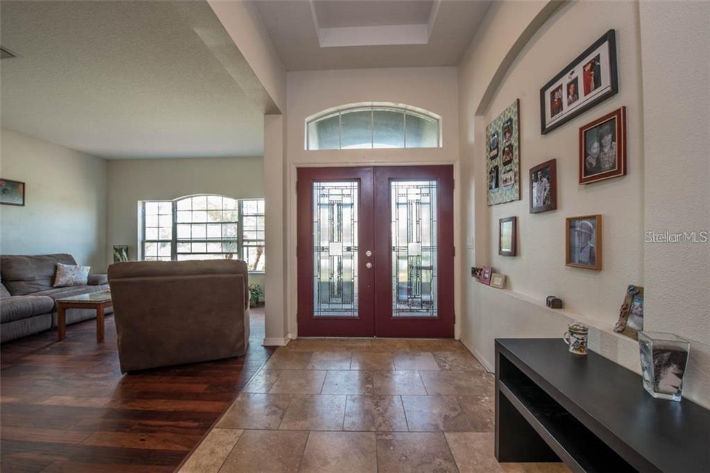 This is a gorgeous 4 bedroom, 3 bathroom, 3 car garage, WATERFRONT home in the GATED community of Mira Lago waiting for its new owners. This home is move in ready and has been recently UPDATED with new floors, fresh interior/exterior paint, and a LARGE, BEAUTIFUL LANAI area that has 60 feet of lakefront on a 65 acre lake. Sunrises in the morning and shade to keep you cool in the afternoon. As you enter the home, there is a large front room and a grand entryway. The living space of the home is open and inviting. This tasteful kitchen features travertine floors, corian counter tops, stainless steel appliances, a closet pantry, breakfast bar, and brand new island with gorgeous granite countertop. There is a dining nook in the kitchen with wainscot walls and updated lighting. All ceiling fans have been replaced within the past year. The laundry room is conveniently off the kitchen and has extra storage. The master bedroom and 4th bedroom both sit at the back of the house with their own private bathrooms. The master bedroom has his and her closets, double sinks, a garden tu, brand new lights, and a separate toilet room. Bedrooms 2 and 3 share a full bathroom. The large, upstairs bonus room can be used as an office, bedroom, man cave, play room, or media room and also has great LAKE VIEWS.The lanai area is HUGE and features an outdoor CUSTOM WOOD BURNING FIREPLACE and gorgeous views of the lake. Enjoy your evening meal here each day. Mira Lago is a well kept, safe, friendly community minutes to Tampa, St. Pete, Manatee County, area beaches, and many other amenities. The community has a heated pool, plenty of lakes/ ponds with fountains, basketball court, and playground. House may also be rented furnished with utilities paid for shorter term. Contact agent for details.