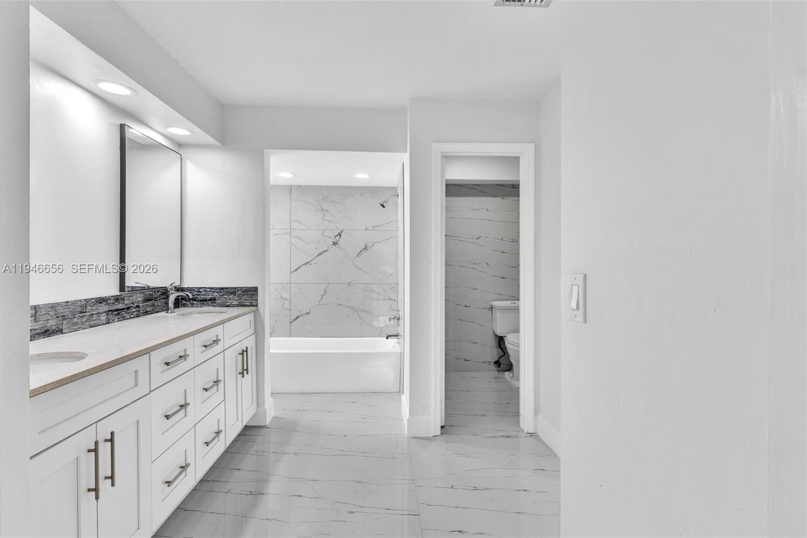 Welcome to The Moors Fully renovated 2-story dream home in gated community! Located near the Palmetto Expressway, this 4BD/3BA home features a spacious loft, new roof (10-year warranty), impact windows, waterproof laminate flooring, renovated bathrooms, The updated kitchen has quartz counters, wood cabinets, stainless steel appliances, and a pass-through to the living area. One bedroom and full bath are on the first floor; remaining bedrooms and loft upstairs. Oversized master with walk-in closet and luxurious bath with tub and shower. Enjoy 24/7 security, low HOA, and resort-style amenities: clubhouse, gym, guesthouse, and lake great for fishing. Covered patio and pool-sized yard.