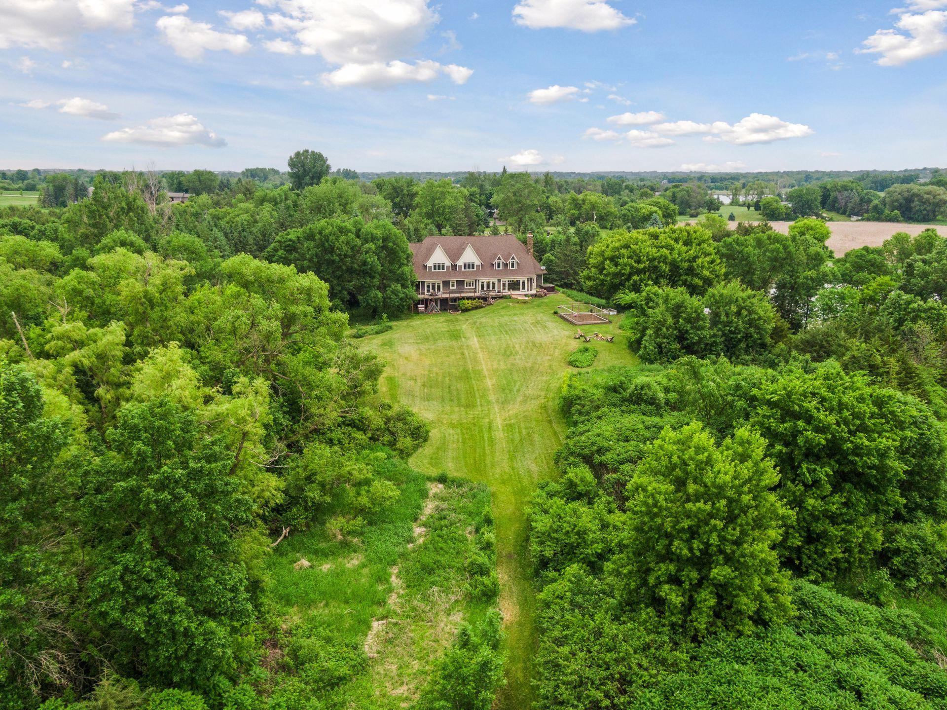 Elegance meets tranquility on Whaletail Lake, a fully recreational and excellent fishing lake just west of Lake Minnetonka. Set on nearly 9 picturesque acres with more than 225 feet of private lakefront, this secluded oasis is thoughtfully positioned to capture stunning views from every room. This exquisite French country-style residence was designed by the award-winning Mike Sharratt and seamlessly blends timeless architecture with modern comfort. The open-concept floor plan is both functional and inviting, featuring a vaulted great room with a beautiful wood-burning floor-to-ceiling two-story stone fireplace. The gourmet chefs kitchen has a butlers pantry, state-of the-art oven, spacious center island, beautiful stone countertops and stylish walnut accents. The main-floor primary suite offers a peaceful retreat, complete with serene lake views and walk right out to your wrap around porch. The main-floor also provides a flexible multi-use room perfect for your home office and convenient mudroom off the garage with custom built-ins. The second level presents you with 3 more bedrooms, a princess balcony loft and home theatre room that could serve as many other spaces. The walk-out lower level is ready for your vision and gives you fantastic storage space. Outdoors - enjoy magical green spaces, groomed walking paths and unmatched privacyall just 23 miles to Mpls, minutes from the shopping/dining of Mound and with nearby access to the scenic Dakota Regional Trail. You will also love the abundant wildlife that passes through and your own mini orchard complete with apple, pear and tart cherry trees. This one-of-a-kind lakeside estate is the perfect combination of refined living and natural beauty. You truly wont find another property like this so close to the twin cities. Come to your happy place and spend your time hunting, fishing, gardening and hobby- farming.