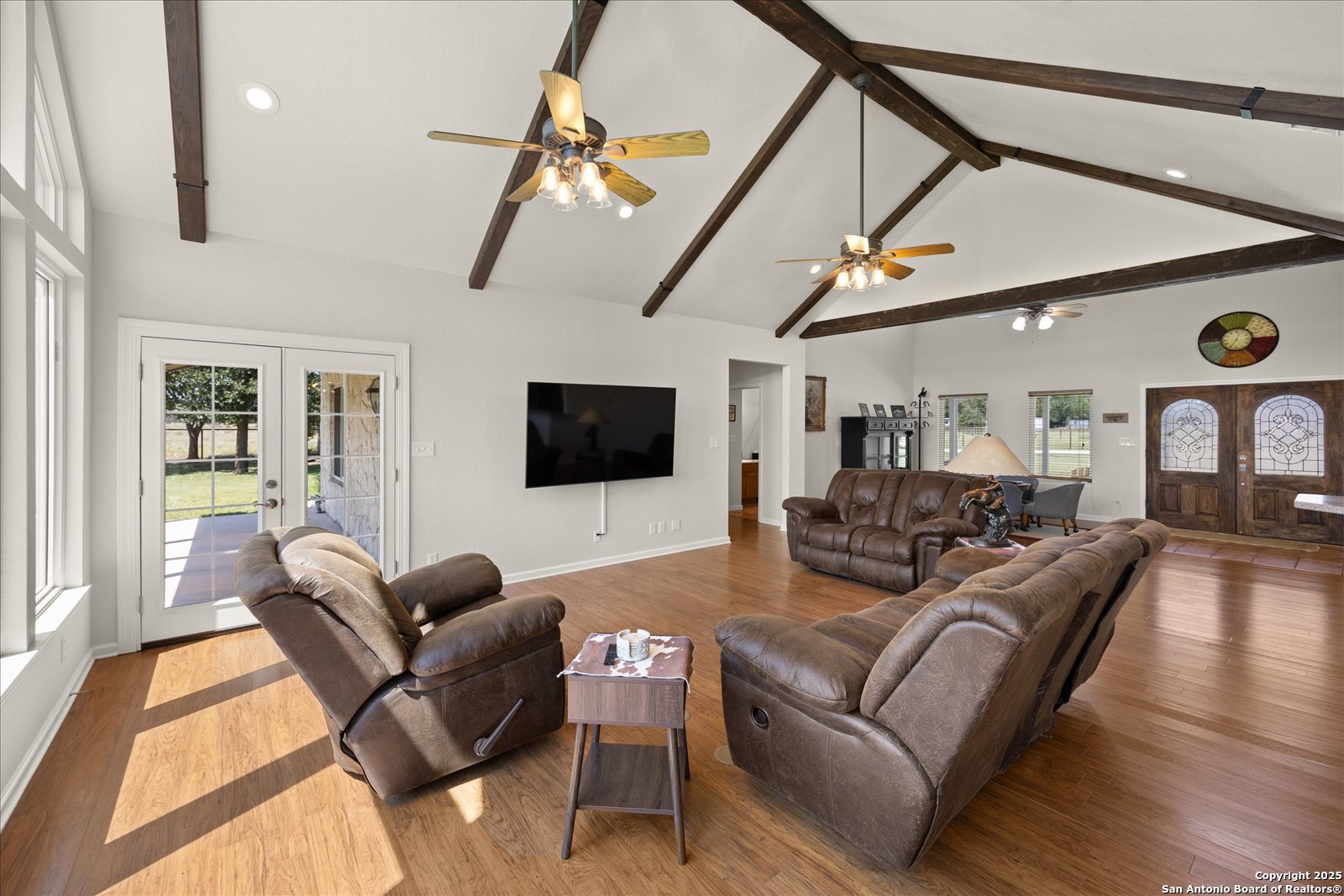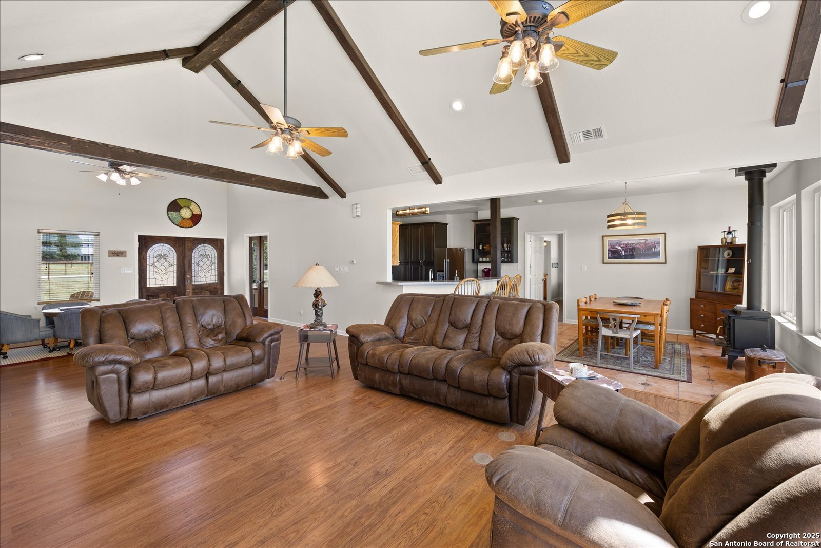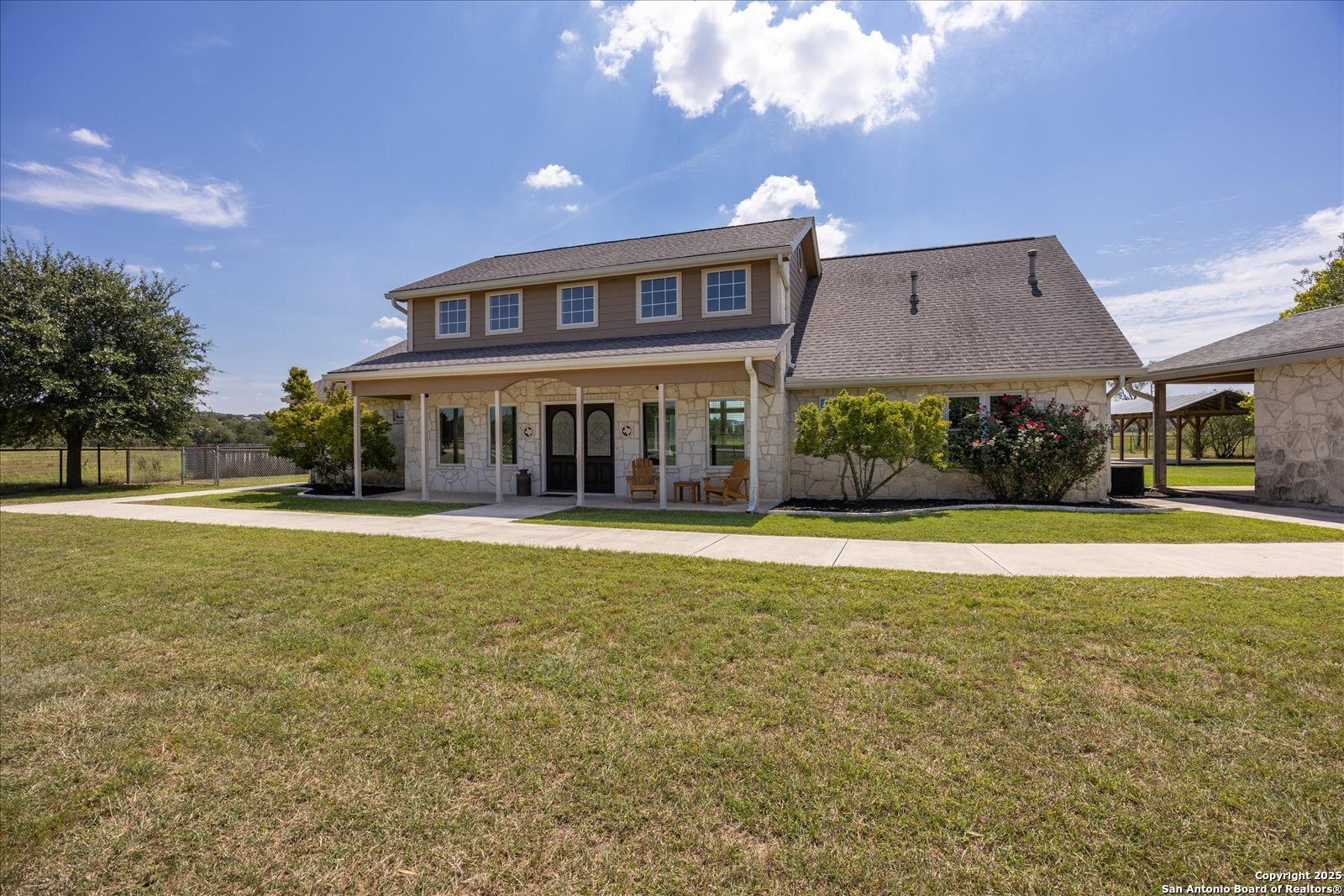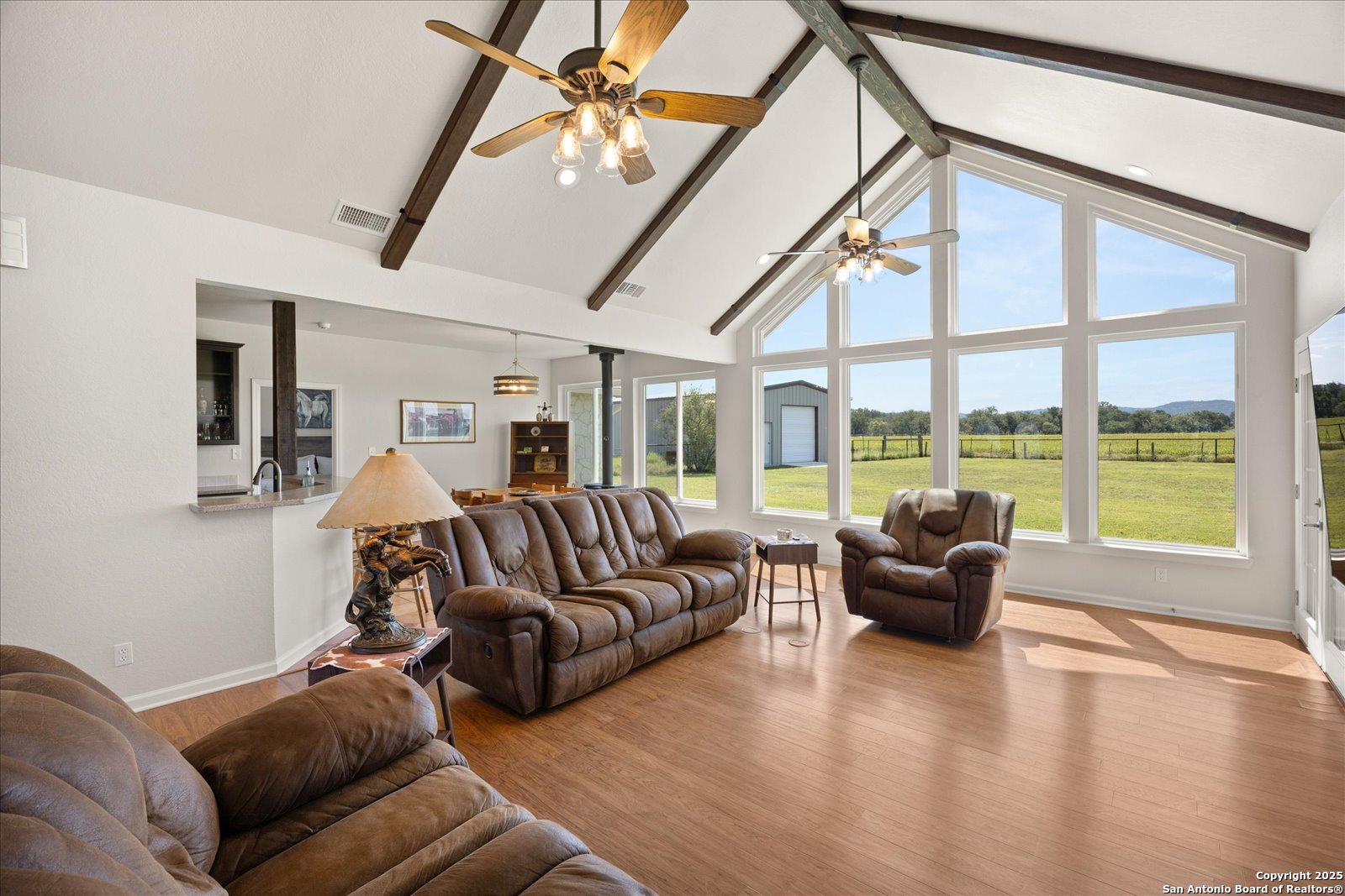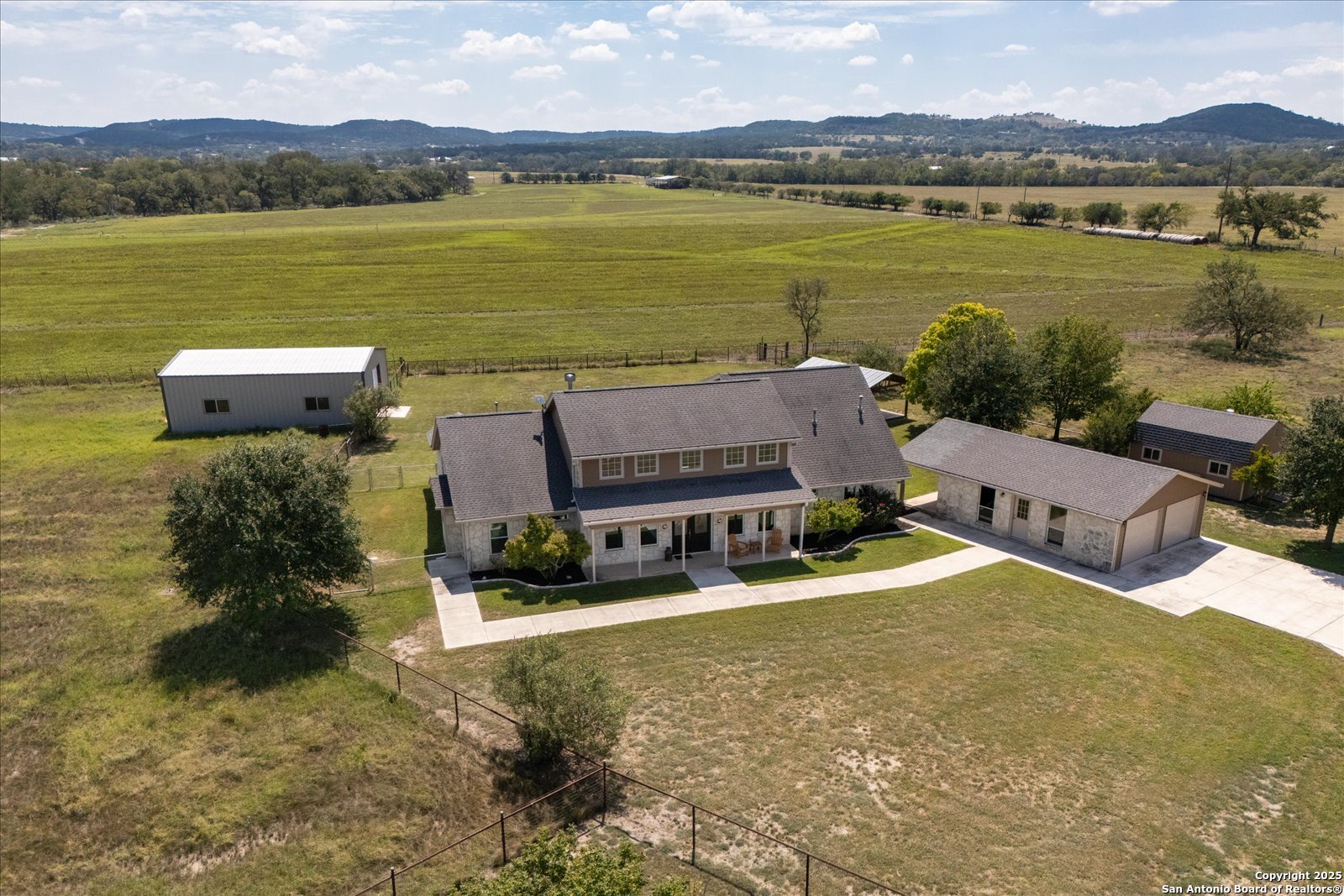 This beautifully updated and privately gated 4/3/2 + office + workshop combines modern comforts with Texas Hill Country charm. Set on a serene property with beautiful views and front landscaping, it offers both convenience and tranquility on 5 Acres. . Horses and cattle permitted. No HOA. 2024 and 2025 improvements include new carpet, kitchen oven, custom Lowe s kitchen cabinets with updated hardware, all-new LED lighting, refreshed bathrooms with new fixtures, and toilets. The home features fresh interior and exterior paint, all-new windows (except five accent windows), French doors to the office and patio, and a refrigerator water line for added ease. Open floor plan with wood beams and large scenic windows in the main living and kitchen area. Main bedroom and main bathroom offer walk-in closets (1 Each) for additional storage and closet space. Outdoors, you ll find a 30 x 40 workshop with garage doors, a metal horse shelter (pole barn), pasture fencing, and an upgraded well house with insulation and siding, and a pressure tank filtration system. The property also has an extended garage gutter/downspout and a front gate mechanism. Backyard includes a pergola for a BBQ area and for outdoor entertaining with electricity. Enjoy the best of country living with the benefit of a possible Ag Exemption, while being just minutes from downtown Comfort and two local wineries. Upgrades were done in 2024-2025. Survey & FEMA Map shows this property is not in a flood zone and it has not been affected by the floods. With its thoughtful upgrades, spacious floor plan, and a Texas Hill Country setting, this home is move-in ready and truly one of a kind. Seller will consider owner financing.