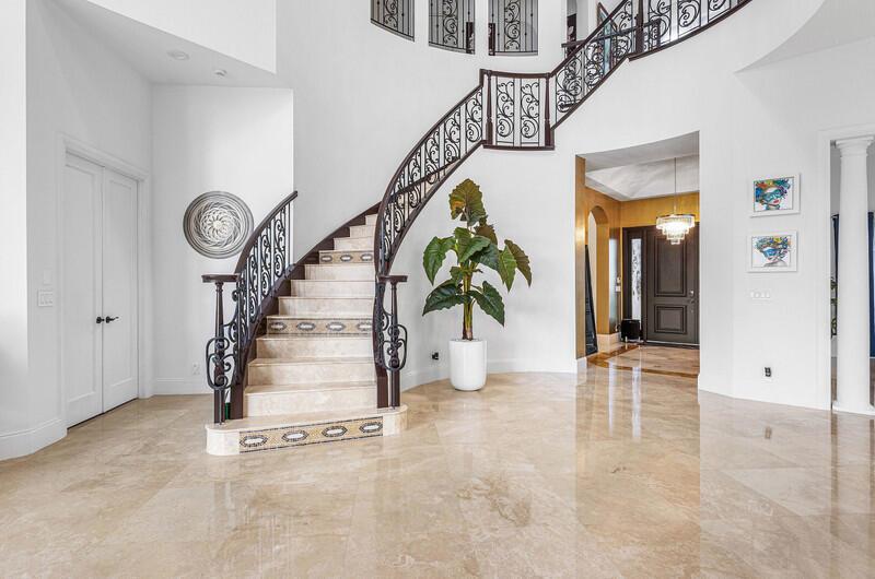 Located within the prestigious gates of The Oaks, this exceptional lakefront estate offers elegant living with breathtaking western water views. A dramatic entry opens to expansive living spaces with soaring ceilings and floor-to-ceiling windows. The formal dining room, private courtyard, and custom bar create an ideal setting for entertaining. The chef's kitchen features premium appliances, abundant cabinetry, and a large island, flowing seamlessly into the family room and casual dining area. Outdoor living is highlighted by a covered patio and resort-style pool overlooking the lake and stunning sunsets. The upstairs primary suite offers a sitting area, oversized closet, spa bath, and private balcony. All guest rooms are en-suite, with added spaces including an office game room tennis
