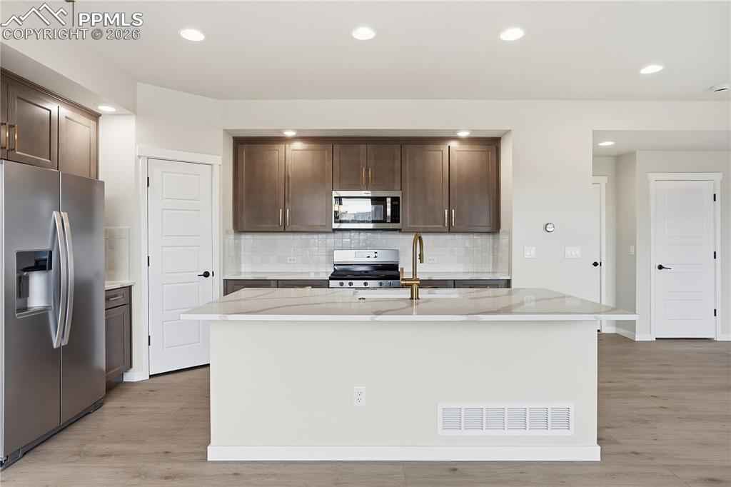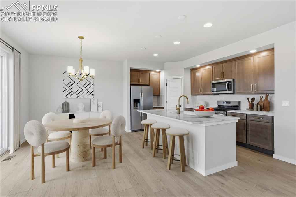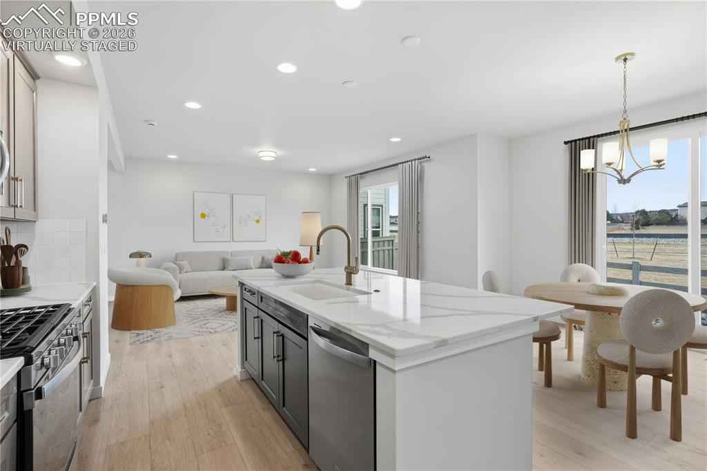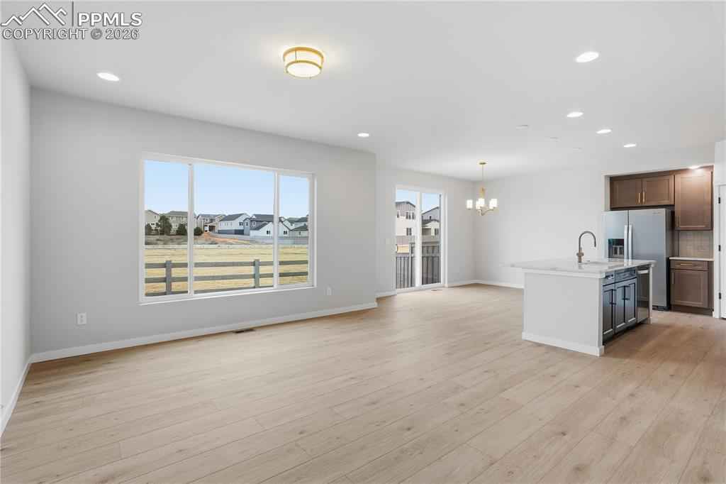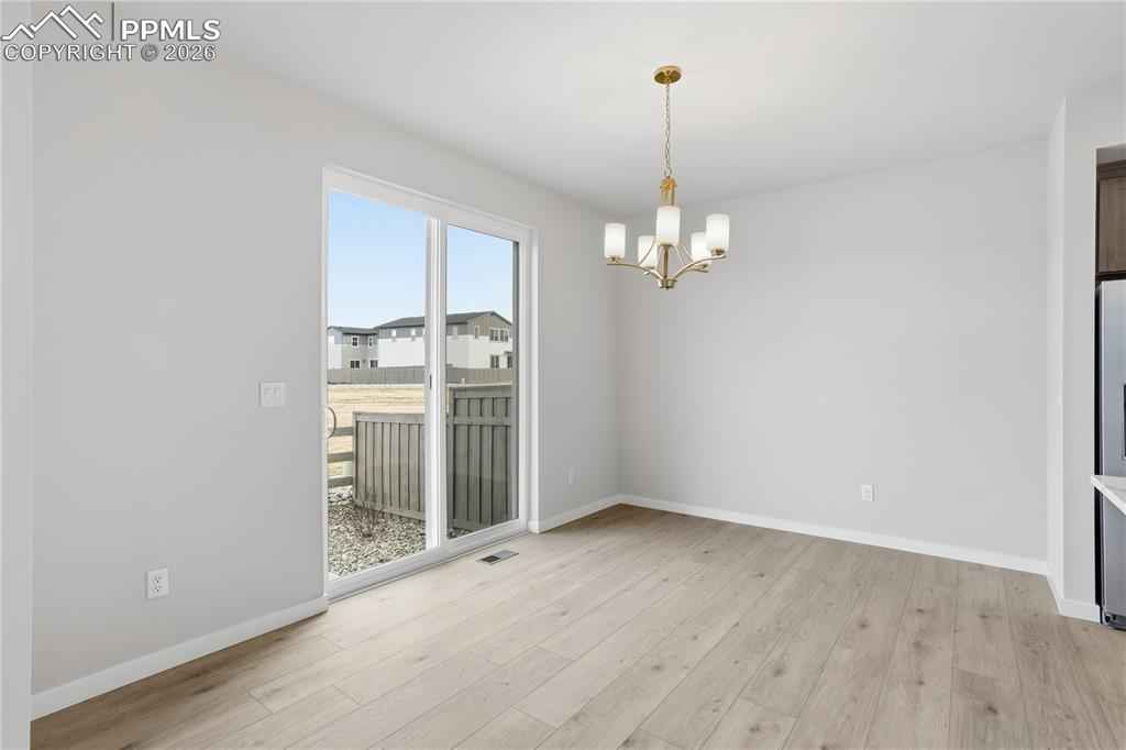 Ready now! Hillside 2-story plan with 2 car garage in the new Monument Junction Cadence Collection neighborhood. 3 bedroom, 2.5 bath home. Farmhouse style exterior. This home is one side of a duplex. Kitchen features maple cabinets in a pecan stain, elegant Terra Sol Quartz countertops, island, pantry, and stainless steel appliances including gas range and refrigerator. Off of the great room there is an under-stairs storage closet and separate coat closet. The rear patio is conveniently accessed through sliding glass doors off of the dining room. The upper level primary bath showcases a shower with seat, double sinks, and walk-in closet. The primary bedroom is separated from the additional 2 bedrooms creating a quiet, serene space. The upper level also hosts a loft and a laundry room. Home comes equipped with air conditioning, radon mitigation system and smart home package. Home is located in a covenant protected community. Seller incentives available.