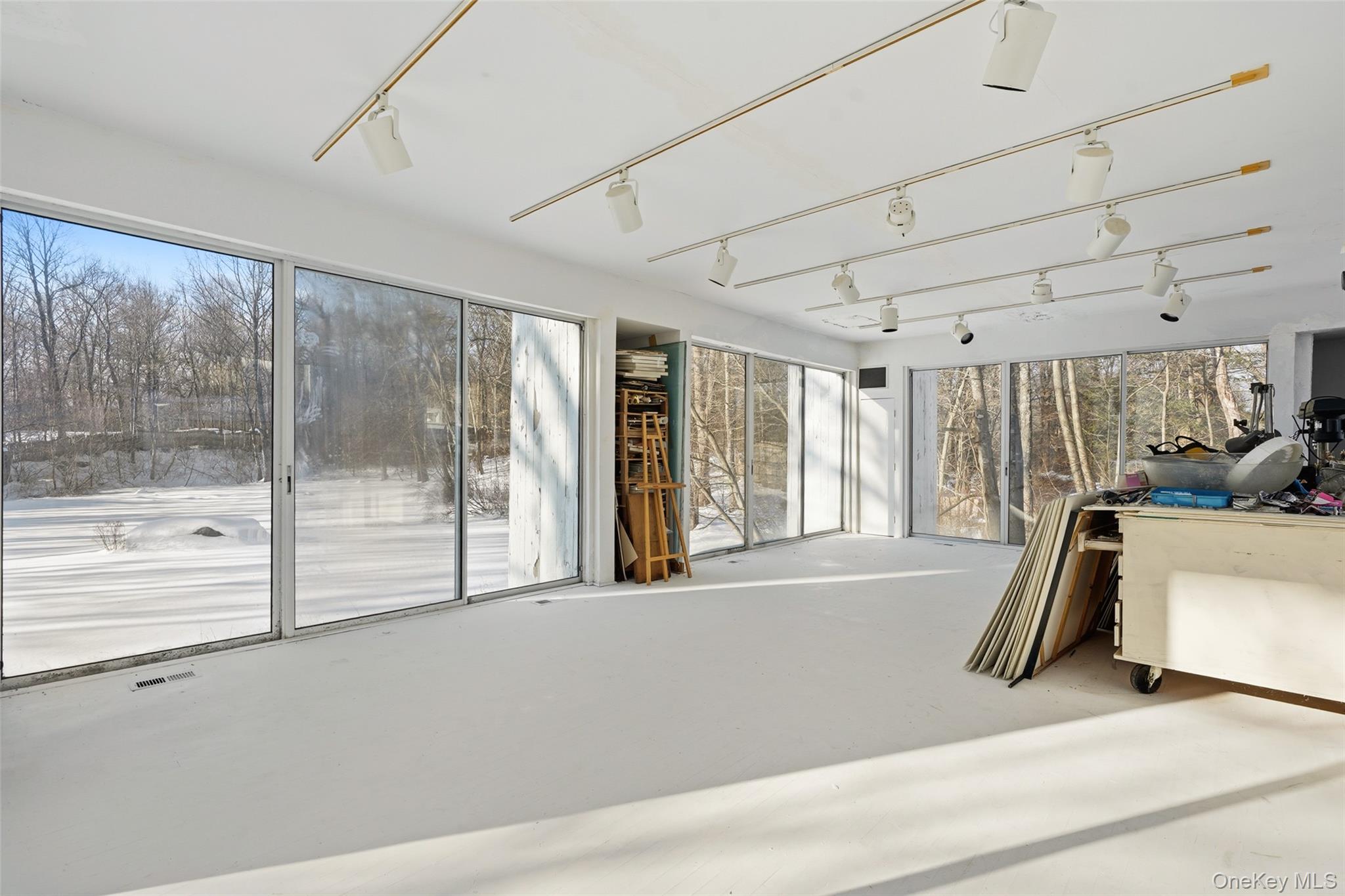 Peaceful Waterfront Retreat. A private oasis overlooking a spring-fed pond. Artist-designed and custom built Modern with sun-filled rooms and walls of glass to capture natural light and views. Beautifully proportioned rooms with high ceilings and wonderful open floorplan. Designed for entertaining, dramatic Living Room with fireplace and spectacular water views. Dining Room with views of glass-enclosed Moon Room perfect for stargazing. Three Bedrooms including a private Primary Suite. Spiral stairs to roof top Solarium and Greenhouse. Lower Level with incredible Studio with four walls of windows the ultimate space for artists, writers or yoga enthusiasts. Over two, fenced acres with a number of fine trees and shrubs. A gardeners Eden with grape arbor, rock gardens and potting shed. Rear terrace with heated lap pool with an incredible water view. Pond-side bridge to woodland walking trails and private tea house. A magical setting and a remarkable offering!