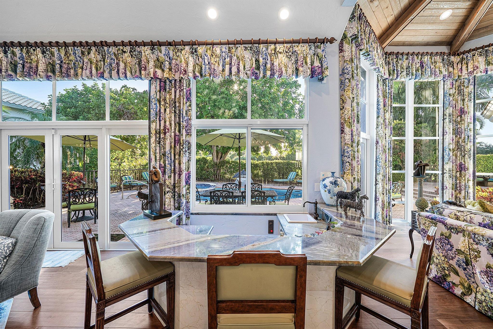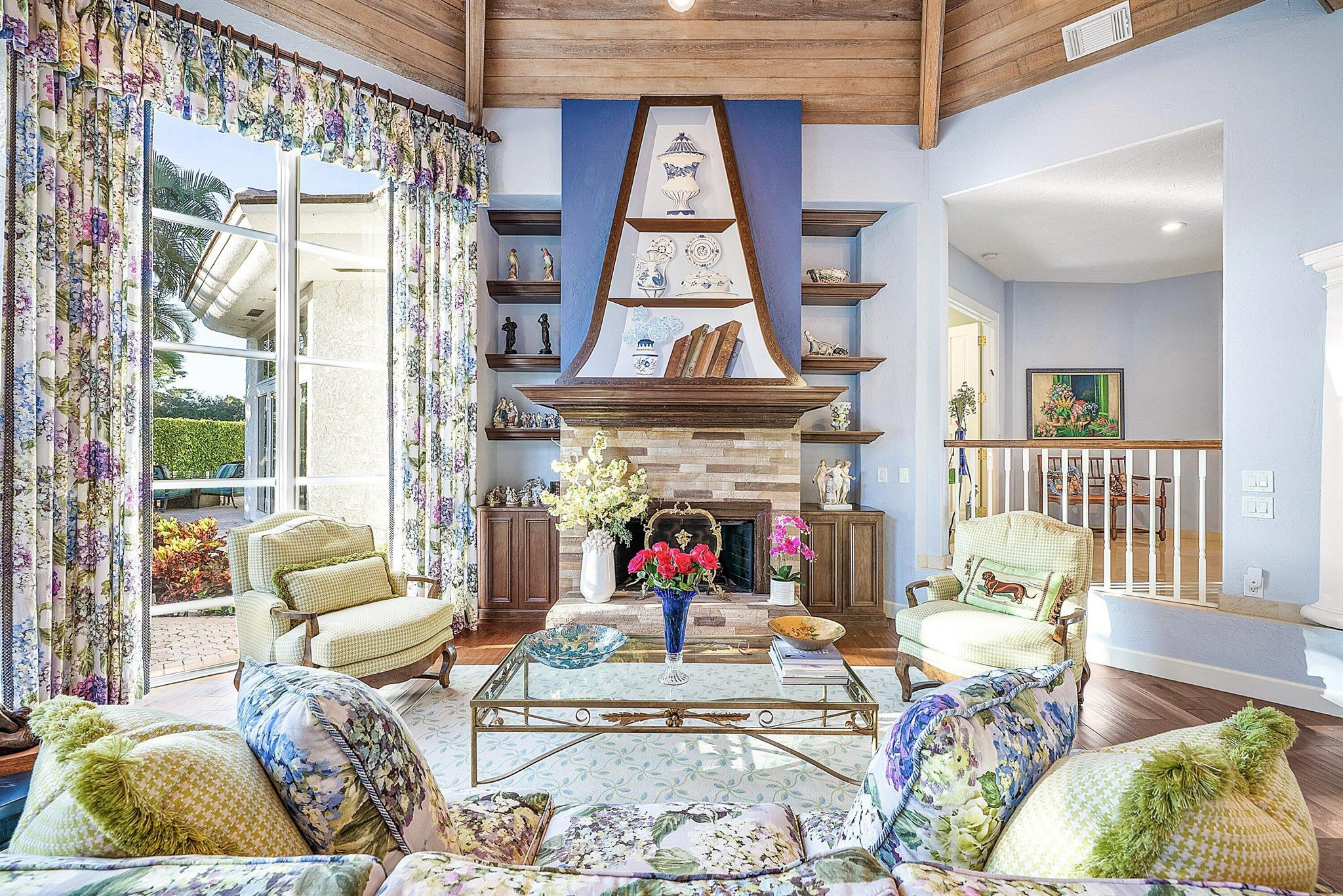 Enjoy spectacular sunsets from this award-winning residence built by renowned Monogram Building and Design.This exceptional home showcases outstanding architecture, classic charm, and a grand octagonal column that leads into beautifully proportioned living spaces. The home features 3 bedrooms plus an office with double entry doors and a richly paneled library. All bedrooms include generous walk-in closets.The open, airy floor plan is ideal for both everyday living and entertaining, offering fabulous golf views, two fireplaces, marble floors, a granite kitchen, and a brand-new roof (2024). Windows have been replaced, and the home includes a two-car garage plus a golf cart garage, along with a circular driveway.