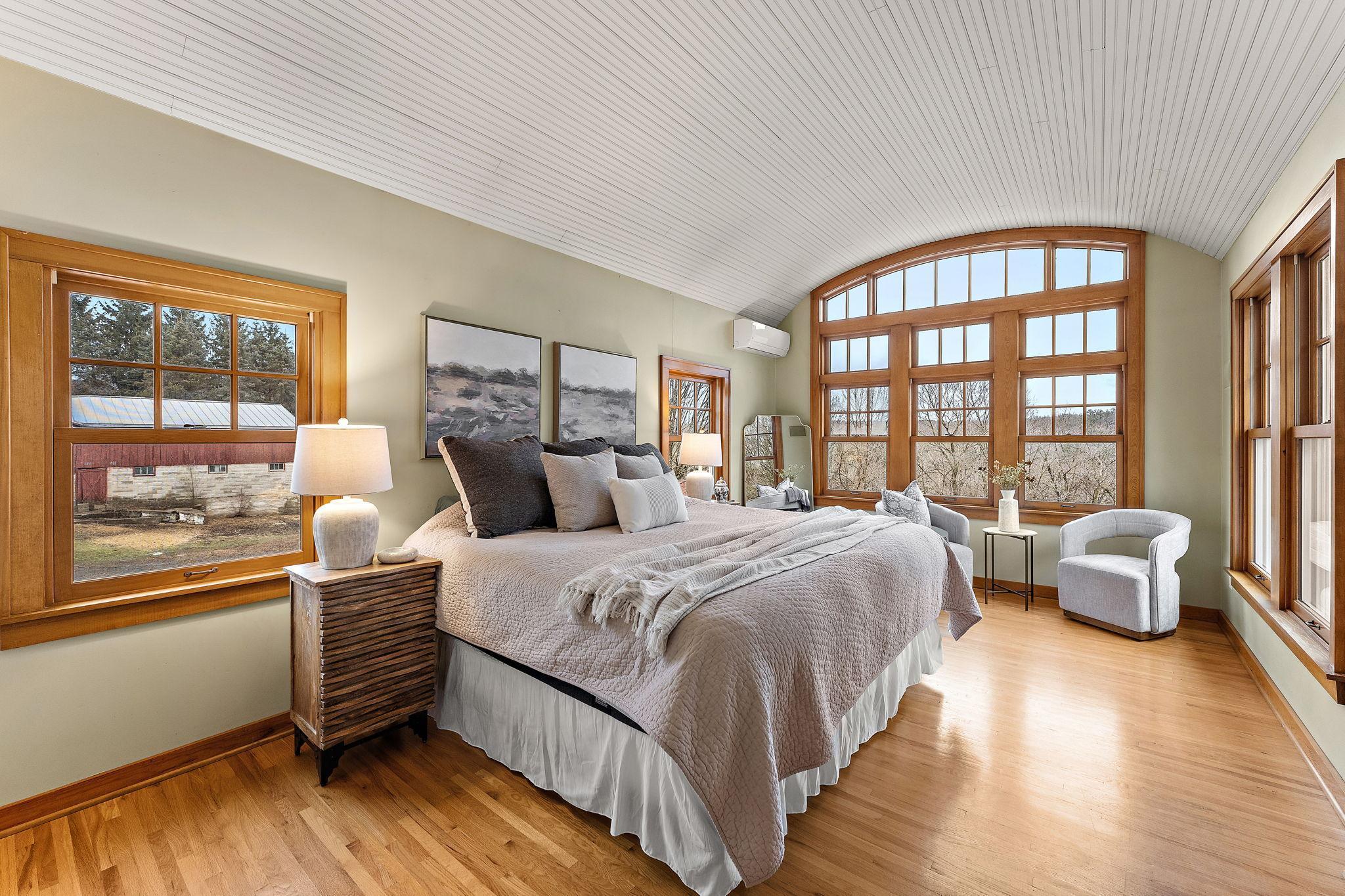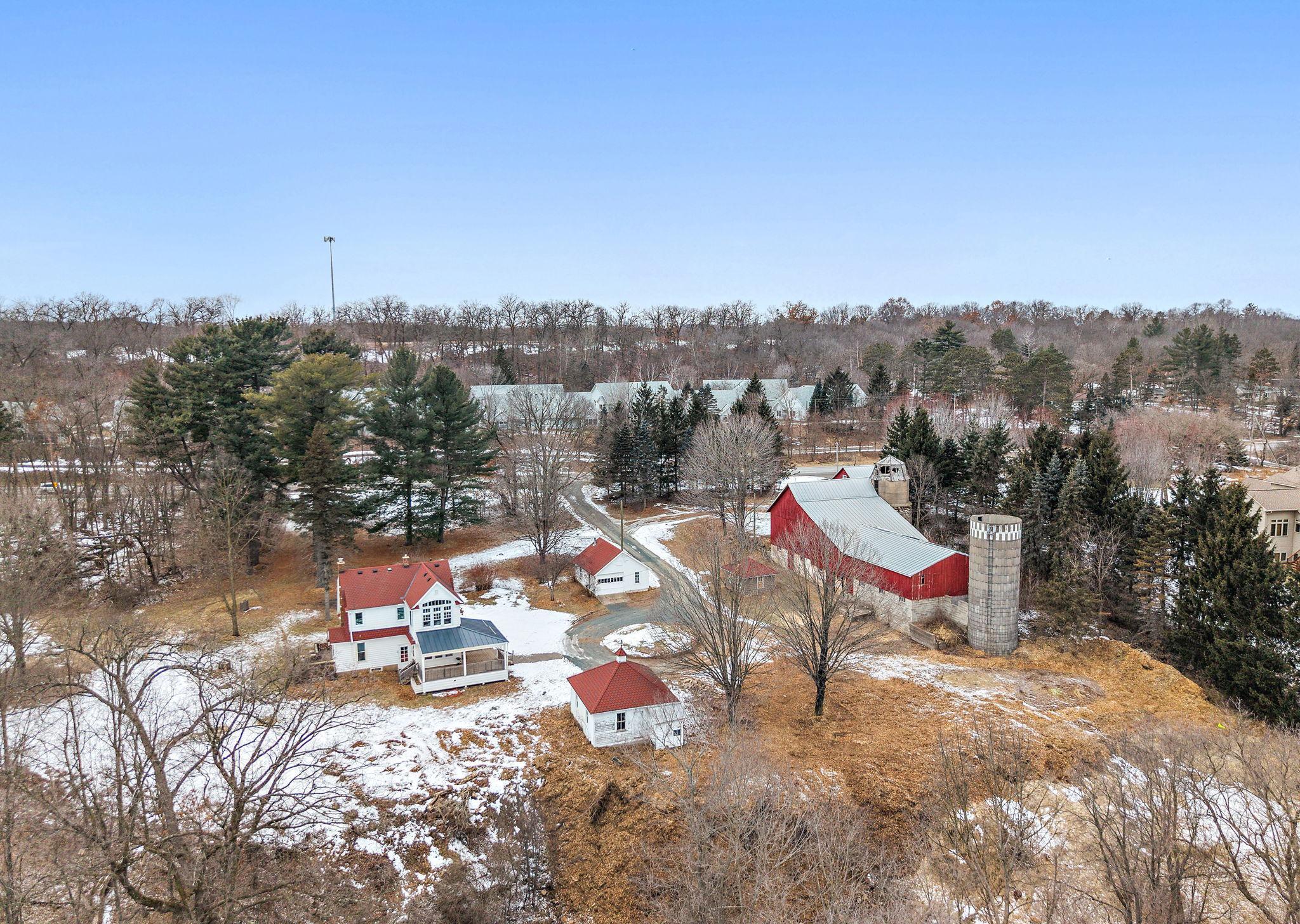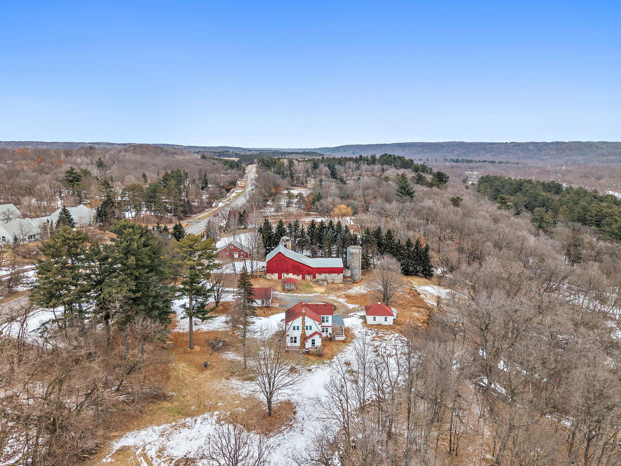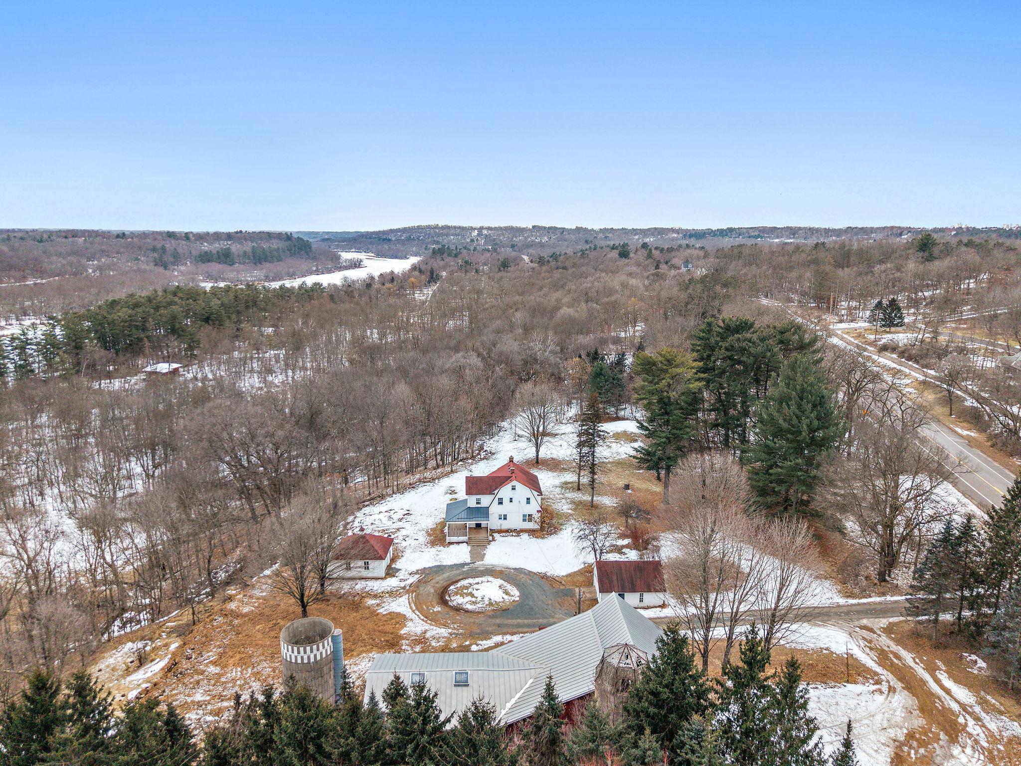 Historic hobby farm set on 6 scenic acres along the beautiful St. Croix River Valley (with river easement access) in the charming village of Marine on St. Croix. Properties like this are increasingly rare preserved character, usable acreage, and thoughtfully updated spaces just minutes from the Twin Cities.Original architectural details remain intact while blending seamlessly with modern function. The showstopping primary bedroom captures breathtaking sunrise views over the river valley, a daily reminder of the propertys extraordinary setting.The professionally restored historic barn (approximately 87x33.5) offers exceptional versatility; ideal for gatherings, creative space, small performances, or simply enjoying peaceful mornings overlooking the valley. Two silos, additional outbuildings, and a 42.5x22.5 machine shed enhance the property's hobby farm appeal.A standout feature is the recently modernized detached shop, upgraded with significant electrical improvements, insulation, heating and climate control, perfect for gardening, remote work, studio use, or year-round projects.Wooded acreage, expansive lawn, and walking trails with river access create a private retreat atmosphere, all within the Stillwater School District.Recent updates include newer windows, septic system (2019), porch improvements, and shop modernization.A rare opportunity to own historic tranquility with modern flexibility in one of the St. Croix Valleys most beloved communities.