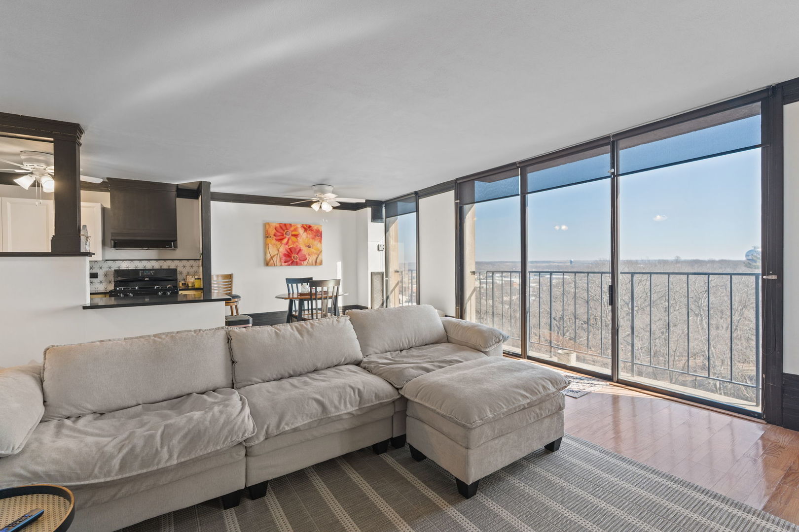 Move in ready 1 bed, 1 bath condo that has been beautifully updated. A unique kitchen with breakfast bar eating area that has solid surface countertops and the appliances stay! There is floor to ceiling windows and sliding doors that allow for lots of natural light and gorgeous sunsets. *photos with views is from the seller* It is an open floor plan with wood floors and crown molding. The HOA has elevators, pool, common library, pool table, grills, deck, sauna, fitness room, secured building, HOA covers water, gas, furnace and central air. The laundry facility is only feet from your door and there is one on each floor. Your costs would be mid-american for electricity and cable/internet. 2 cats allowed, no dogs. Close by is the Rust Belt, The Bend, Short Hills country club and many dining options and be close to East Moline festivities in Runners Park! Heated garage space is available for an additional 60/mo. Don't dely in setting up your showing, this is a great space and cheaper than rent!!