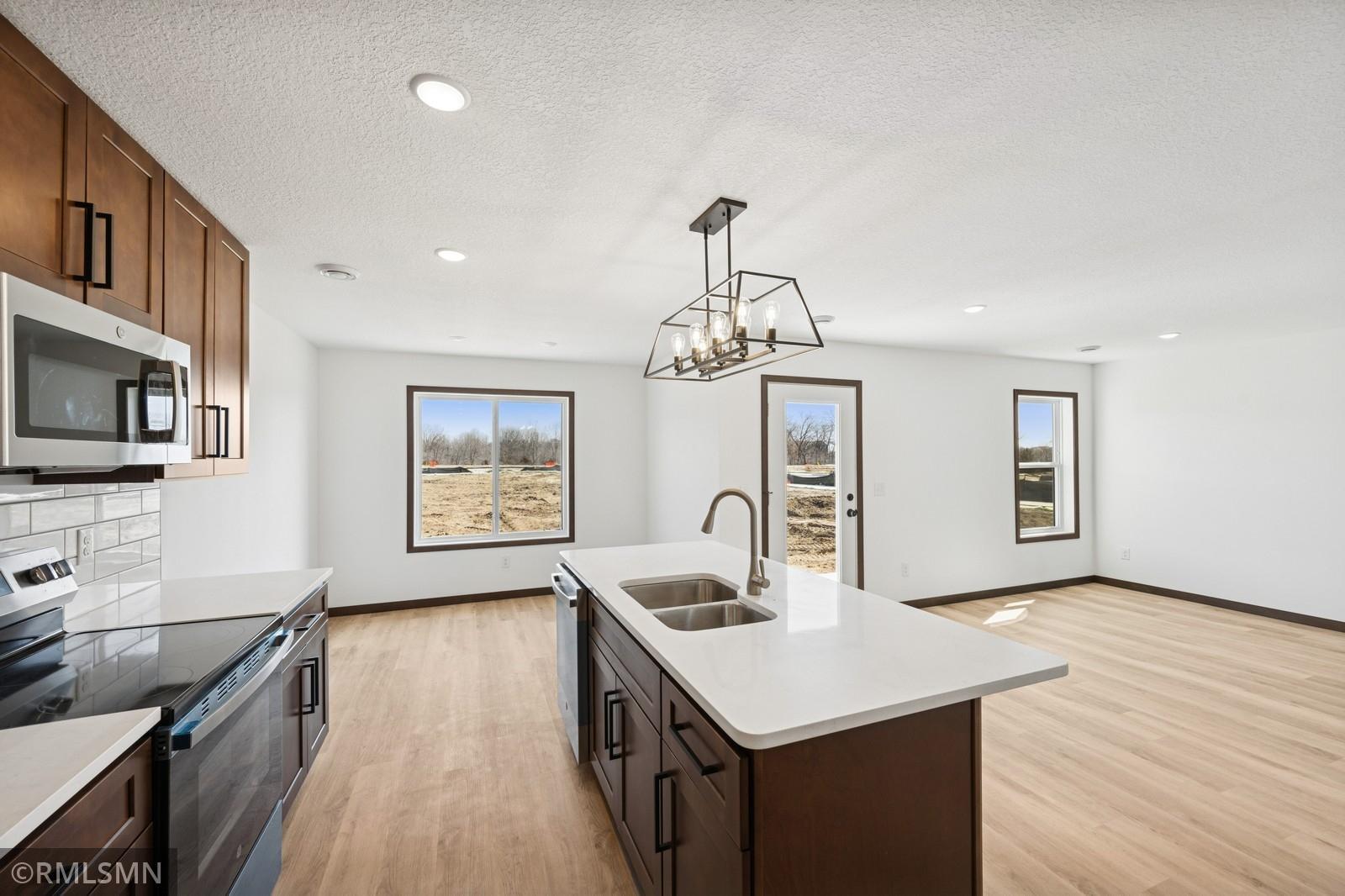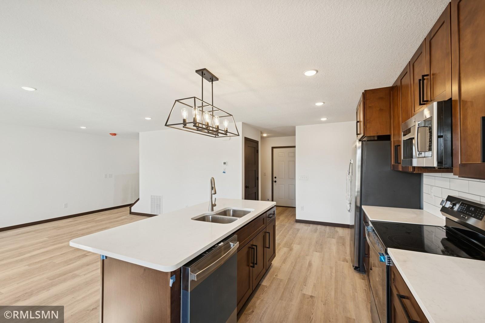 Welcome to a masterpiece of modern living in this breathtaking twin-style townhome, where affordability meets exceptional quality. Bathed in natural light, this residence combines elegance, comfort, and practicality to create your ideal home. The upper level features three spacious bedrooms, including an extraordinarily large master bedroom that serves as a luxurious sanctuary, paired with a conveniently located laundry room for effortless living. Luxurious African sapele millwork and doors grace the entire home, showcasing rich, warm tones and impeccable craftsmanship that elevate every space.The main level captivates with an open-concept design, fostering a bright and inviting atmosphere perfect for hosting gatherings or savoring quiet moments. The gourmet kitchen is a chefs delight, featuring abundant cabinetry, a stylish center island for effortless meal prep or casual dining, and a cozy breakfast nook. Personalize your space by selecting appliances that reflect your unique taste.Sleek, durable LVT flooring flows throughout the main level, while plush carpeting upstairs envelops you in warmth and comfort. Thoughtful upgrades elevate your lifestyle, including a chic lighting package, a private concrete patio for relaxing or entertaining outdoors, and an insulated garage with a remote opener for ultimate convenience and security.This townhome delivers unparalleled value in the metro area, complete with a robust two-year builder warranty for worry-free ownership. With attractive financing options, your dream home is within reach. Dont miss the chance to make this extraordinary townhome yoursschedule a tour today!