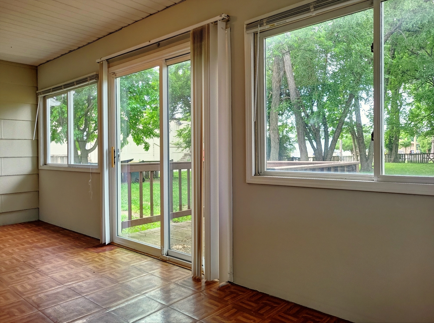 This charming brick ranch offers a comfortable and spacious layout with a mix of original character and modern updates. Inside, you'll find three bedrooms, one full bath, and a convenient half bath, all thoughtfully arranged on a single level. The bright living room features a large front-facing window that brings in plenty of natural light. The kitchen has a functional U-shaped layout with ample counter space, durable wood-style flooring, and a complete appliance package in black for a cohesive look. A second living area at the rear of the home includes a beautiful stone fireplace, beamed ceiling detail, and sliding glass doors that lead into a sunroom overlooking the backyard. The oversized, fenced yard offers shade, green space, and a fire pit area-ideal for relaxing or entertaining. A detached two-car garage provides off-alley access and additional storage. Additional highlights include neutral paint throughout, a separate laundry area, central air conditioning, and a blend of carpeted and hard-surface flooring. Whether you're looking to move right in or personalize it over time, this home offers solid potential inside and out.