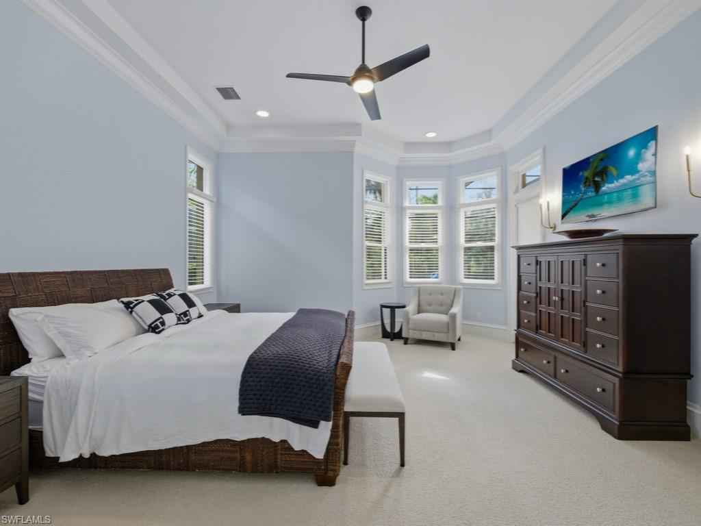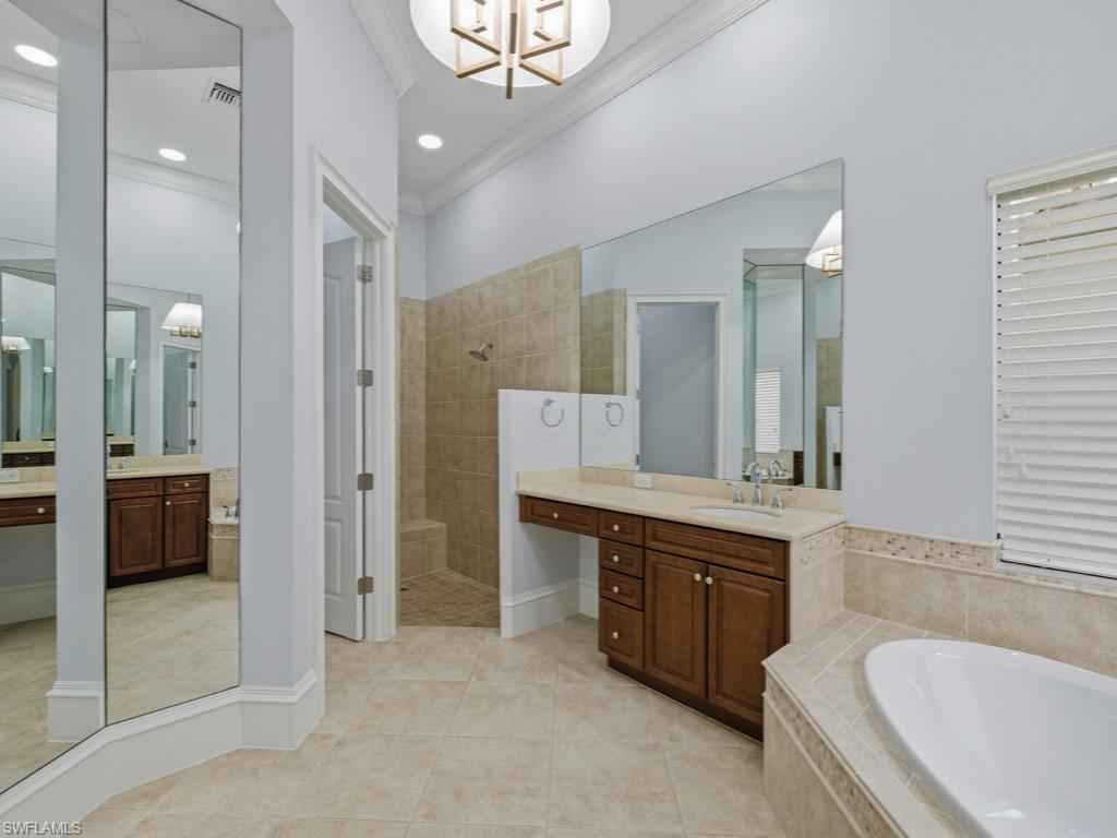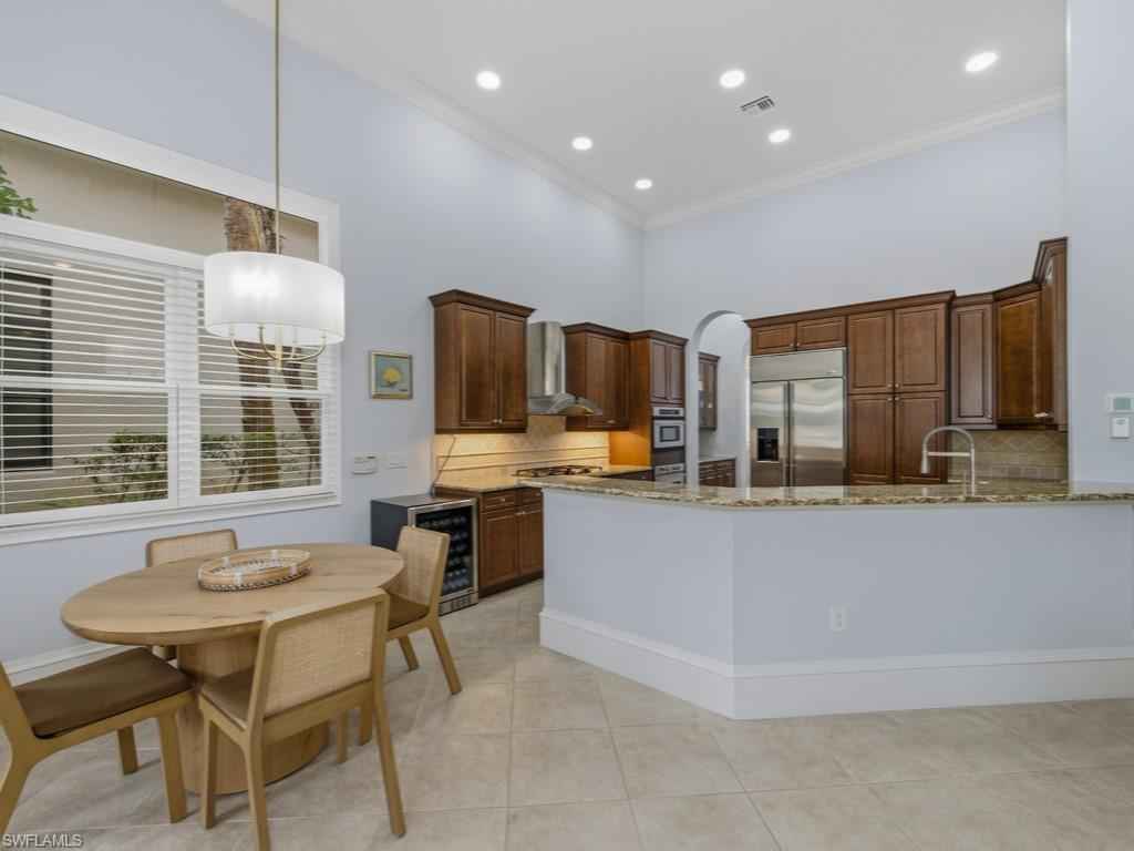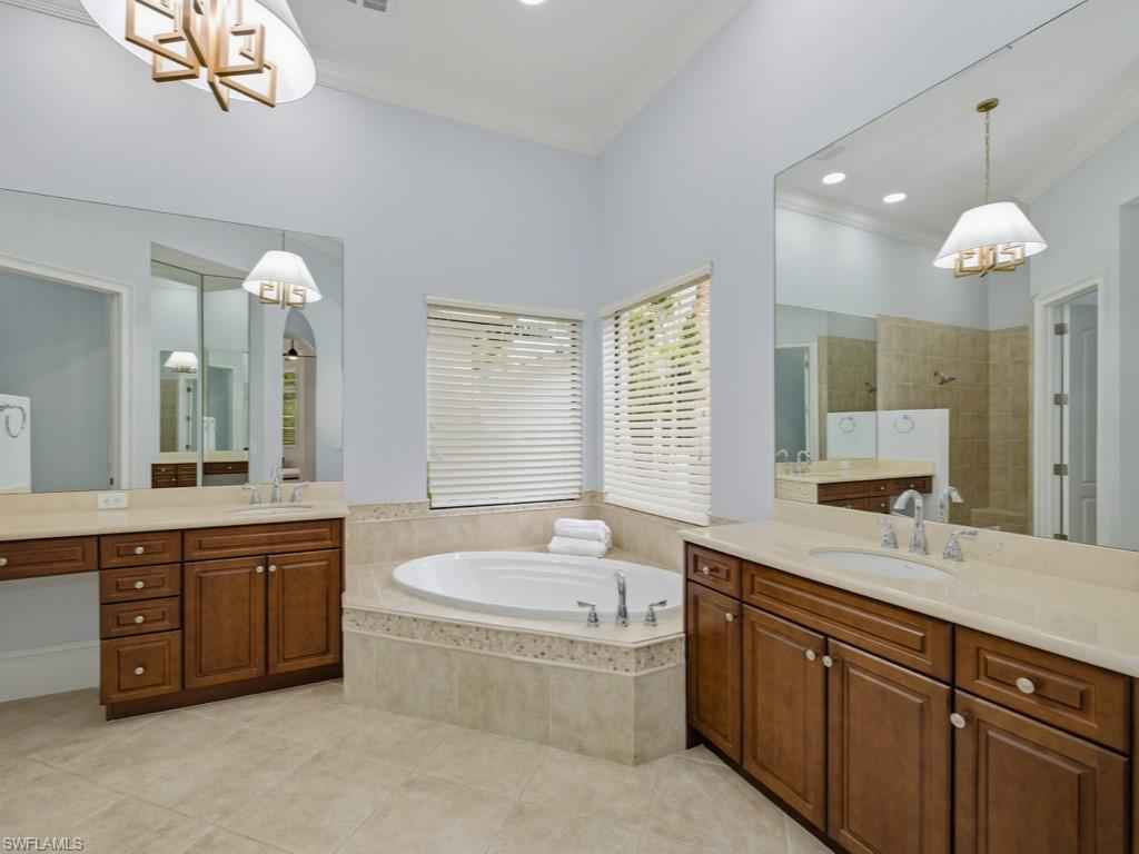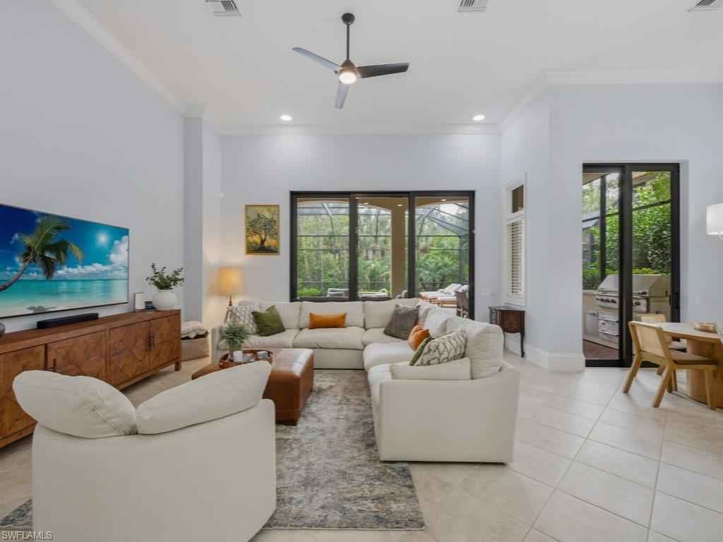Located in the renowned Mediterra golf & beach club community of Naples, Fl. A striking single-story residence offering refined scale, architectural grandeur, and an effortless indoor-outdoor lifestyle. From the moment you enter, the home exudes openness and sophistication, with soaring volume ceilings, graceful archways, and expansive sightlines that create an immediate sense of presence and light. Designed for both elegant entertaining and everyday comfort, the interior features formal living and dining spaces, along with a generously proportioned family room anchored by tray ceilings and walls of glass. Large-format windows and stacking sliders invite natural light throughout and open seamlessly to the screened lanai, blurring the line between interior living and the serene preserve backdrop beyond. The gourmet kitchen is thoughtfully appointed with stainless steel appliances, a natural gas cooktop, double ovens, abundant cabinetry, granite countertops, a built-in bar area, and a sunlit breakfast nook overlooking the outdoor living spacex2014;perfectly positioned for both casual mornings and refined gatherings. Privately situated, the primary suite serves as a true retreat, featuring a spacious bedroom with a sitting area, dual walk-in closets, and a spa-inspired bath with dual vanities, a soaking tub, and a walk-in shower. Two guest suites provide comfort and privacy for visitors, while a dedicated den or home office adds flexibility for modern living. Outdoor living is elevated with a covered loggia, fully equipped outdoor kitchen, and a screened pool and spillover spax2014;creating an inviting setting for entertaining or unwinding amid lush tropical preserve views. Additional highlights include diagonal tile flooring with decorative mosaic accents, crown moldings, vaulted and tray ceilings, a well-appointed laundry room, and an attached three-car garage with excellent storage. A residence that delivers scale, refinement, and a true sense of arrivalx2014;crafted for those who appreciate architectural presence and elevated Florida living. Mediterra is a prestigious luxury golf & beach club community featuring two championship Tom Fazio golf courses for avid golfers, a private beach club with a restaurant & bar, multiple tennis courts, pickleball & bocce, a fitness center, pristine bike & jogging trails, and luxurious dining at the private country club restaurant. The Mediterra Beach Club offers an escape to a 10,000 sq. ft two-story private oceanfront paradise on the Gulf of Mexico. Featuring a restaurant & bar that serves members via indoor & outdoor dining, this private facility boasts a heated swimming pool, a sundeck, and cabana beach service for chairs, umbrellas & refreshments.