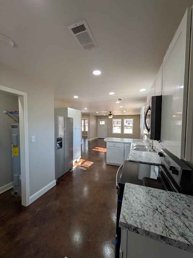 NEW CONSTRUCTION. 3 bedrooms and 2 full bathrooms with an open living/dining & kitchen area. Adorable covered front porch and back patio. Call today to schedule your showing. Home is ready. All Information is deemed reliable but is not guaranteed by the Listing Brokerage, Broker, or Seller. Survey is in the documents. Agents see private remarks.