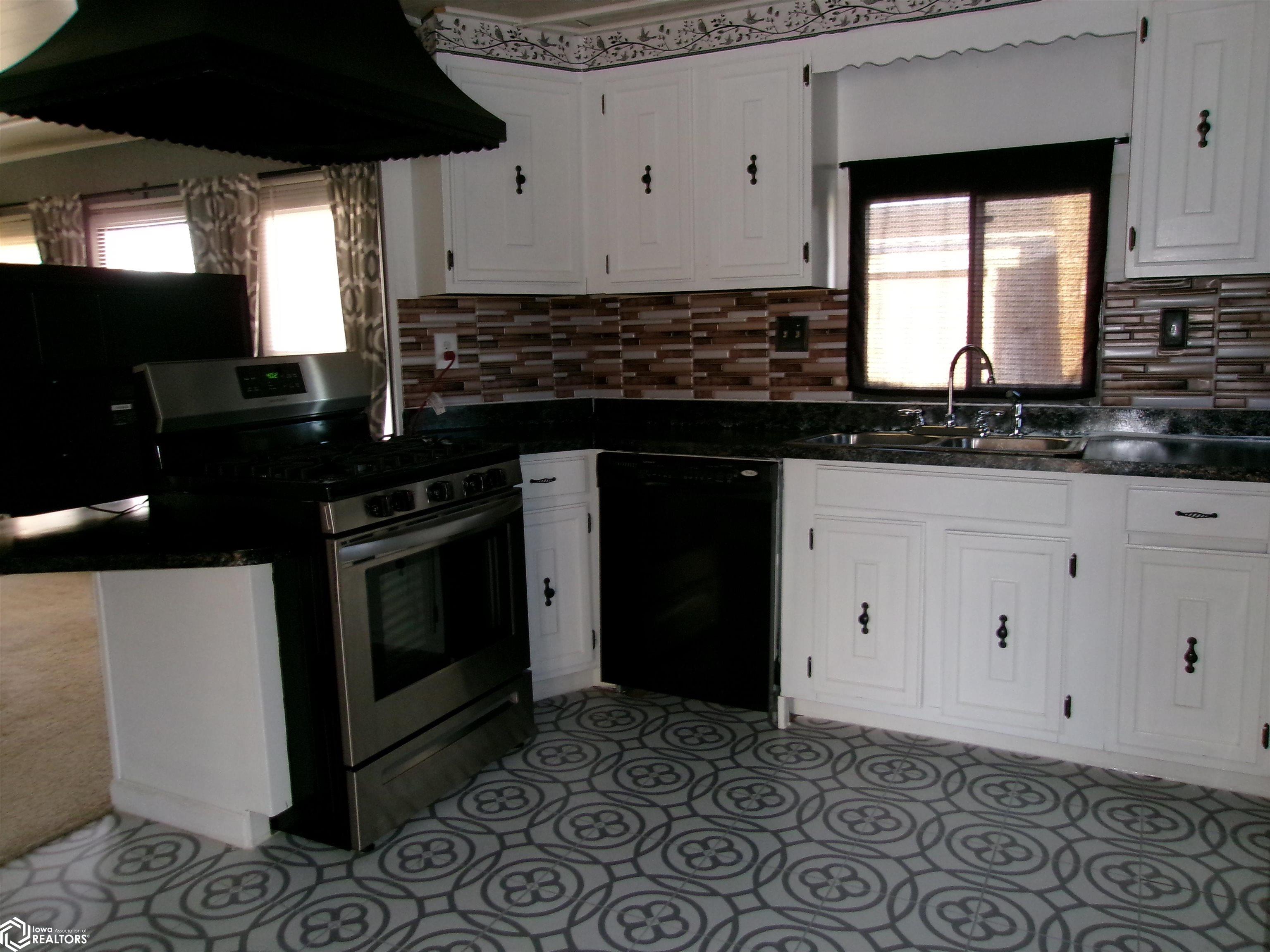 The 2020s were good to this 1624 sq ft home in Luther Park. New roof 2021, new refrigerator and washer dryer 2022, new range 2023. New furnace and air conditioner 2022, new water heater 2025. Large front deck. Kitchen has newer black range and refrigerator and counters. Wall oven not used but may work. (Owner replaced counter cook top with standard gas range) Dishwasher doesn't work. Bar separates kitchen and dining room. Dining room has built-in shelving. Master bedroom adjoins spa-like bath with jetted tub and separate toilet room. Plenty of room for exercise equipment. Closet contains included safe. Owner is leaving some furniture. Back patio. Lot rent is $325 per month. Includes water.