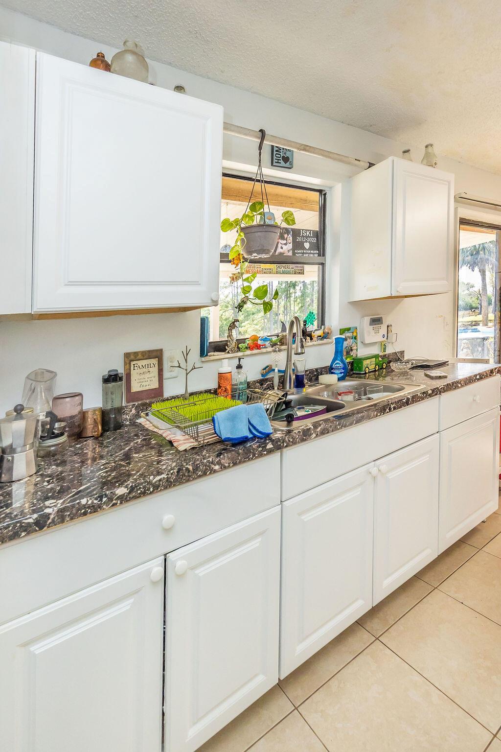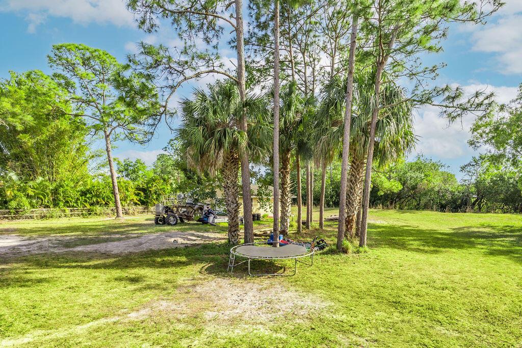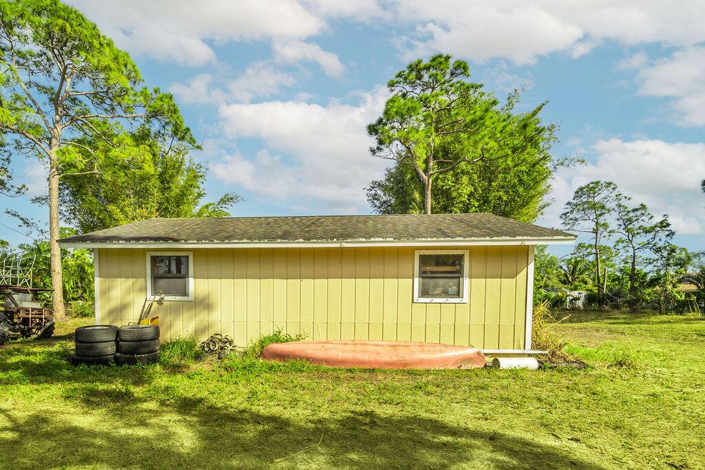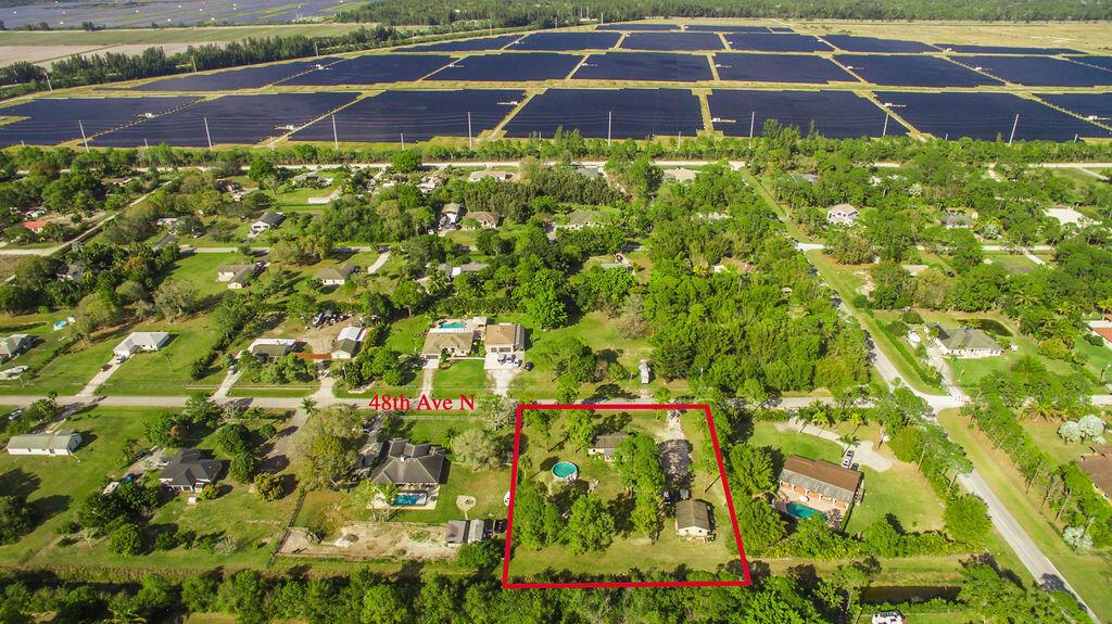 Spacious 3-bedroom, 2-bath single-family home with a detached 32' x 24' garage, easily converted to a mother-in-Law suite as it has its own electric meter and water. No HOA--bring your work trucks, boats, horses, or chickens! This property offers the freedom to personalize and enjoy. Located just five minutes from Westlake, offering shopping, dining, and an emergency room. Only 10 minutes to Wellington and Northlake, 20 minutes to PBI Airport. A-rated schools nearby. Remodeled with new roofs, A/C, and tile (2014), plus a new water system (2024). Split floor plan, master with walk-in closet. No pond. Lot sits on 1.29 acres. Take advantage of this lot and build an additional unit right on the parcel for income production.