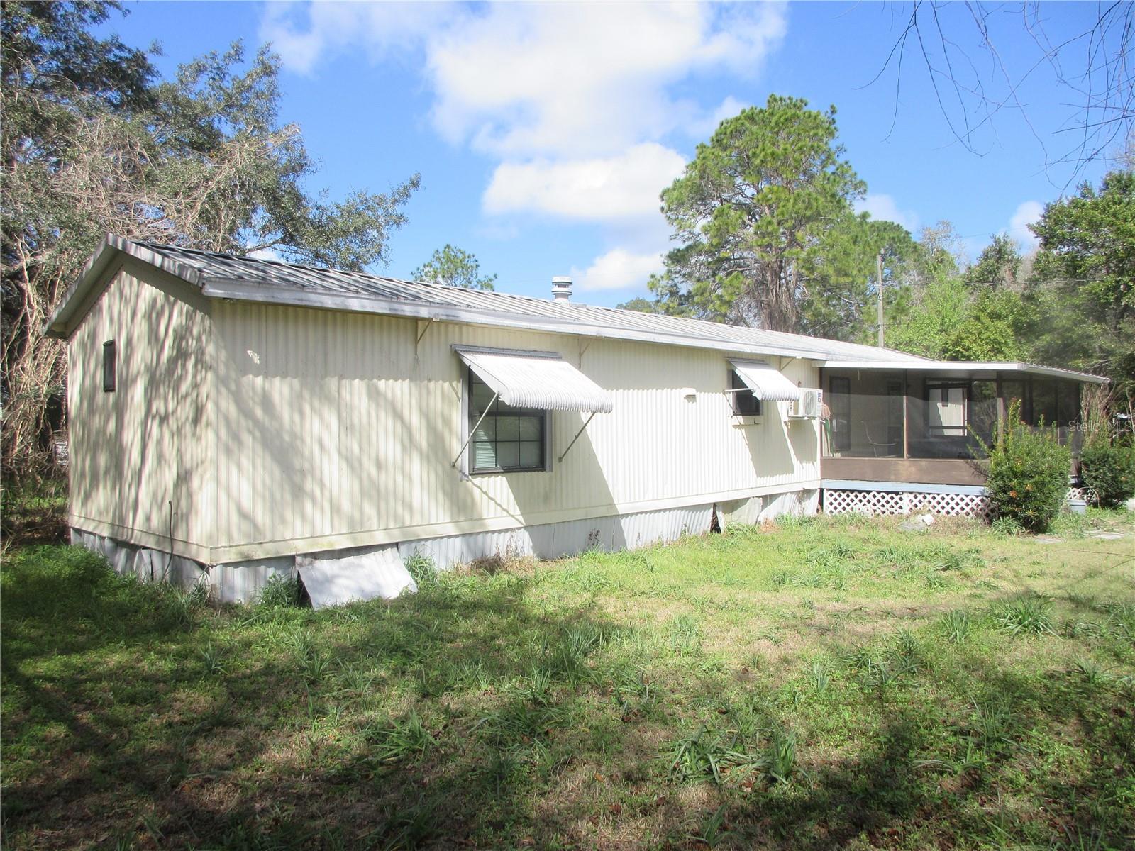 Affordable 2/2 Handyman Special! Tired of high rents? Then come see this 80% remodeled 1986 14x60 mobile home with property. No HOA! Inside features a split bedroom floor plan. 2026 upgrades include an electric service breaker box and receptacles, a 2026 Spyder A/C heat duct system (a $10,000 value), 2026 thermostat, 2026 washer/2026 dryer Hookups, 2026 plumbing, 2026 electrical hookups, 2026 rain shower head and plumbing, 2026 shut-off valves, 2026 range hood, 2026 dishwasher, 2026 blinds, 2026 50-gallon water heater, 2026 ceiling fans, 2026 toilet, and 2026 chandelier. Most of the interior was painted in 2026, and the home is 80% remodeled inside. The rest of the remodeling building supplies such as laminate flooring, receptacle covers, paint, and moldings are laying on the guest bedroom and screen room floors, ready to be used. There is also a 2025 mini-split A/C heat unit which serves as a backup to the central A/C heat unit. Most of the plumbing has been replaced, but there is still a remnant of polybutylene grey pipe remaining, but all in good working condition. Appliances are not included. Outside features a breezy 10x16 screen room, a wrap-around (no rot) sun deck, a two-car carport (needs repair), and a 10x16 shed (door needs to be replaced). It all sits on a chain-link fenced .20-acre lot on a paved road. It includes community water, a concrete drive, a walk-in shower, 5 window awnings, and a metal roof. Located in the Ocala National Forest 5 minutes from Winn-Dixie shopping and more. Immediate occupancy. Excellent for a first-time home buyer, rental, winter retreat, or an inexpensive homestead. It needs some TLC but is still a great price at just $69,900! Hurry! Home is located in the Ocala National Forest which affords you almost a half-million acres of forest to roam, 600 lakes, 2 rivers, Juniper Springs, Silver Glen Springs, Salt Springs, swimming, skiing, big bass fishing, boating, camping, hiking, horseback riding, and some of the best ATV riding anywhere. Daytona Beach is just 1 hour away. Let the fun begin! You need it!