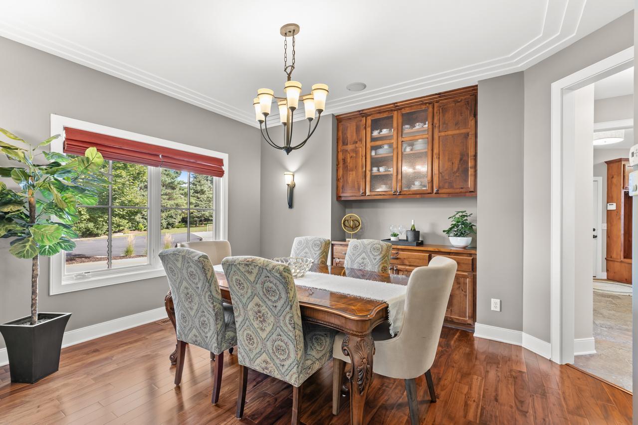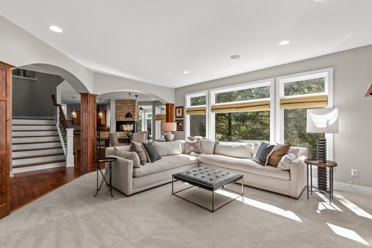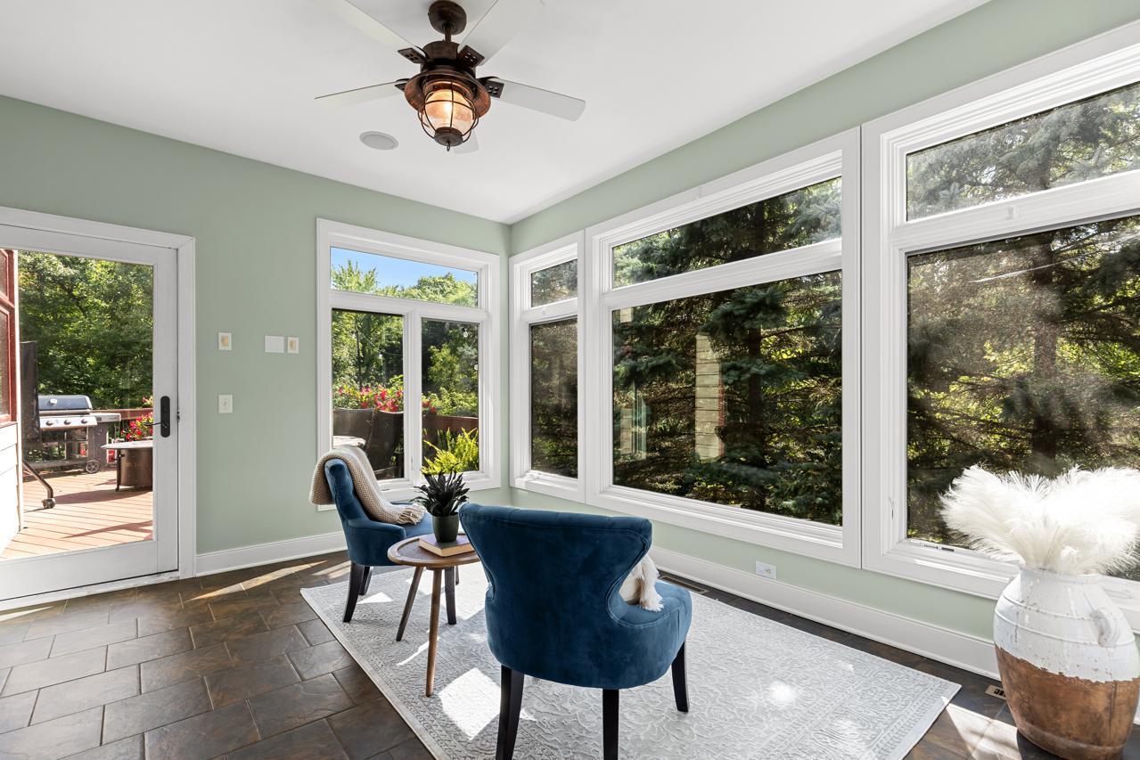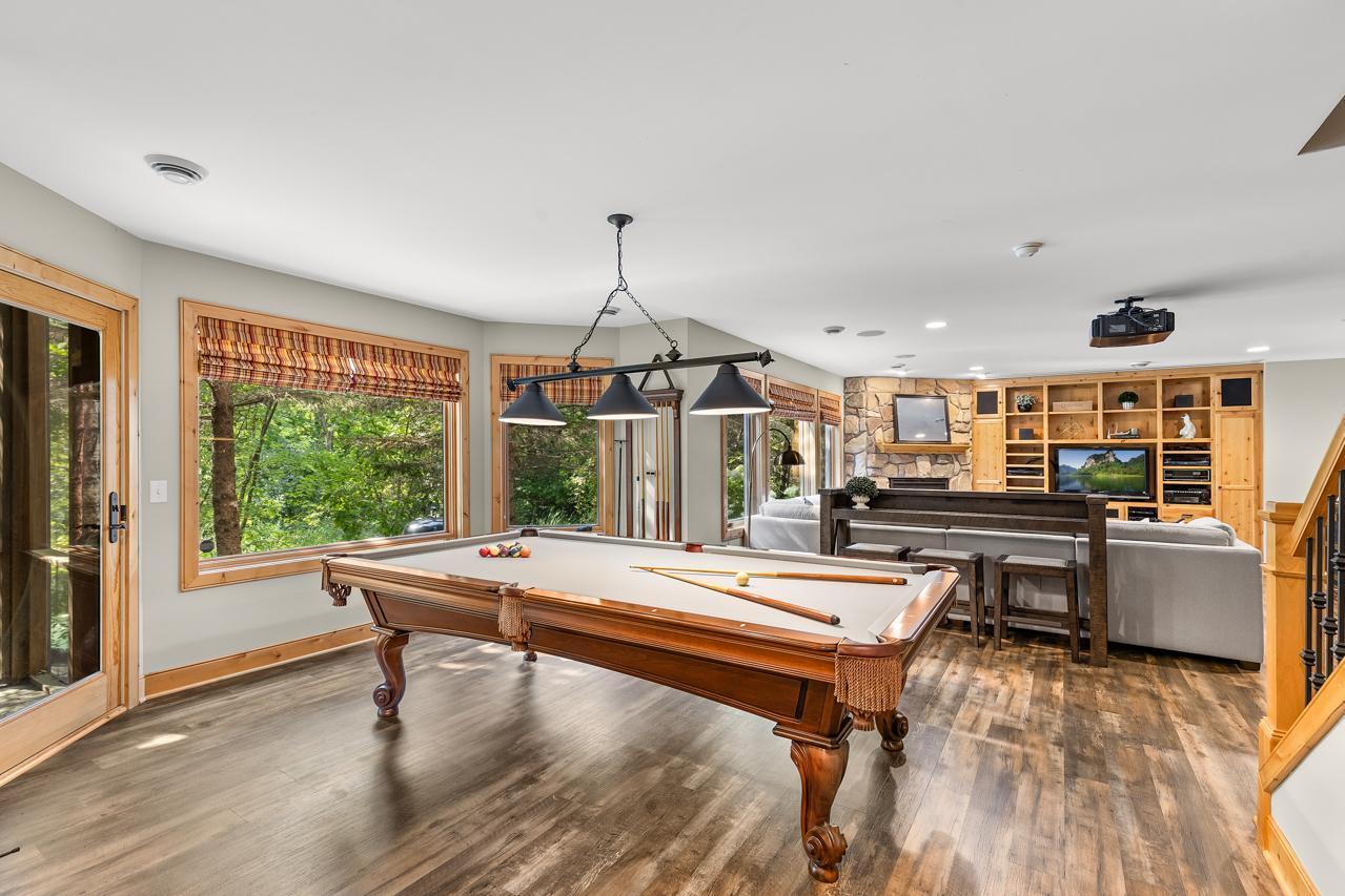 Truly a One-of-a-Kind Masterpiece perfectly situated at the end of a private, wooded cul-de-sac overlooking Riley Creek, this impeccable 5-bedroom, 5-bathroom custom-built home rests on 0.33 serene acres, offering peace, privacy, and natural beauty in every direction. From the moment you step inside, youll be captivated by the inspiring design, high-end finishes, and countless upgrades that make this home absolutely exceptional with 5,802 square feet of extraordinary living space.Enjoy extensive updates including: newer roof with copper gutters & rain chains, added exterior water mitigation system, Control 4 Movie Theatre with high-definition projector and speakers (with AV system throughout the home), updated luxury vinyl flooring on upper & lower levels, remodeled primary bedroom & bathroom, new carpet (2023), epoxy-coated sub-garage floor, fresh exterior & interior paint, upgraded sprinkler system, new washer & dryer, customized closets, updated light fixtures, exterior deck staining, added lower-level screen porch beneath the sunroom, new attic insulation, new toilet on main level, new upper-level furnace & A/C condenser (2025), new lower-level A/C condenser (2023), and recently stained garage doors (2025).Step inside to gleaming hardwood floors, soaring ceilings, and walls of windows that flood the home with natural light. The inviting main level features a stunning open floor plan, formal and informal dining, a main-level office with custom built-ins, a serene sunroom, and a gourmet kitchen with cozy fireplace overlooking your tranquil backyard oasis. The living room also showcases a beautiful fireplace, creating warm and inviting spaces throughout.Upstairs, retreat to your extravagant primary suitea spacious haven complete with a gigantic walk-in closet with laundry and a luxurious private bathroom.The walkout lower level is perfect for entertaining with a wet bar, pool table, and family room featuring a projectorthe ultimate place for movie nights or game day! The newly added screened in porch on this level offers yet another relaxing retreat surrounded by nature.Outdoors, youll love the lush landscaping, inviting front porch, expansive deck, and unbeatable curb appeal. This home was designed for both entertaining and everyday livinginside and out!All of this in a fabulous location close to parks, trails, shopping, dining, top-rated schools, and more. A rare find: 3-car street-side garage plus 4-car sub-garage, ideal for auto enthusiasts!This home is more than just a place to liveits a dream come true. A must-see experience!